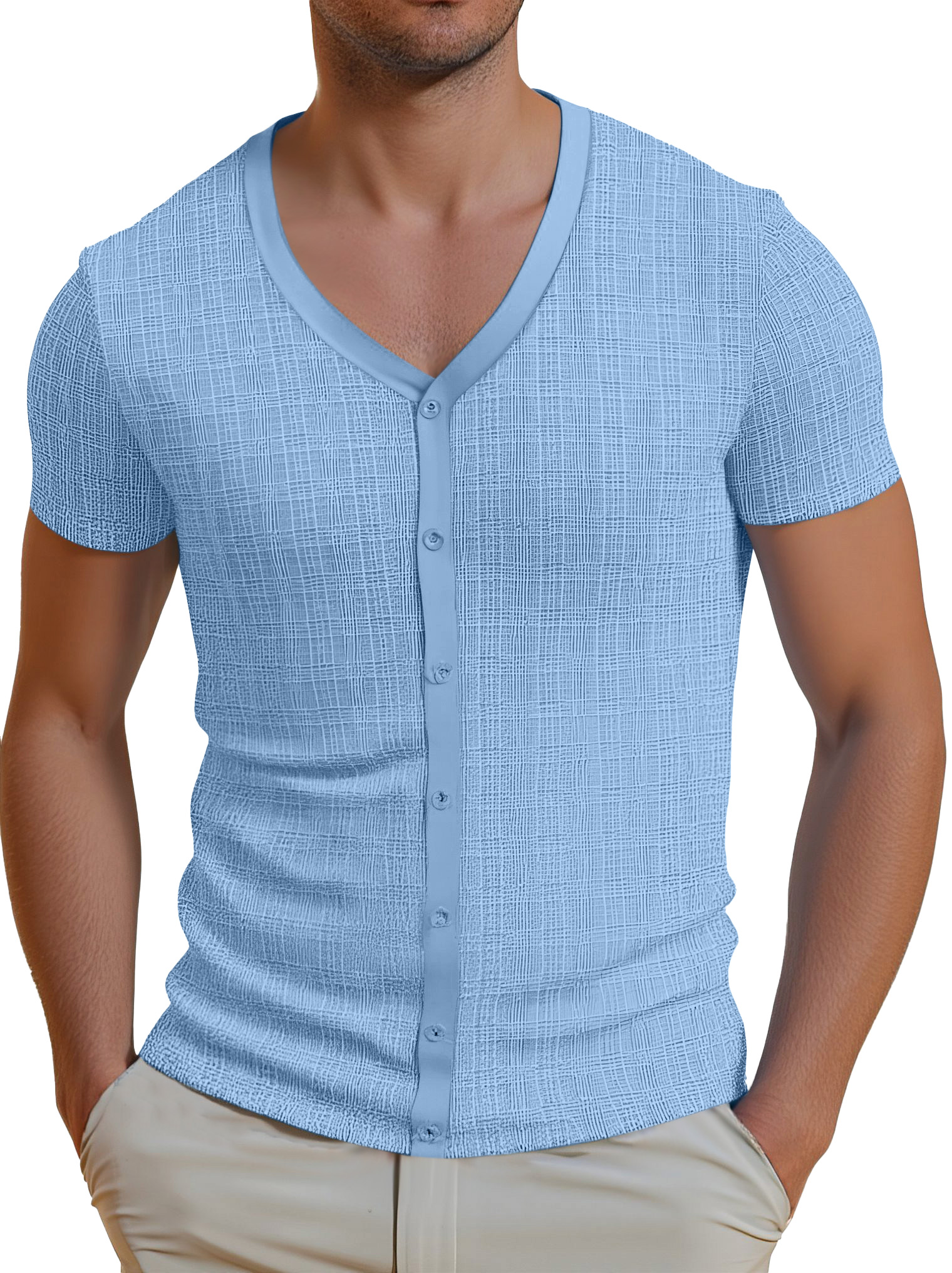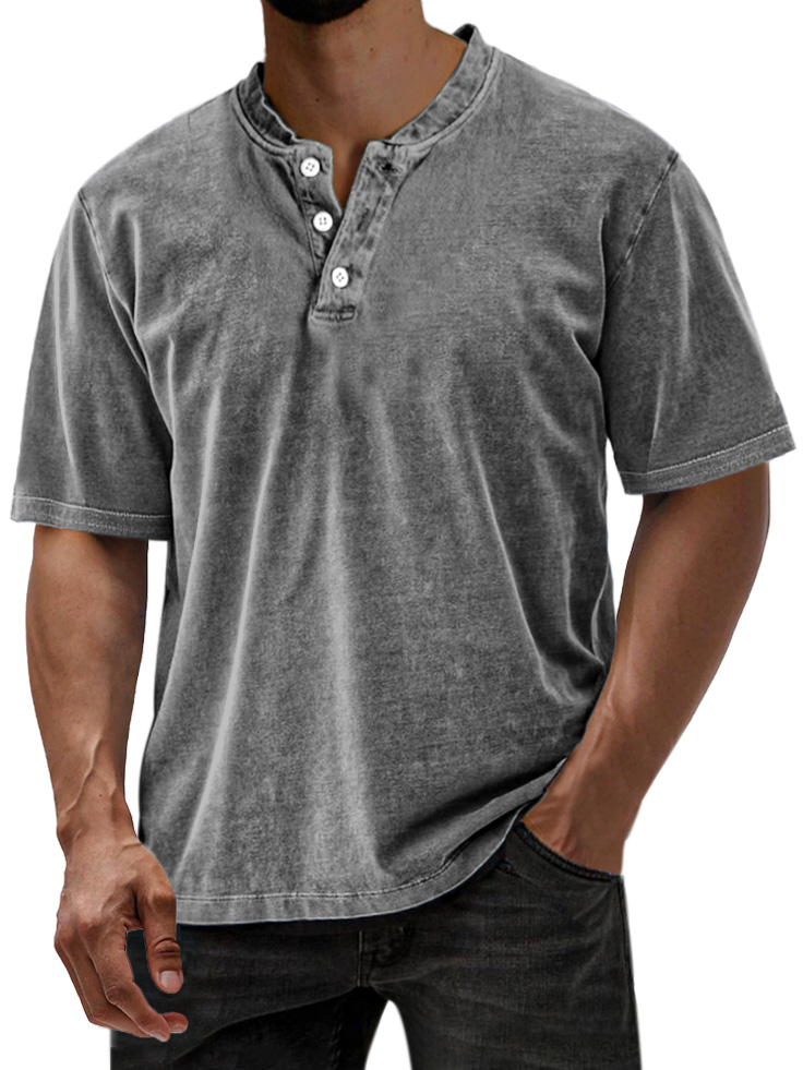 Men's Retro Simple Solid Color Short Sleeve Henley Shirt$39.99 USD -