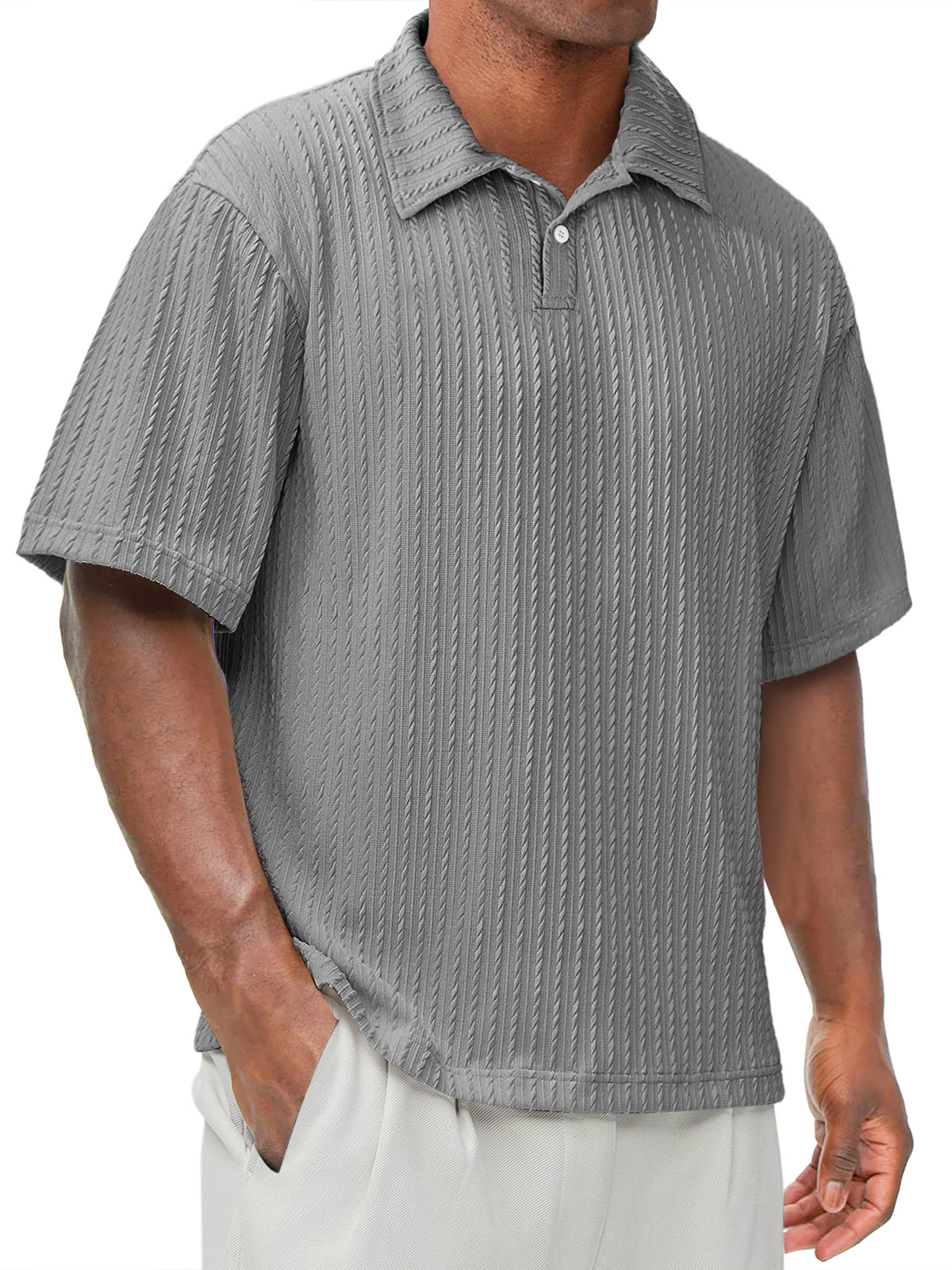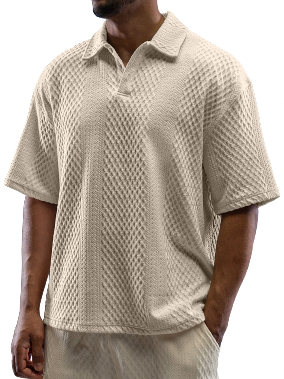 Men's Lapel Jacquard Texture Solid Color Short-sleeved Polo Shirt$39.99 USD -