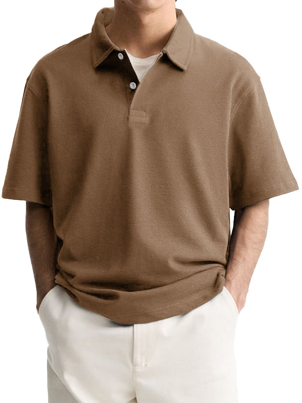 Men's Waffle Casual Button Lapel Short Sleeve Polo Shirt$39.99 USD