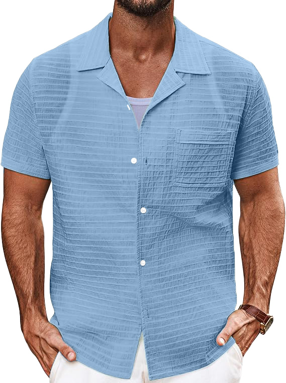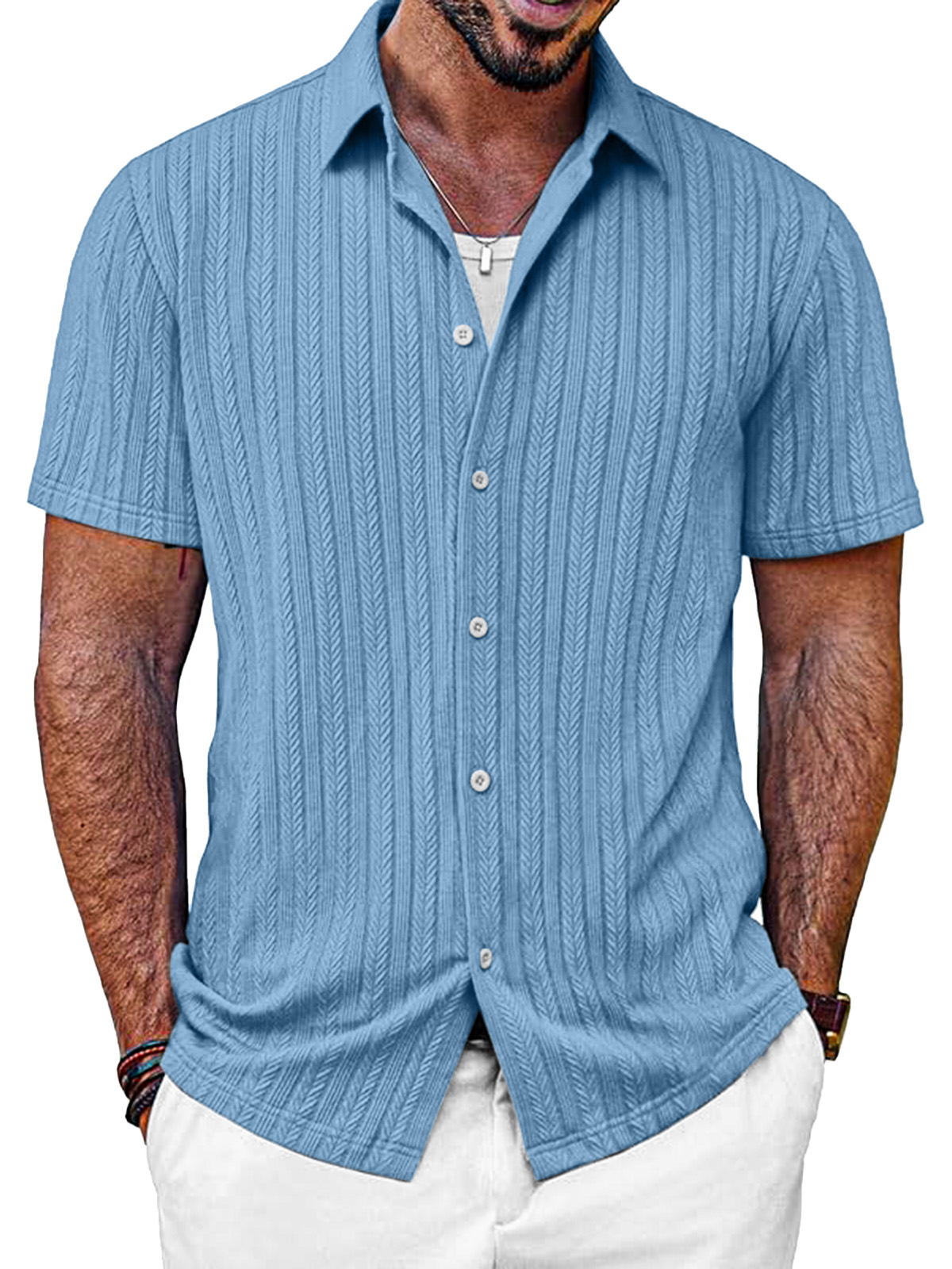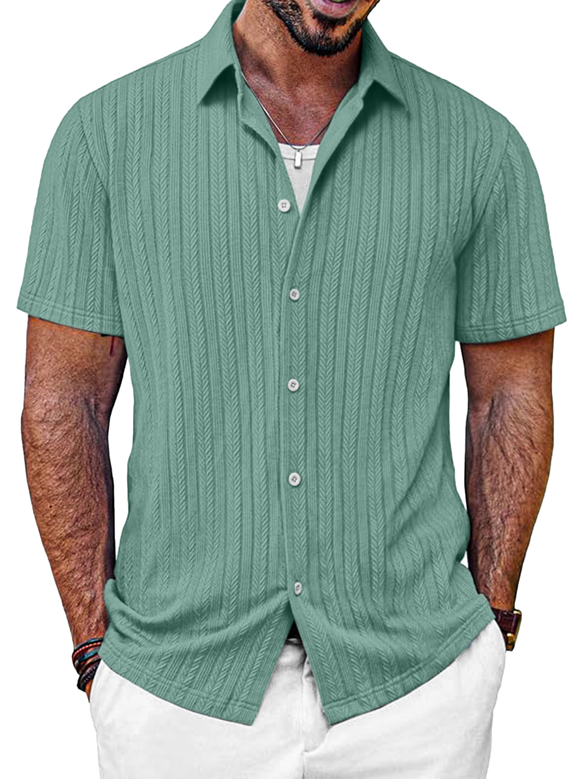 Men's Casual Solid Color Textured Short-sleeved Button-down Shirt$39.99 USD -