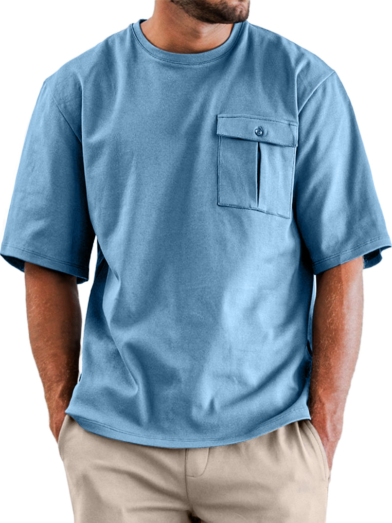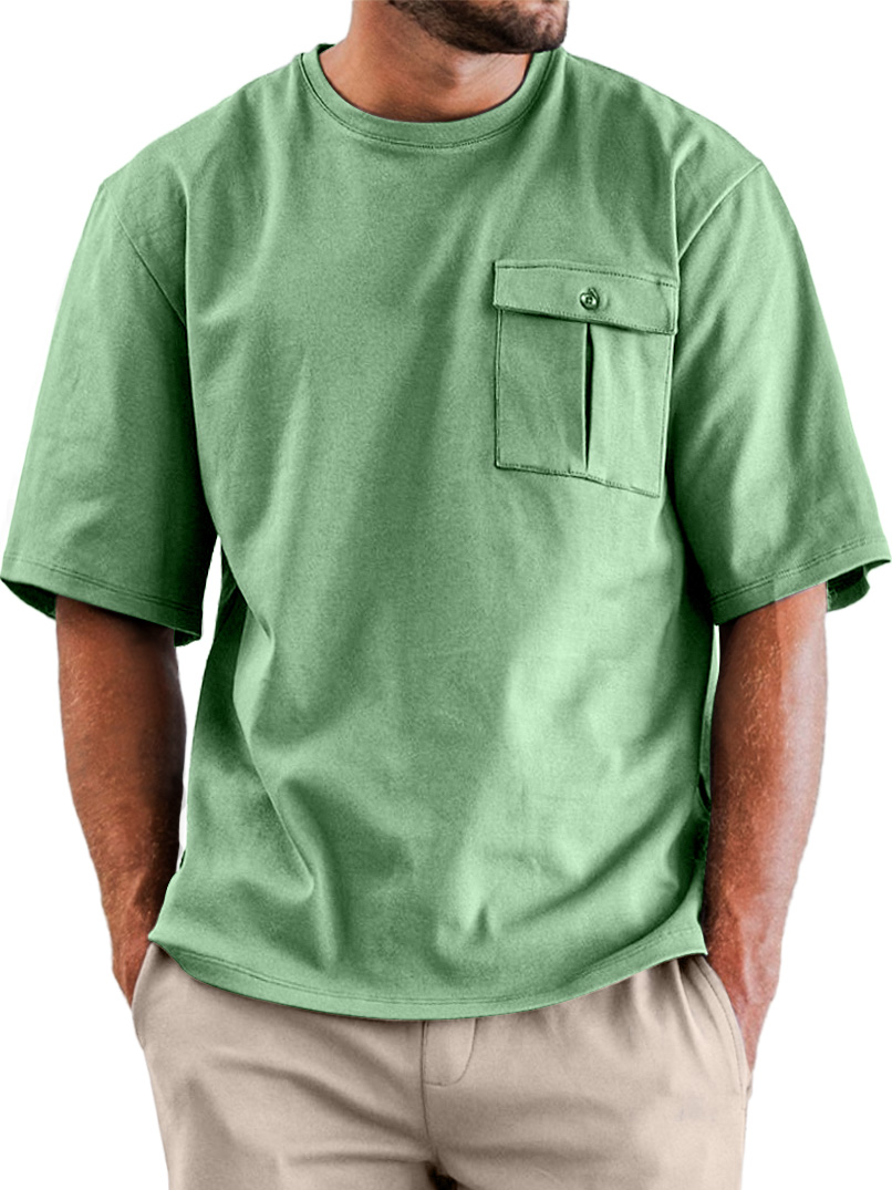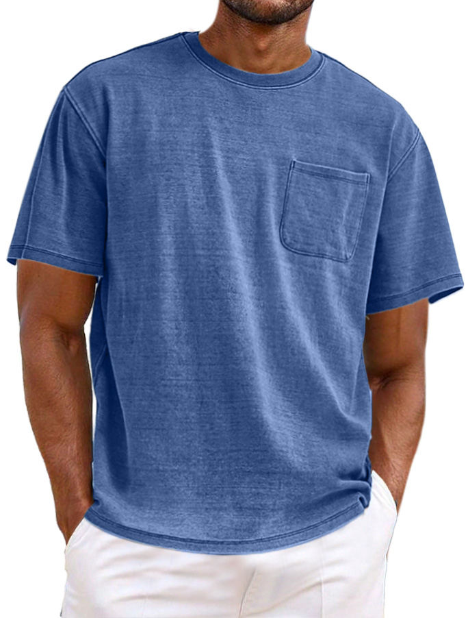 Men's Simple Casual Retro Pocket Short Sleeve T-shirt$39.99 USD -