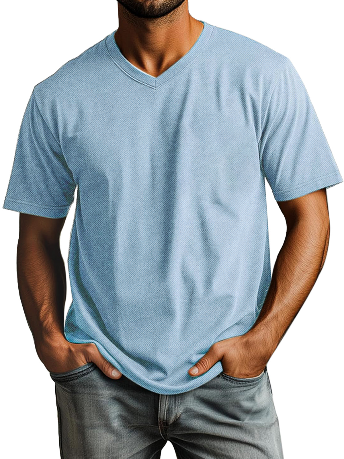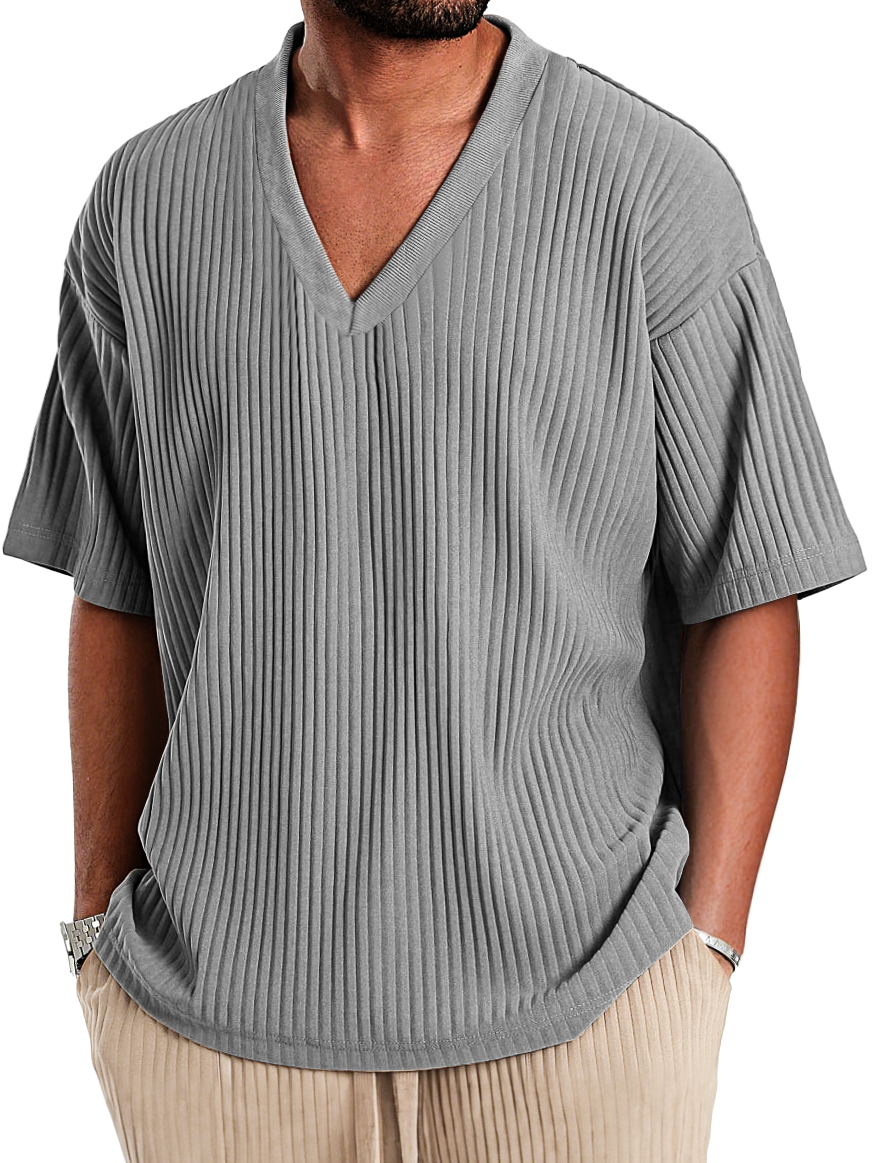 Men's Casual V-neck Ribbed Comfortable Short-sleeved T-shirt$39.99 USD -