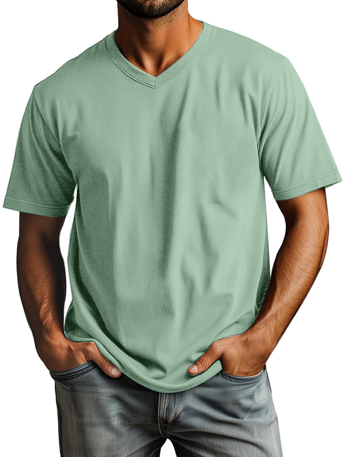 Men's Casual Simple Solid Color Daily V-neck Short-sleeved T-shirt$39.99 USD -