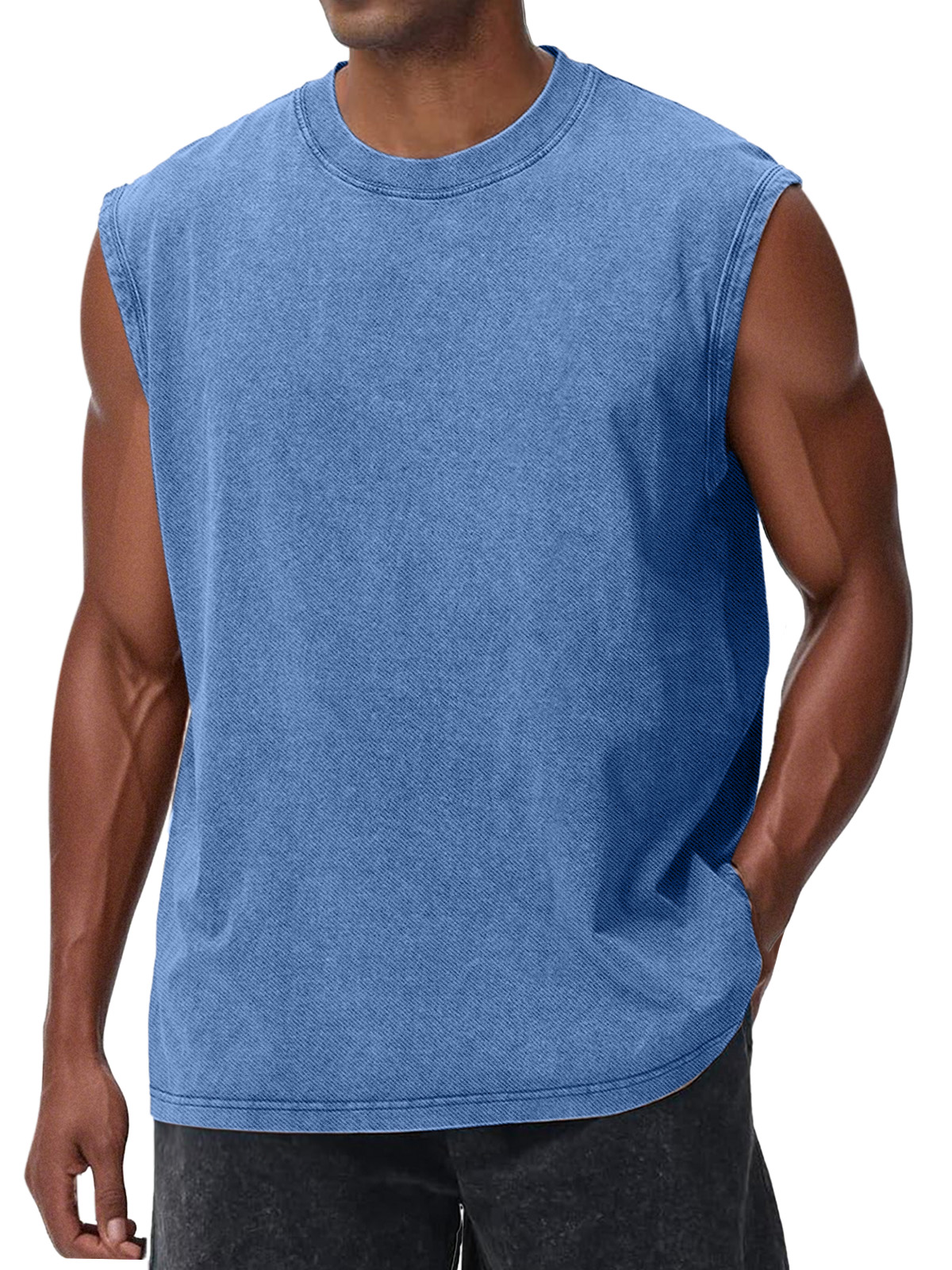 Men's Casual Retro Solid Color Loose Sleeveless T-shirt$39.99 USD