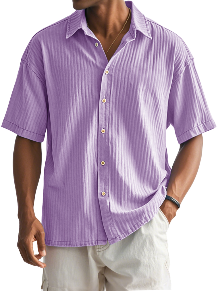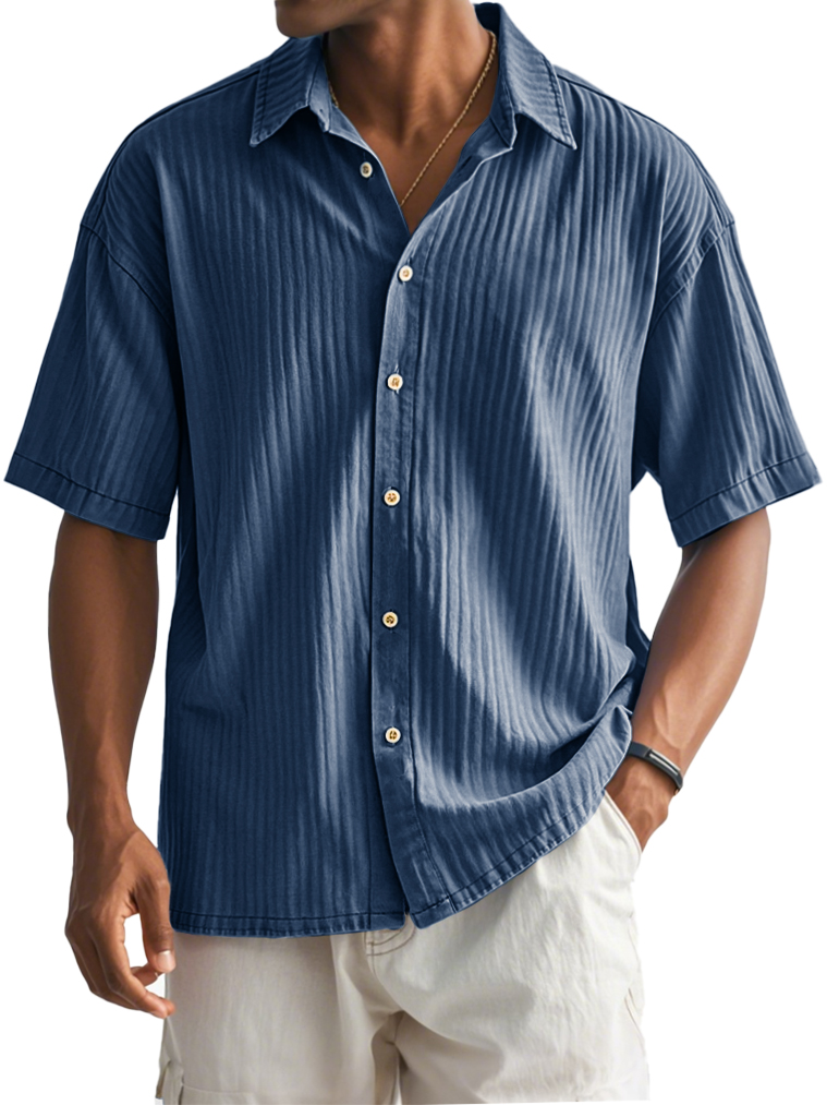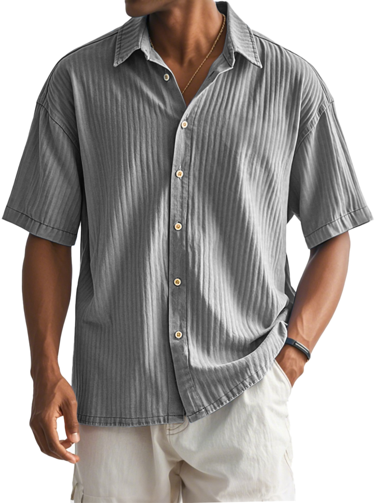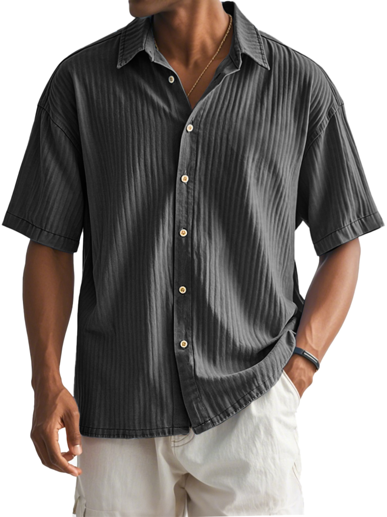 Men's Fashion Casual Ribbed Fabric Short-sleeved Lapel Shirt