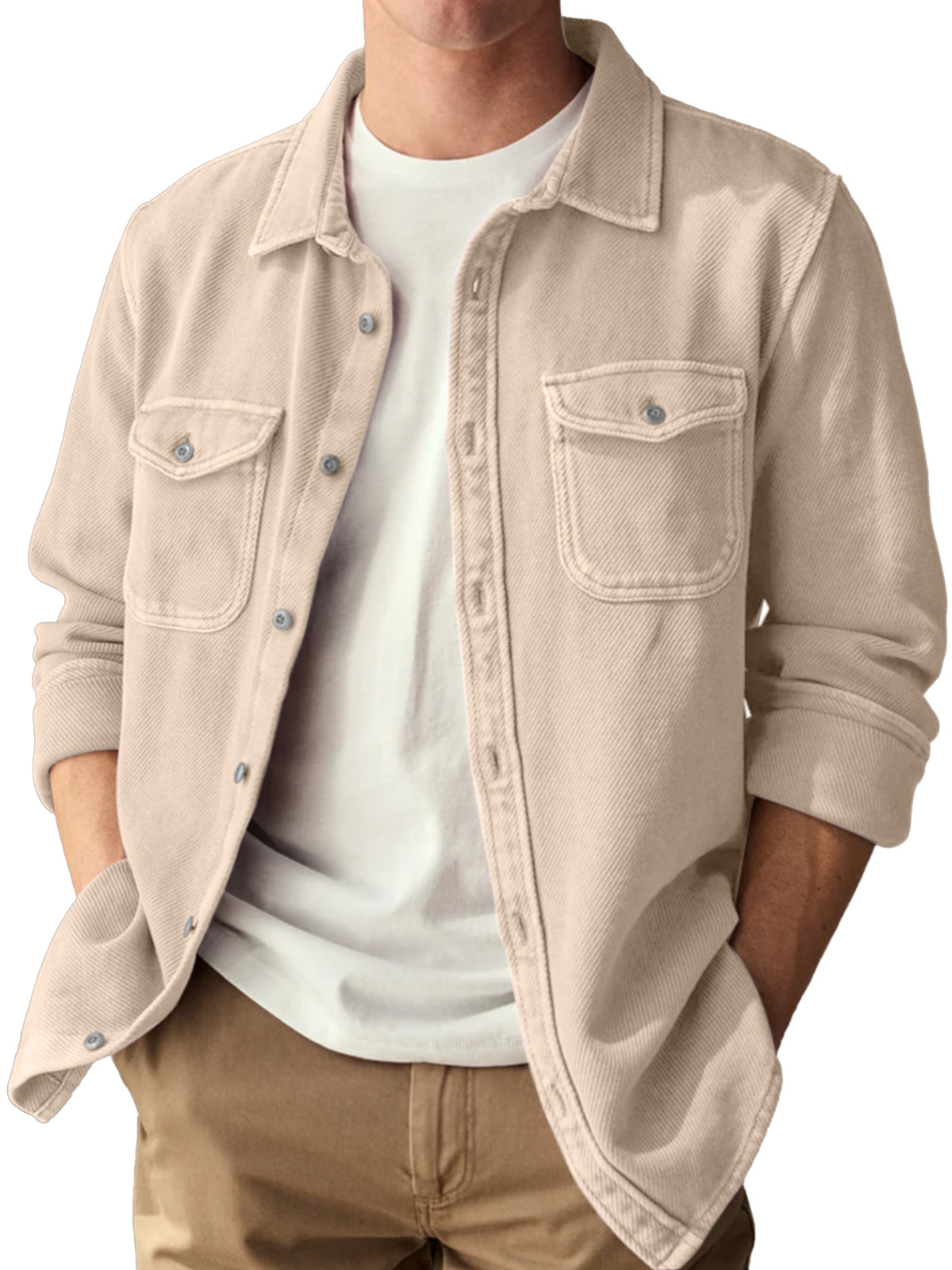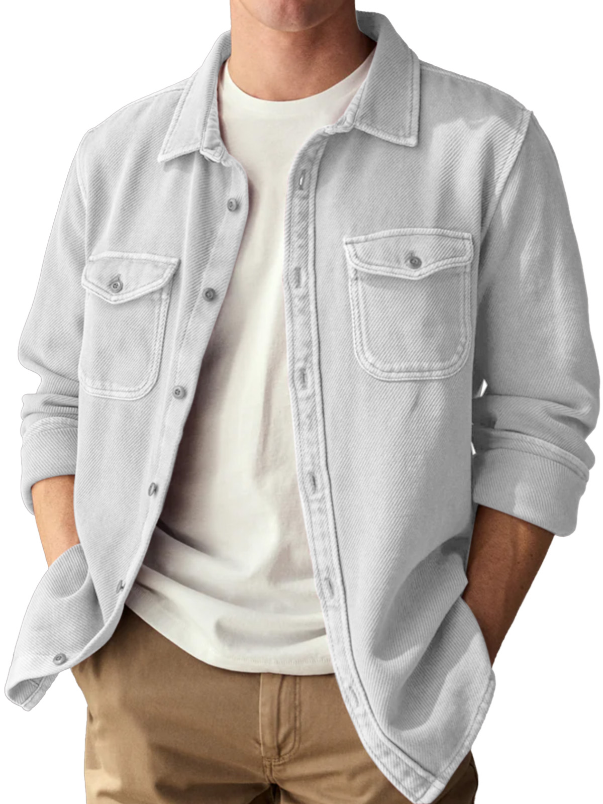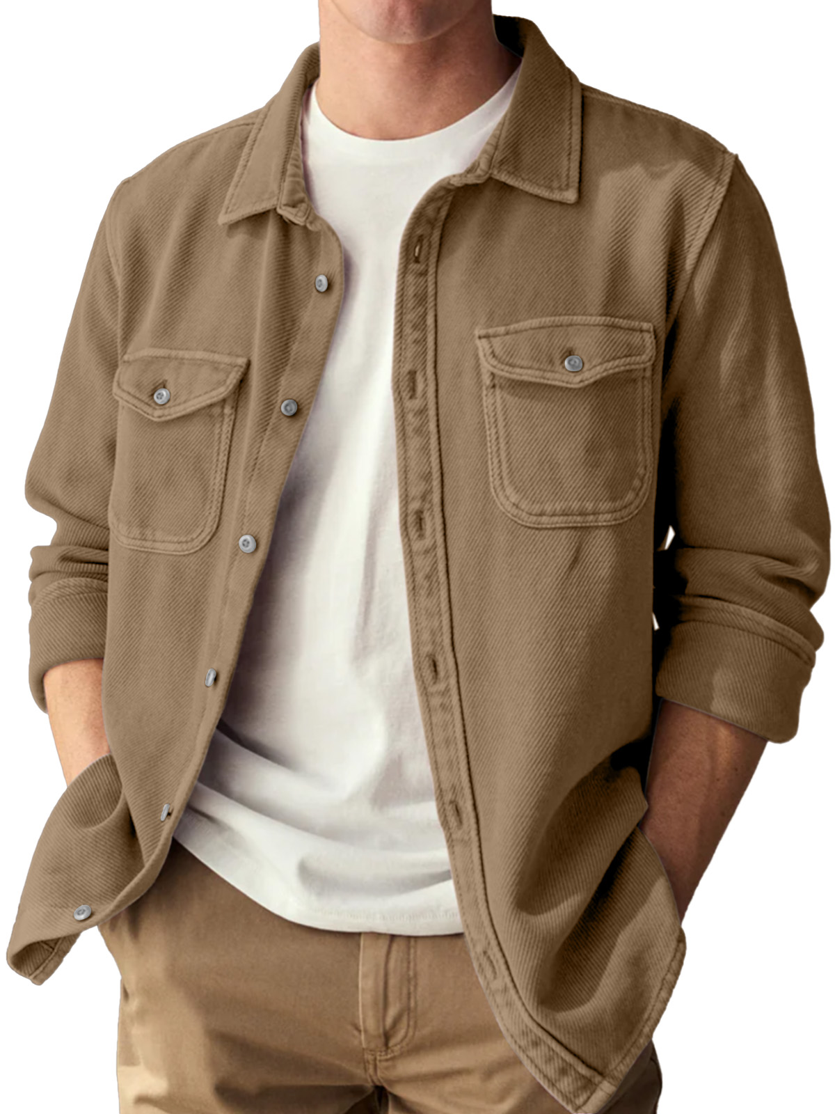 Basic Vintage Double Pocket Lapel Button Down Long Sleeve Shirt