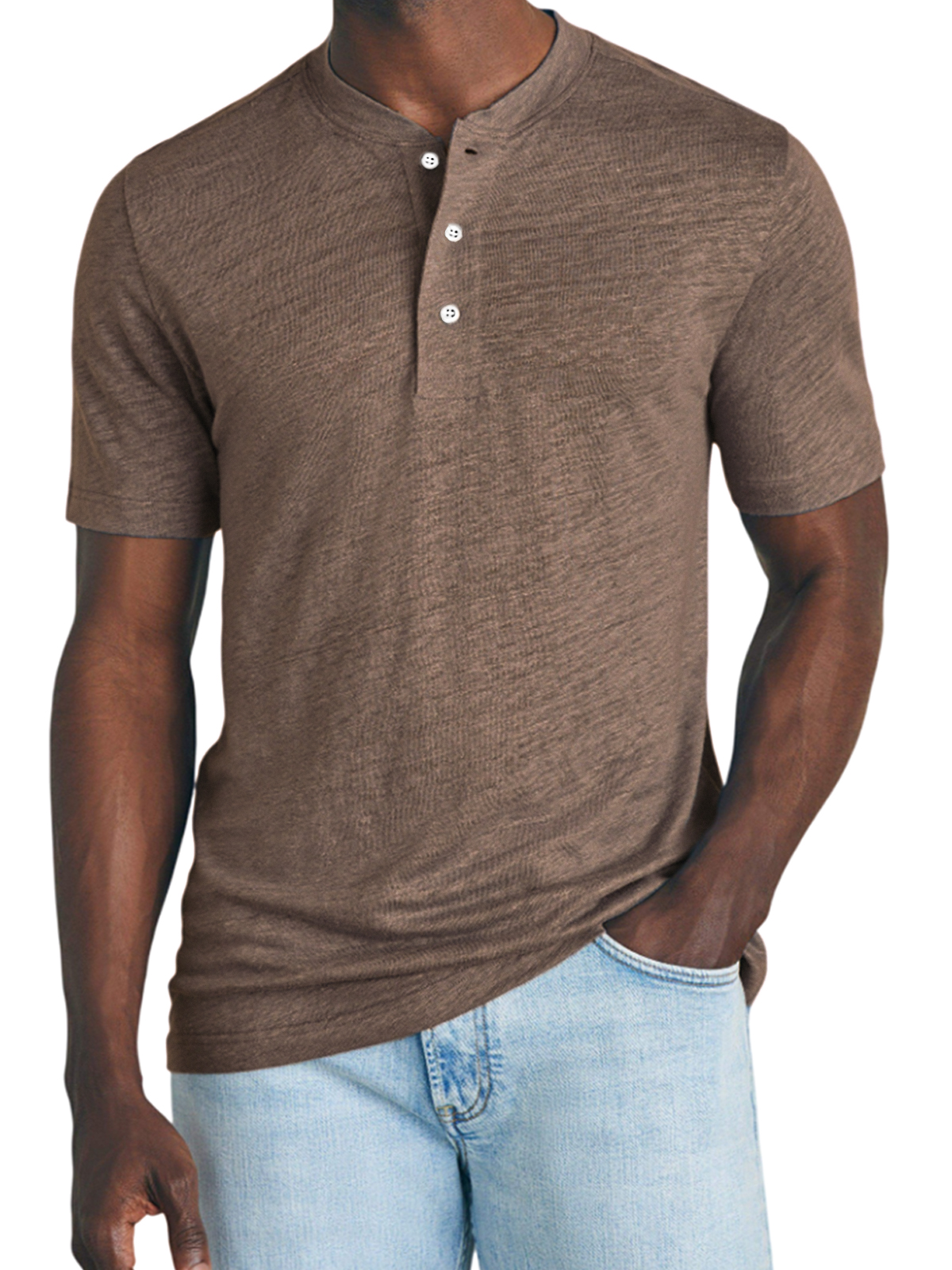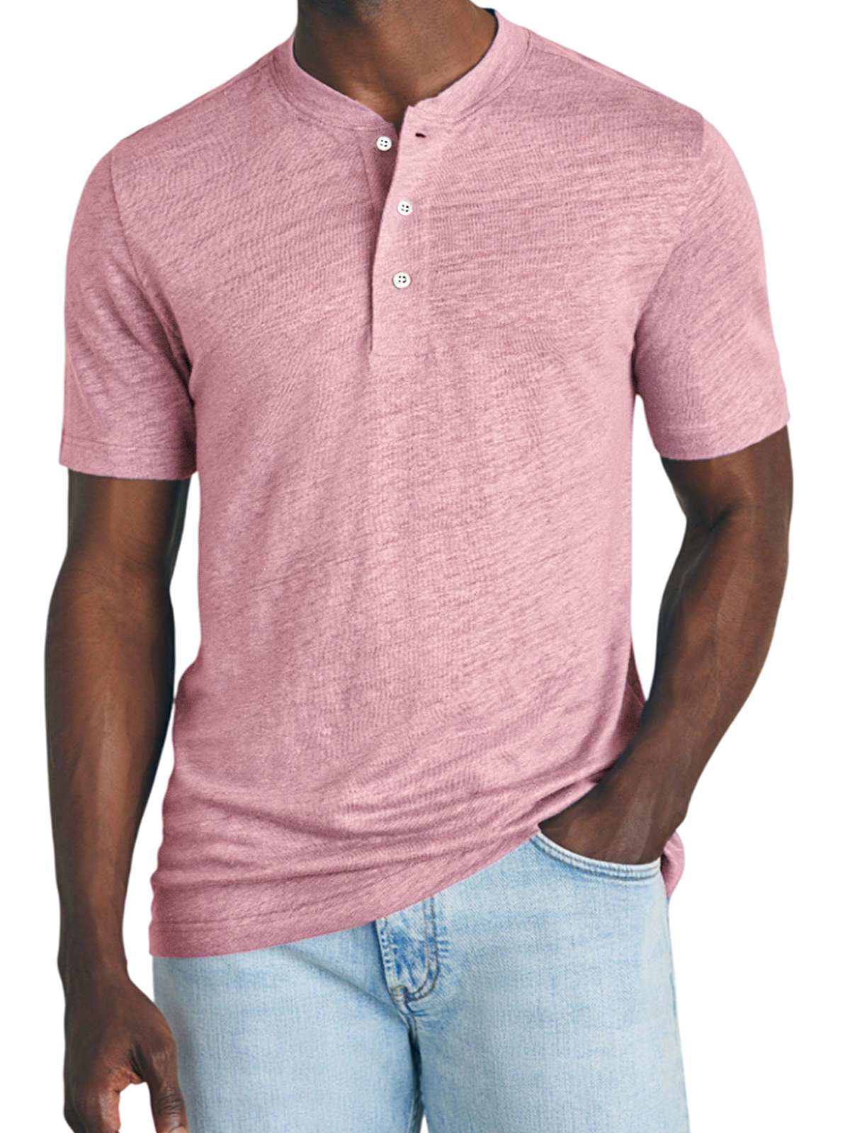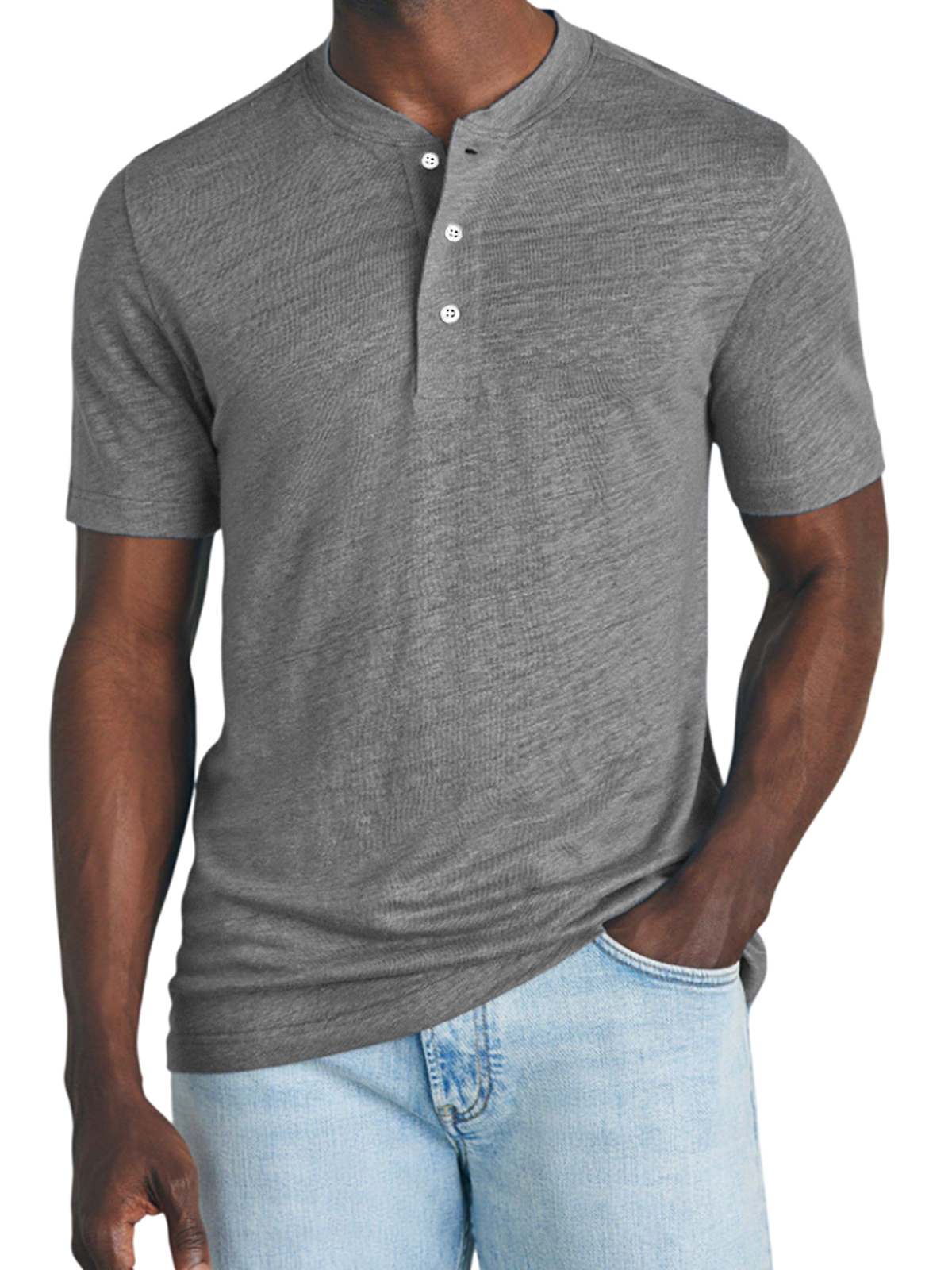 Men's Breathable Lightweight Slub Cotton Casual Basic Henley Short Sleeve T-Shirt Top
