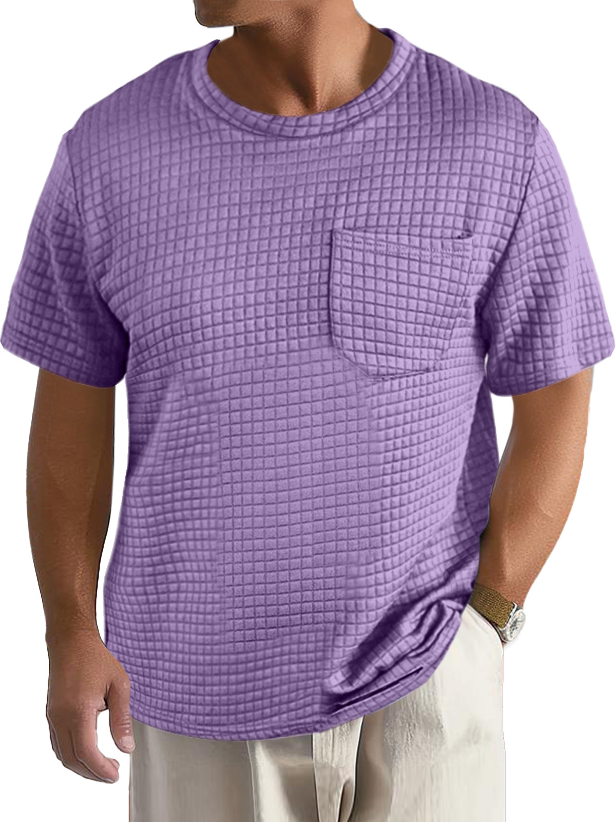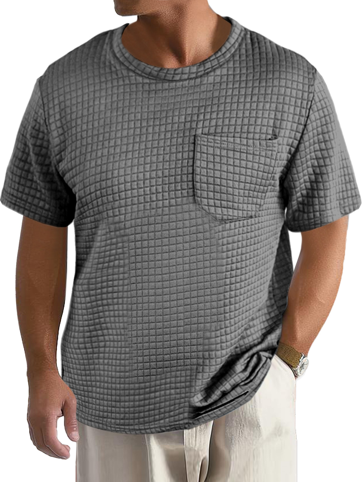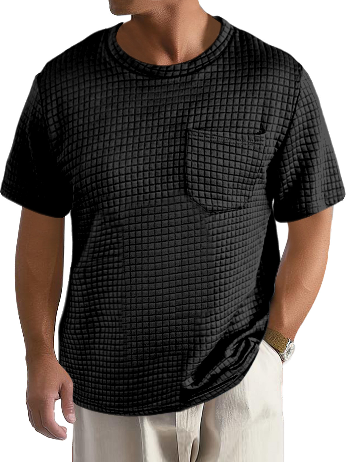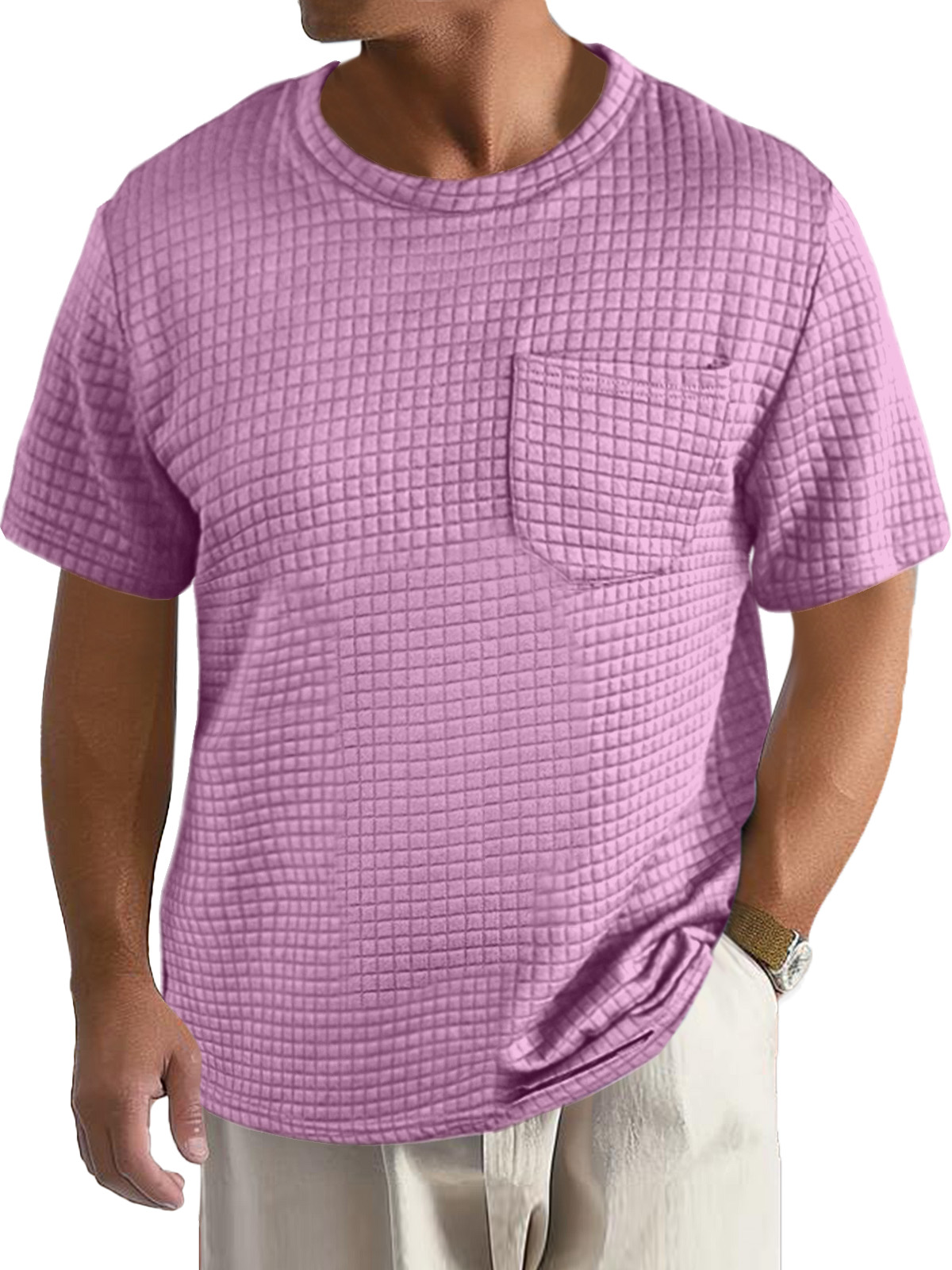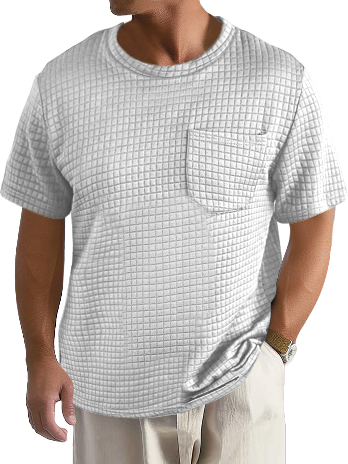 Men's Casual Daily Solid Color Small Square Short Sleeve Pocket T-shirt