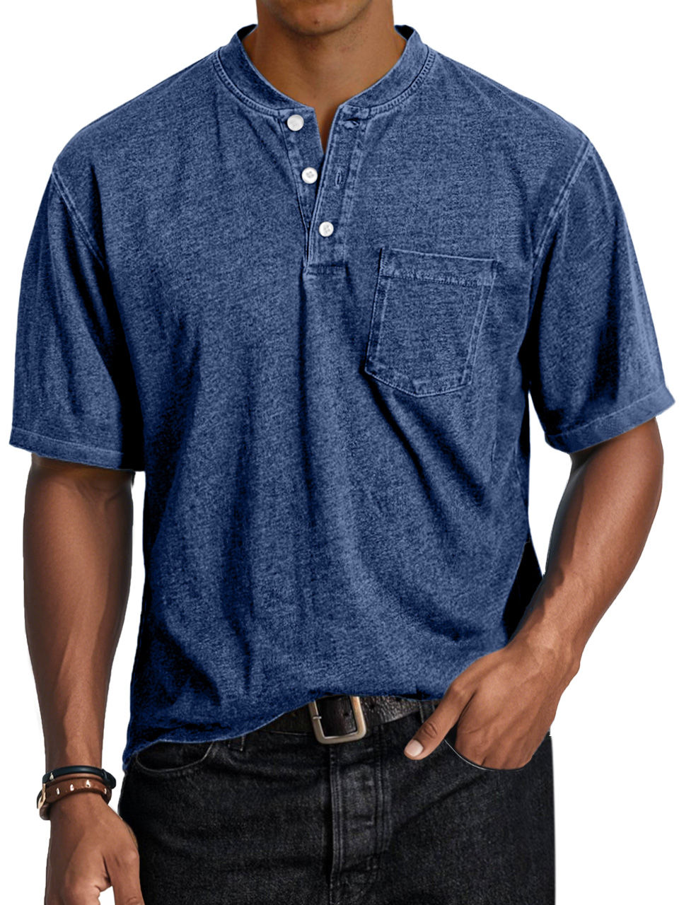 Men's Casual Retro Comfort Short Sleeve Button-Down Henley