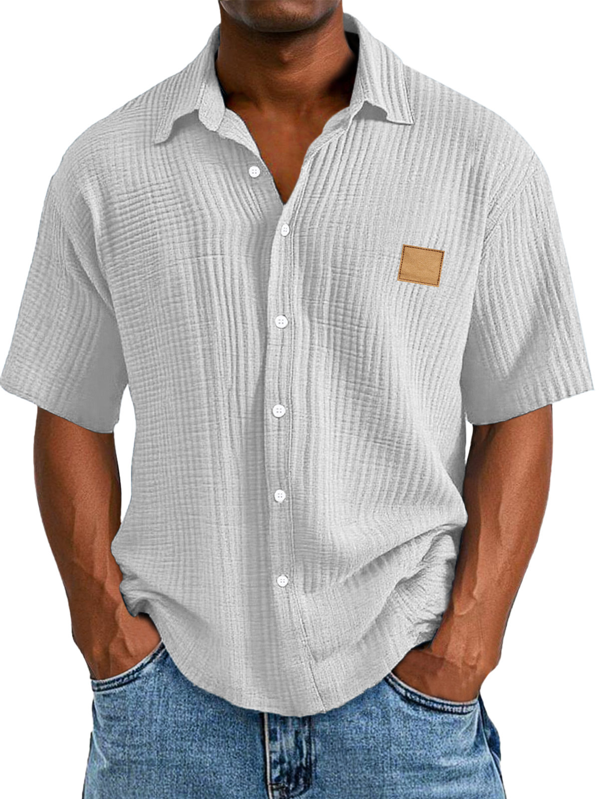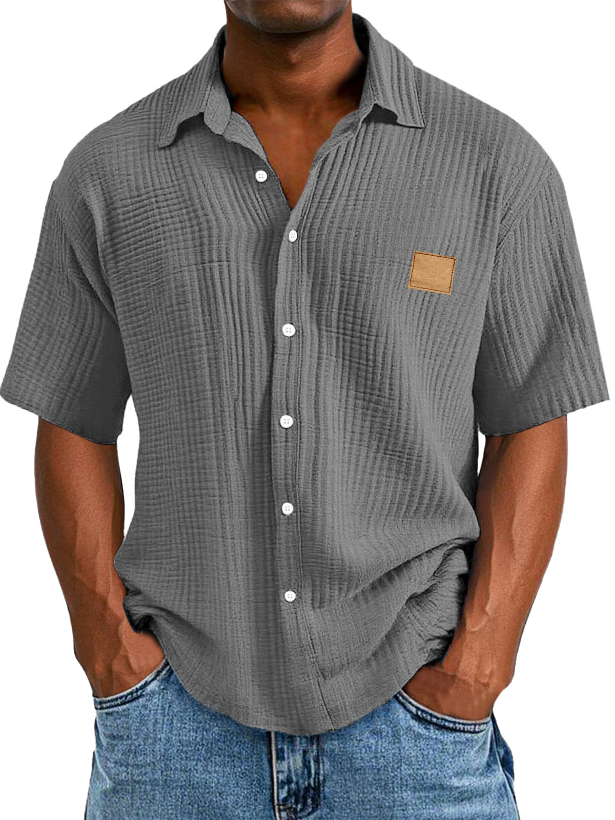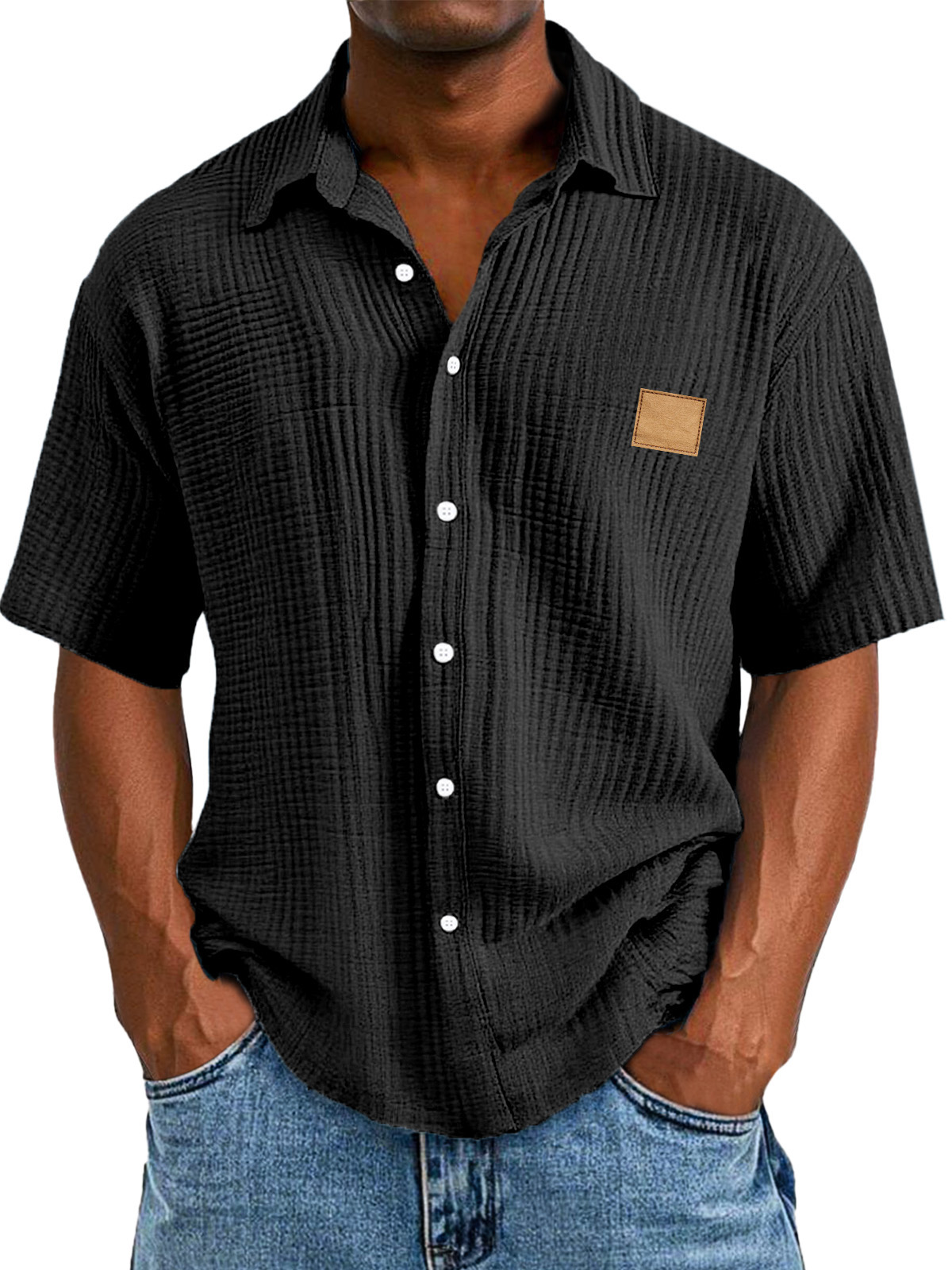 Men's Casual Retro Textured Logo Short Sleeve Lapel Shirt
