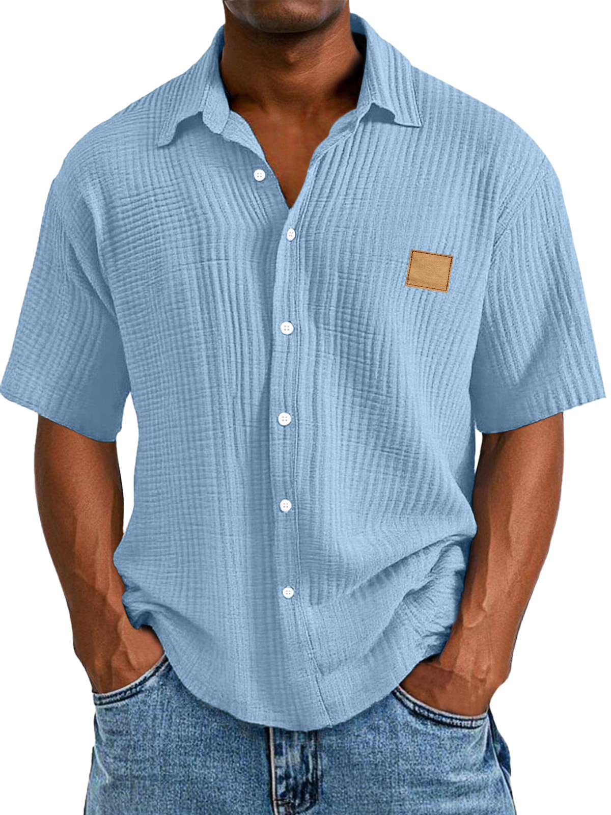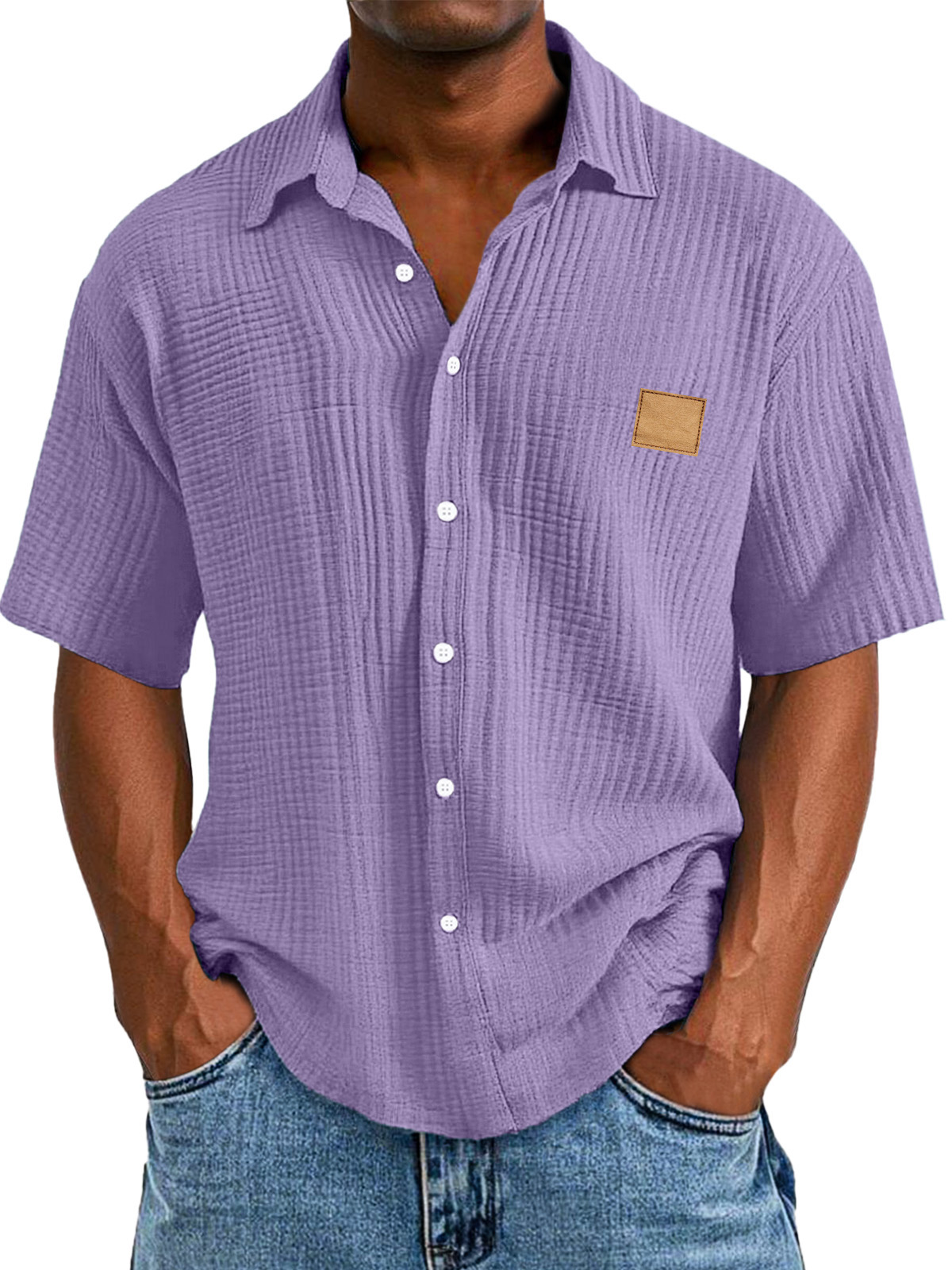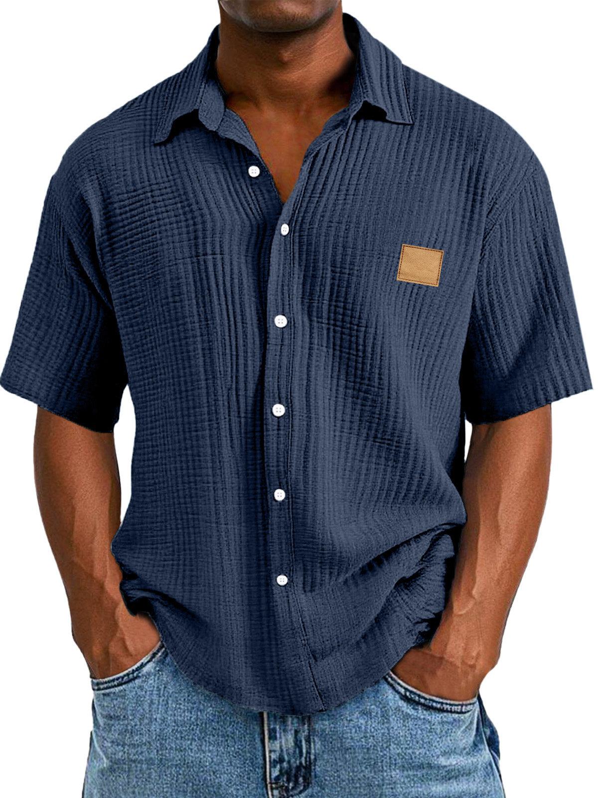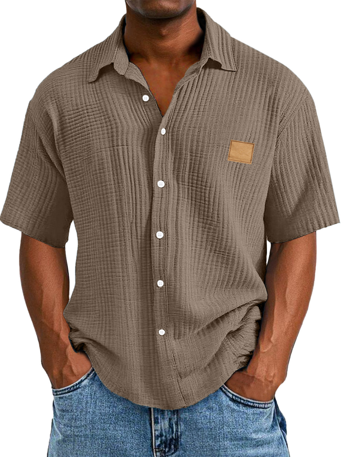 Men's Casual Retro Textured Logo Short Sleeve Lapel Shirt