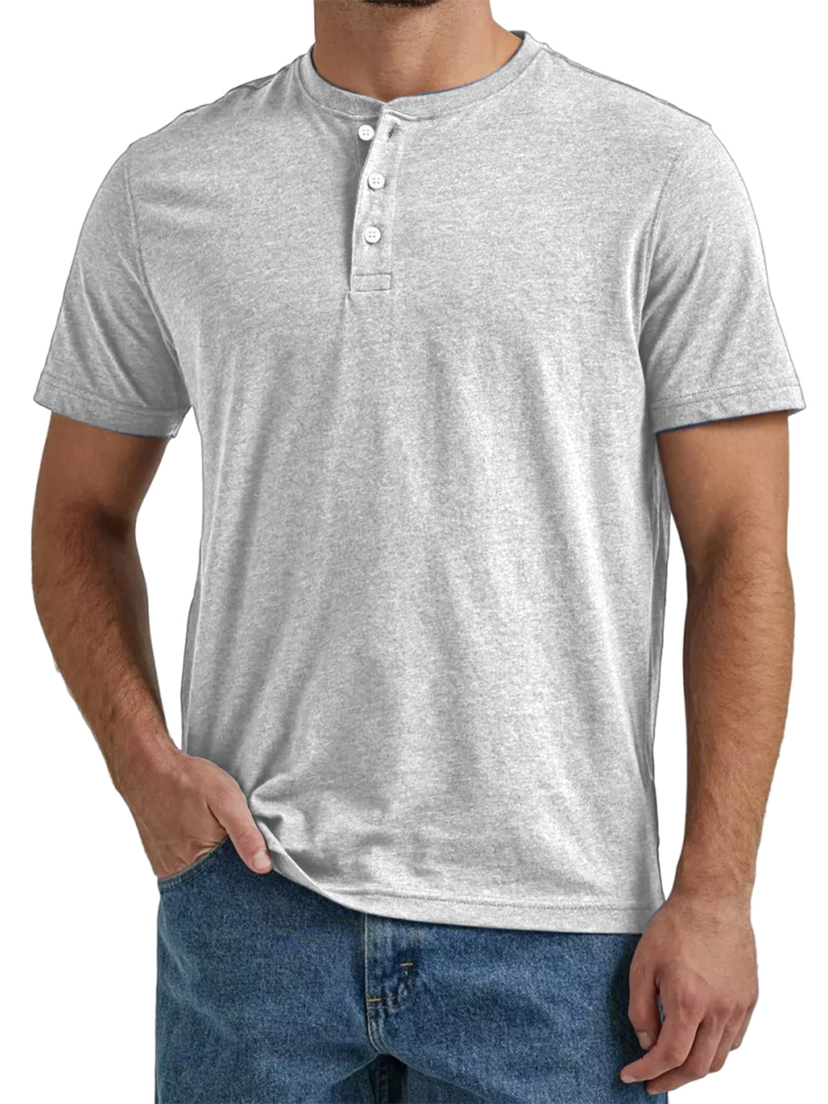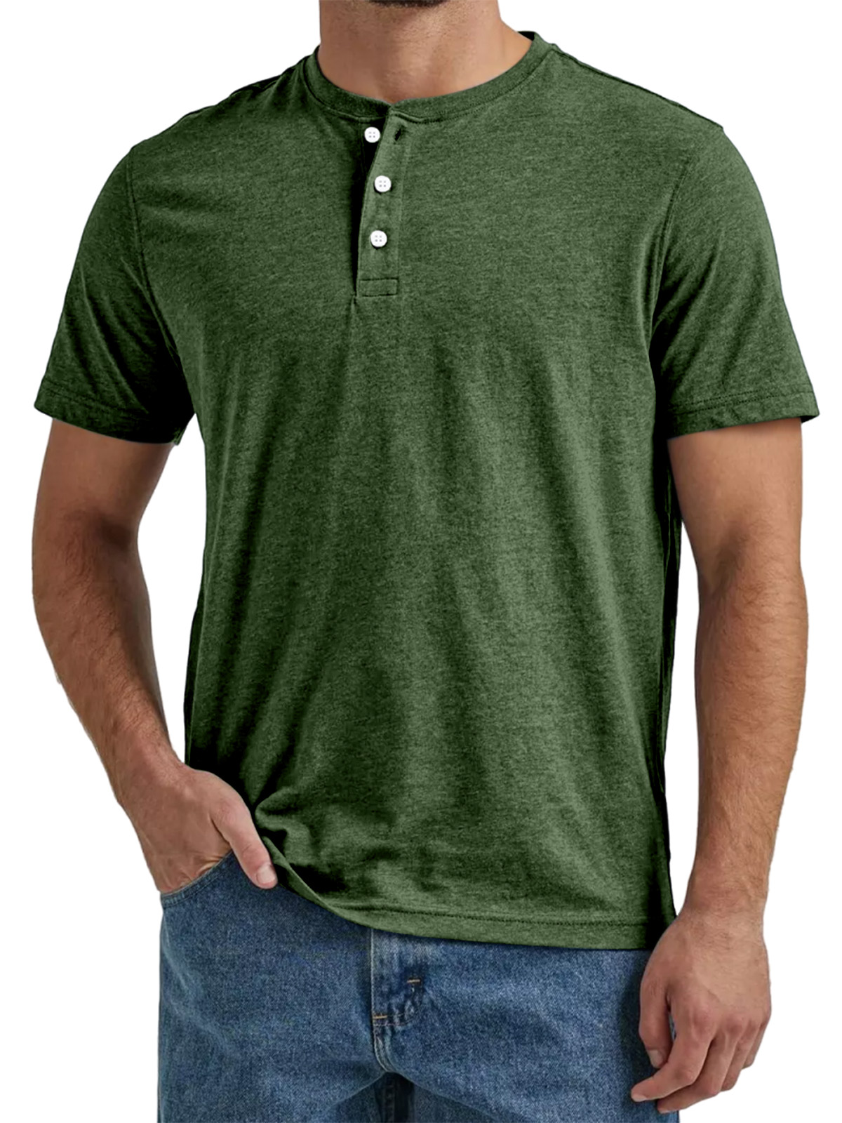 Men's Casual Simple Everyday Button Down Short Sleeve Henley Shirt