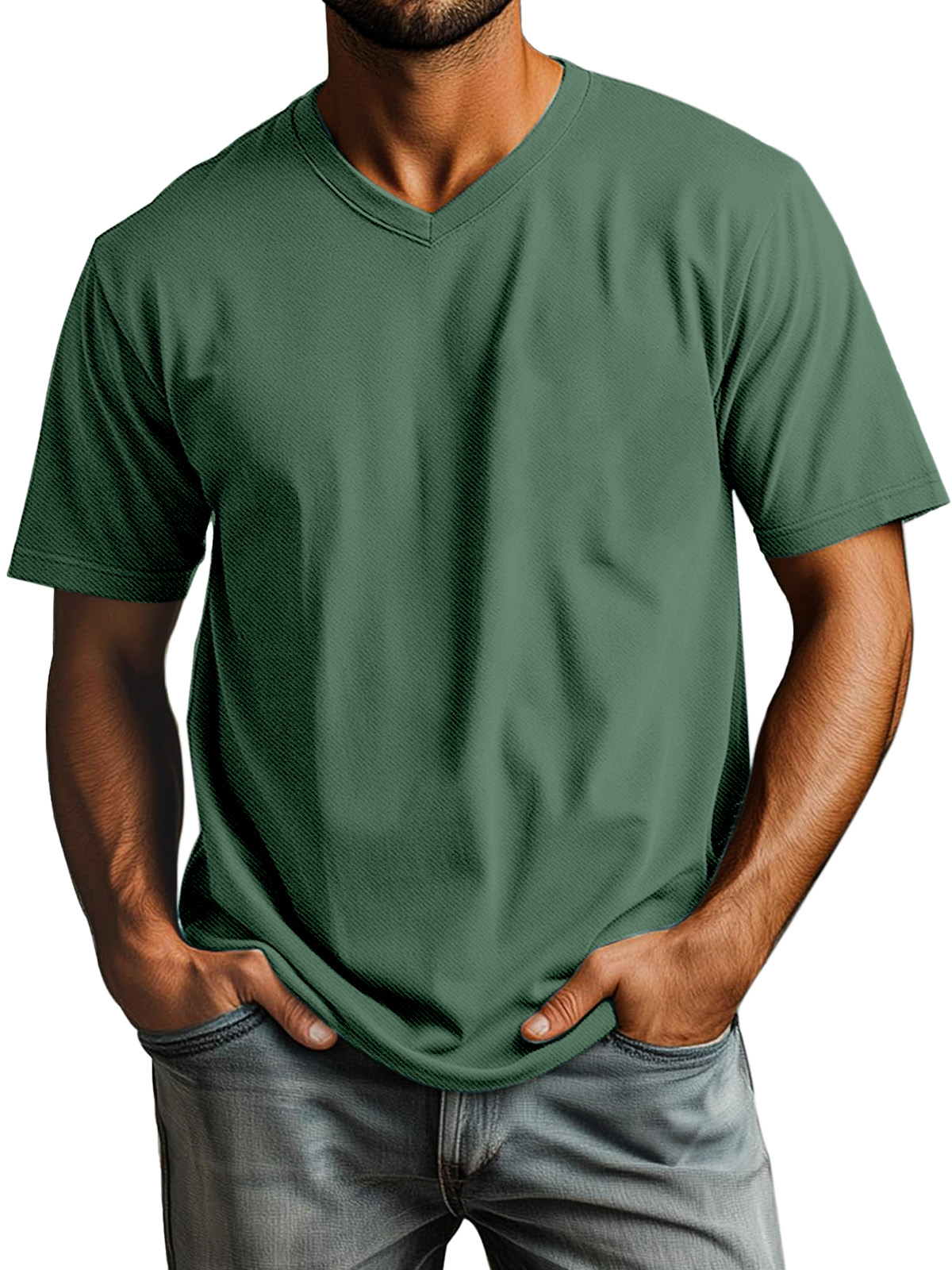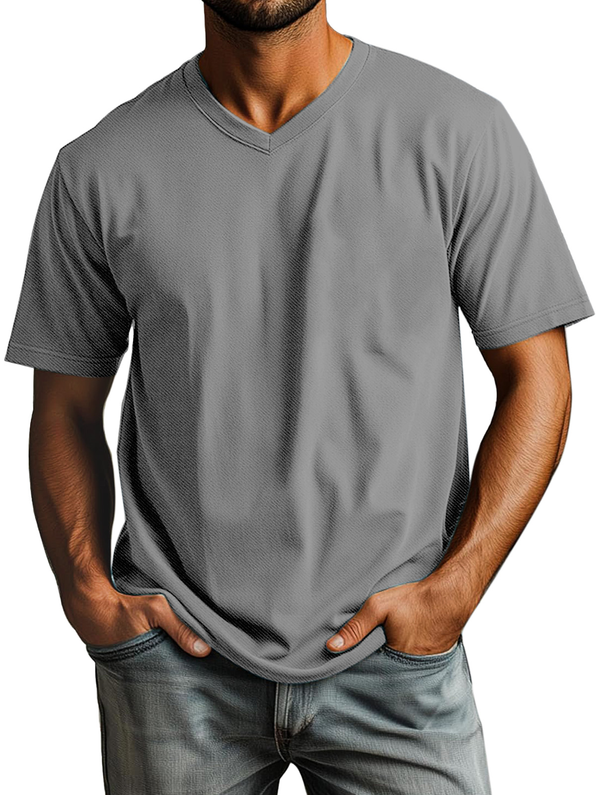 Men's Casual Simple Solid Color Daily V-neck Short-sleeved T-shirt