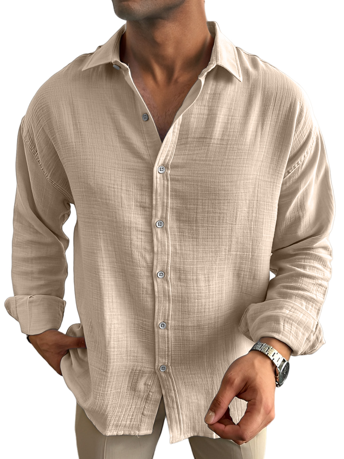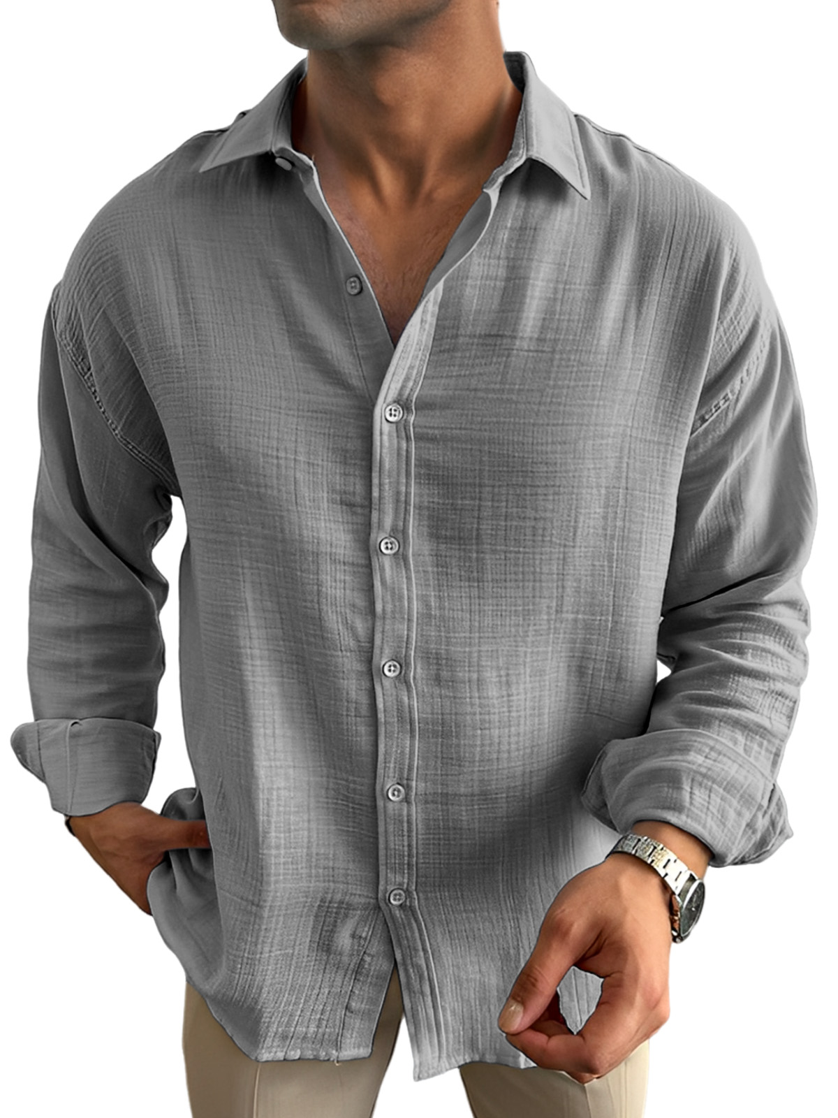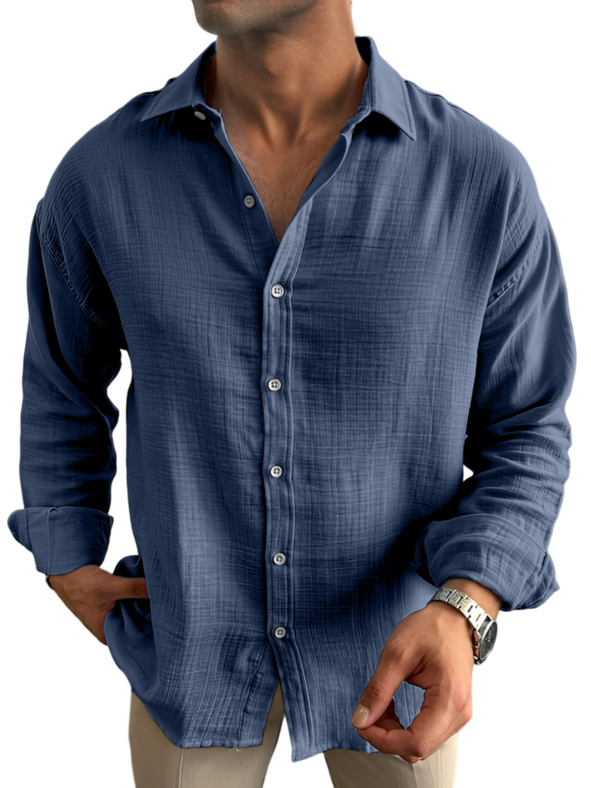 Men's Casual Solid Color Breathable And Comfortable Lapel Long-sleeved Shirt