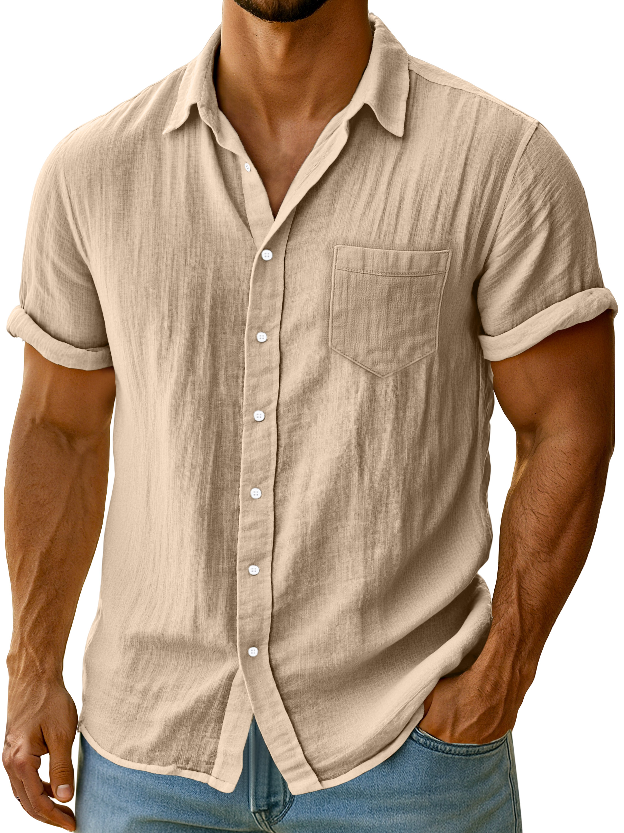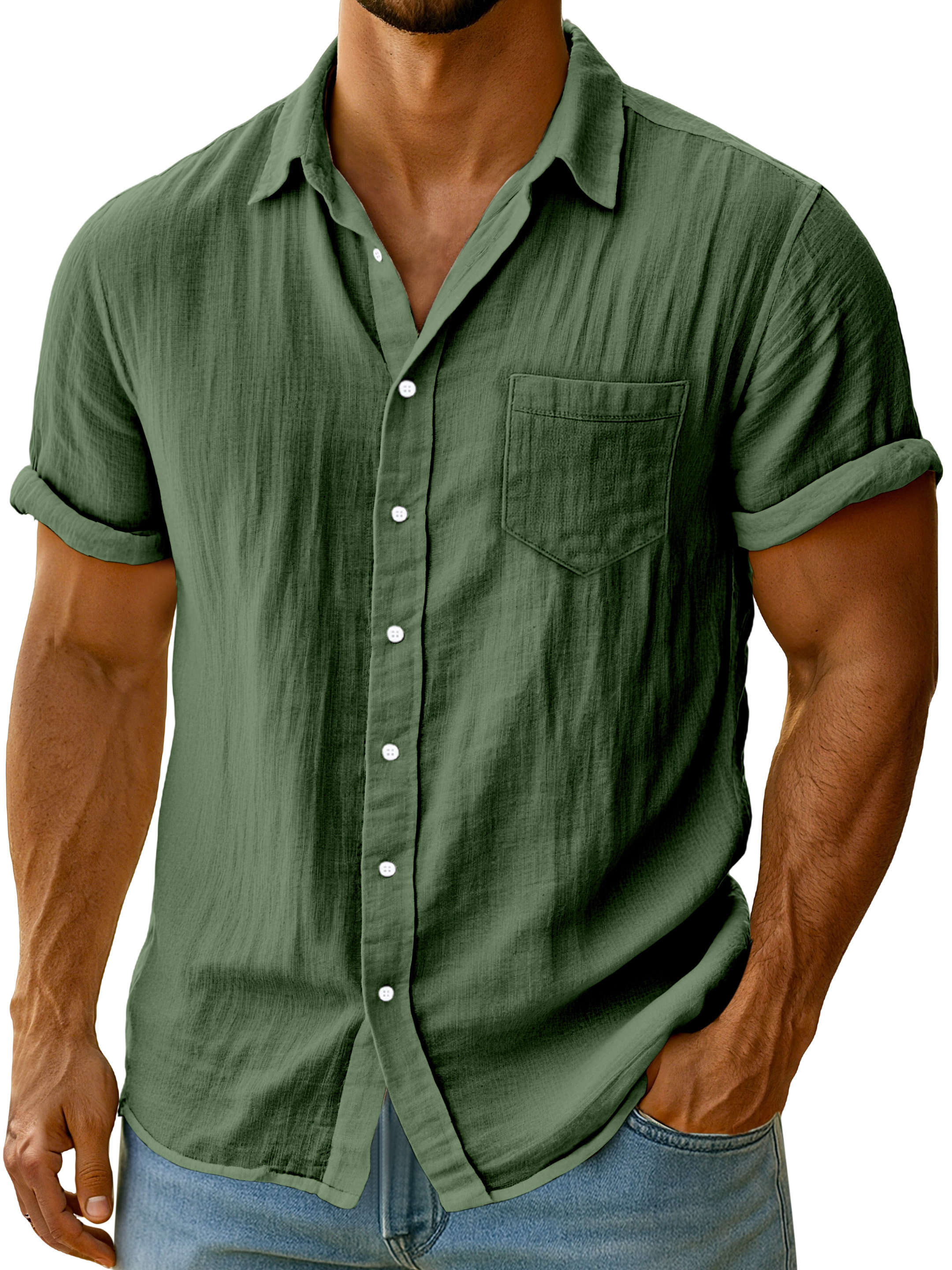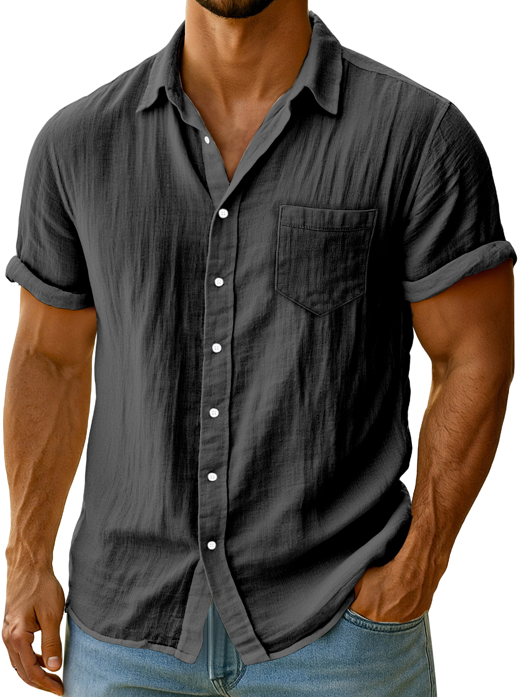 Men's Casual Solid Color Breathable Imitation Linen Button Short-sleeved Shirt