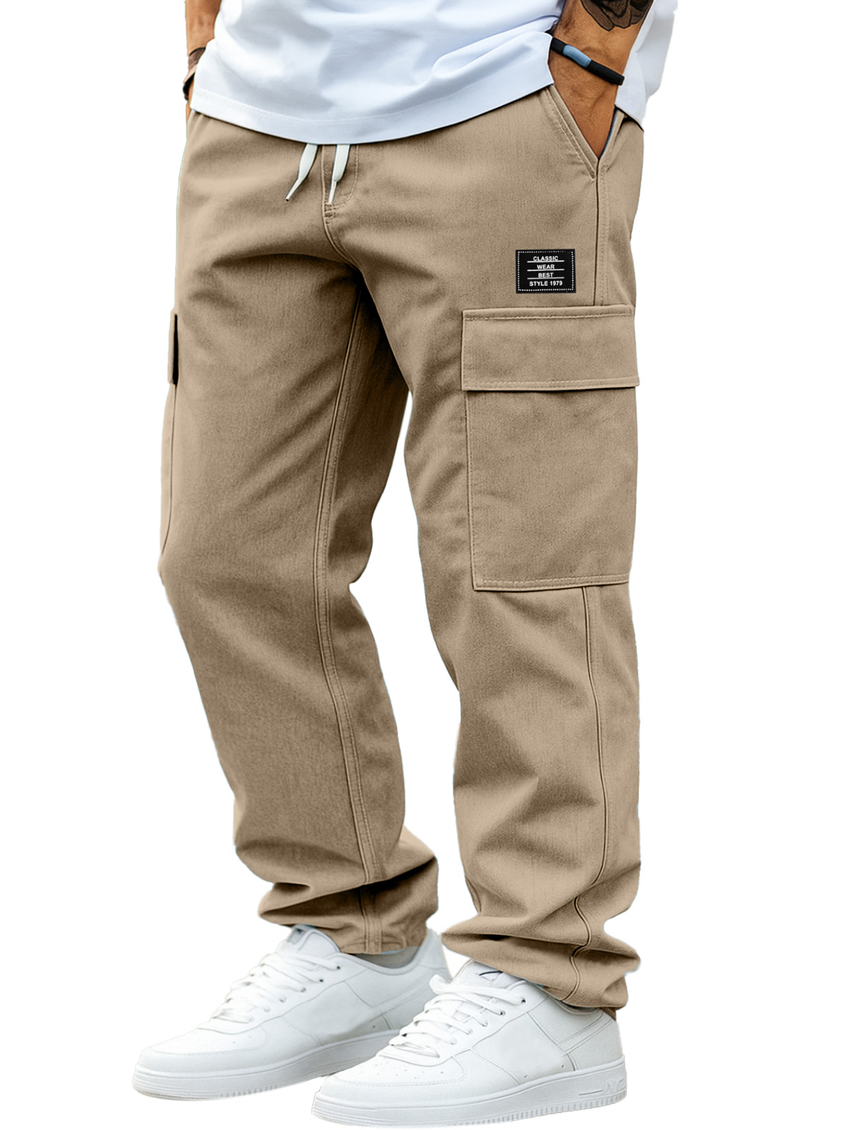 Men's Casual Solid Color Multi-pocket Loose Trousers