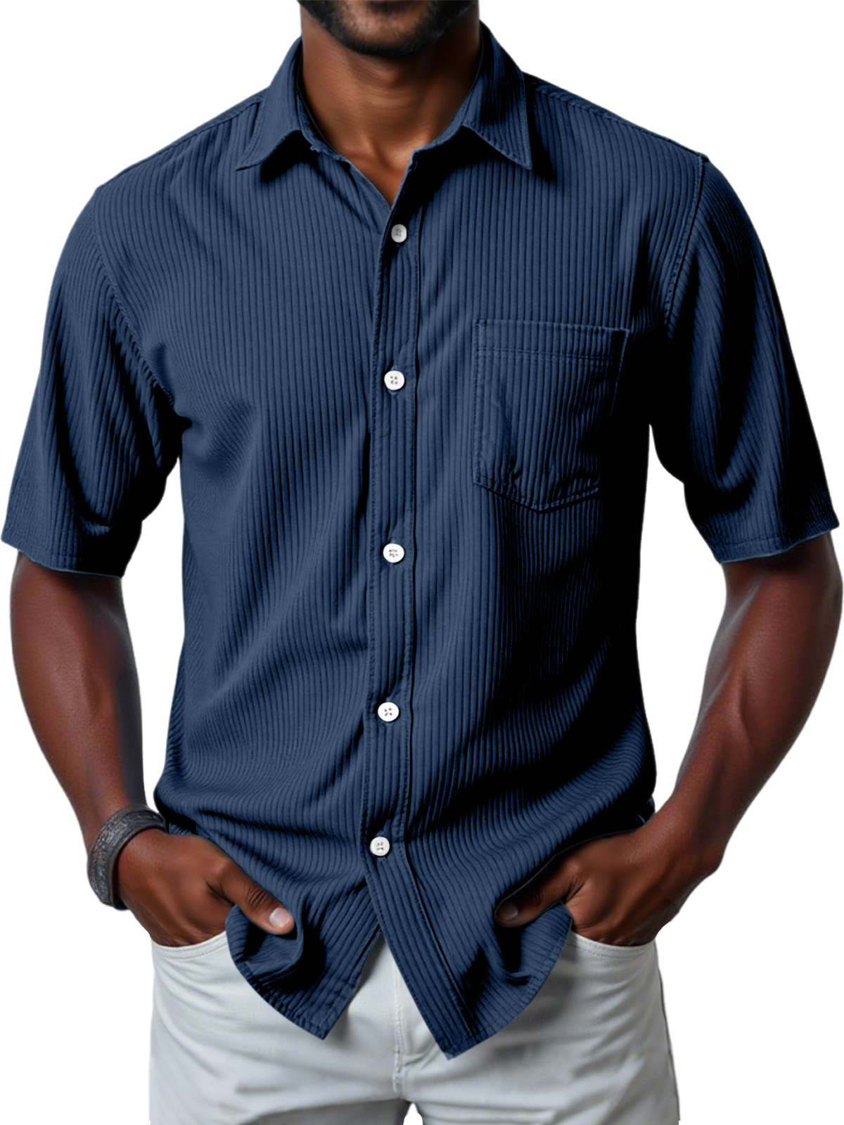 Men's Casual Solid Color Pit Short-sleeved Shirt