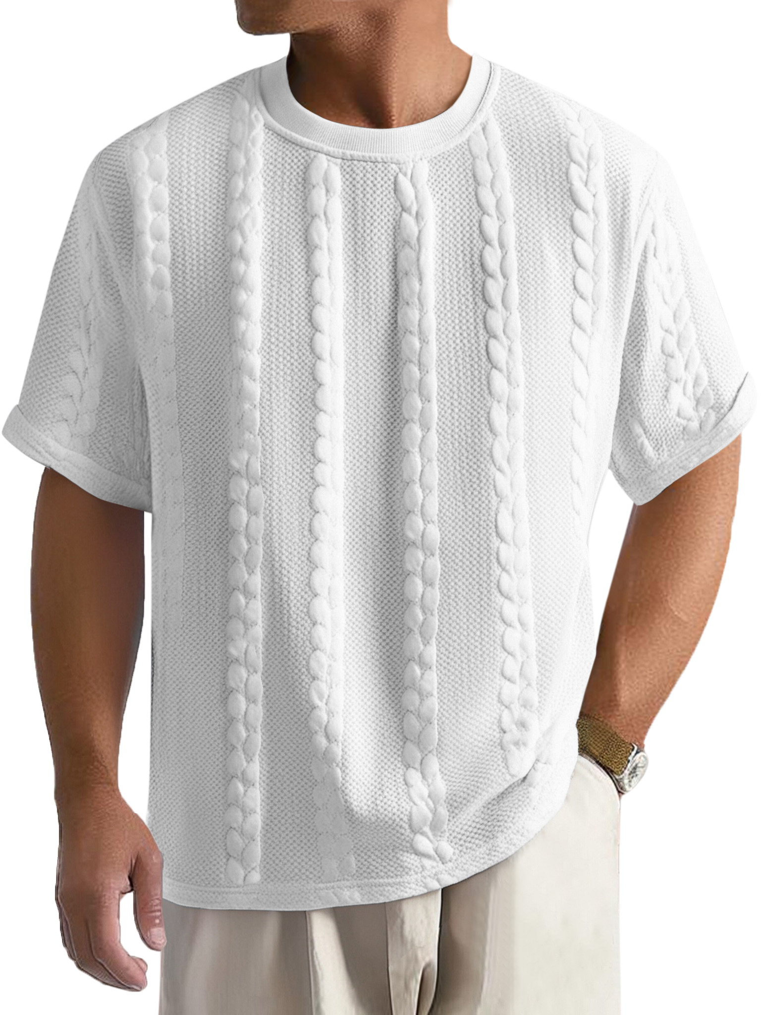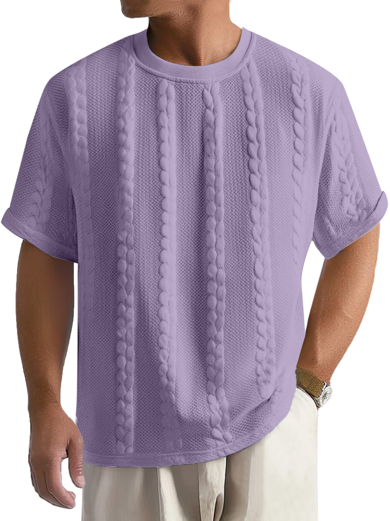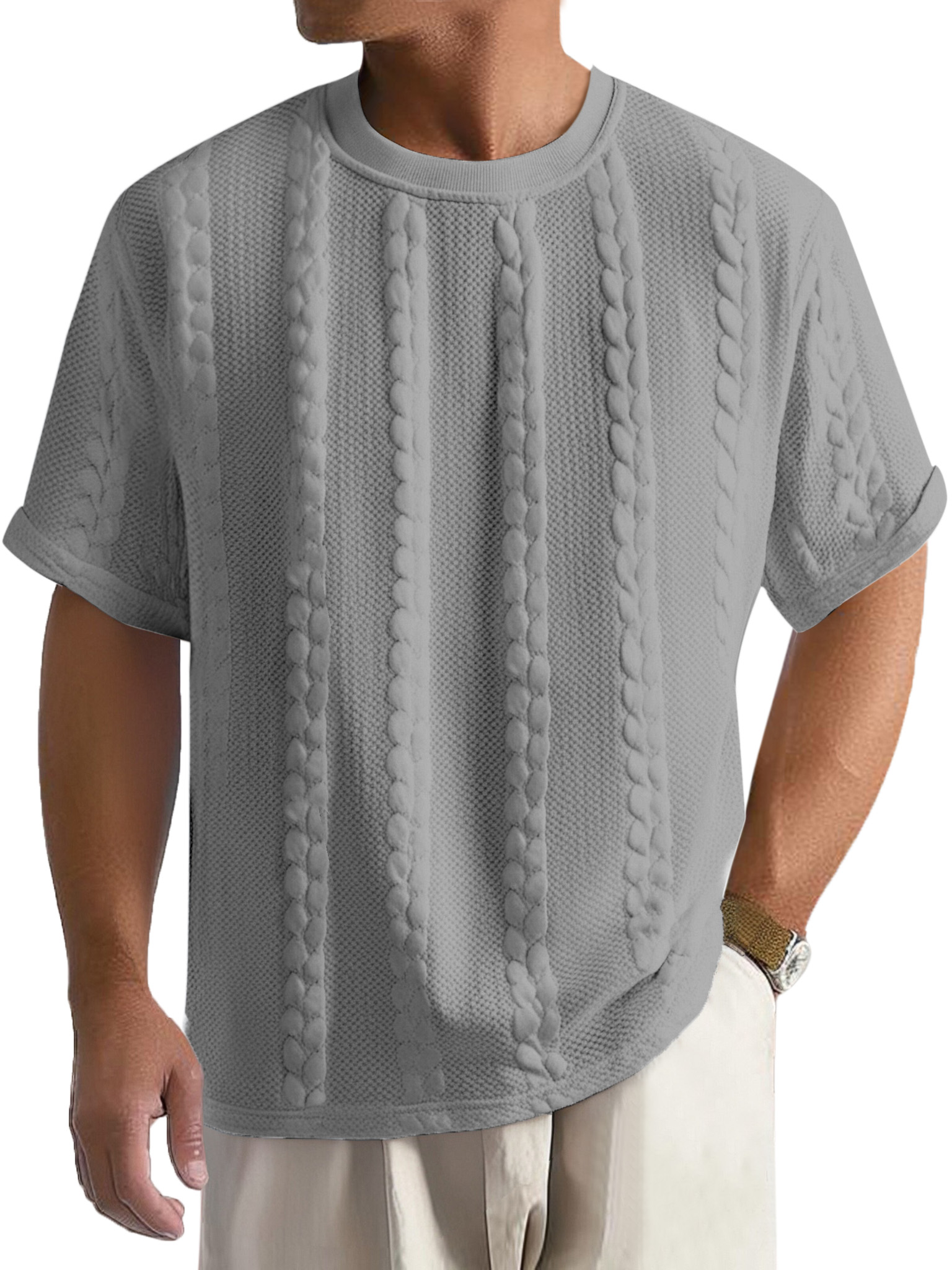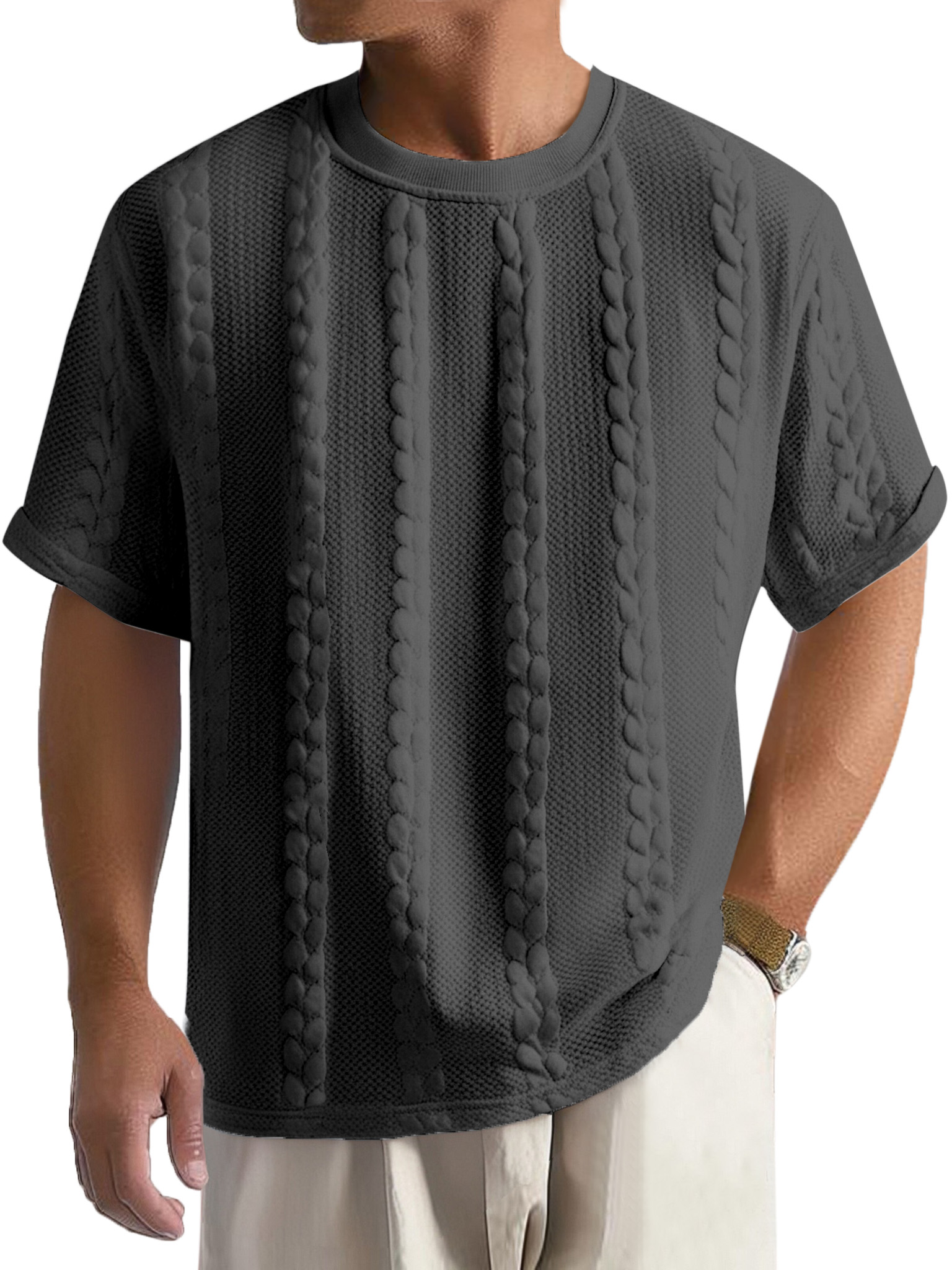 Men's Casual Solid Color Texture Loose Round Neck Short-sleeved T-shirt