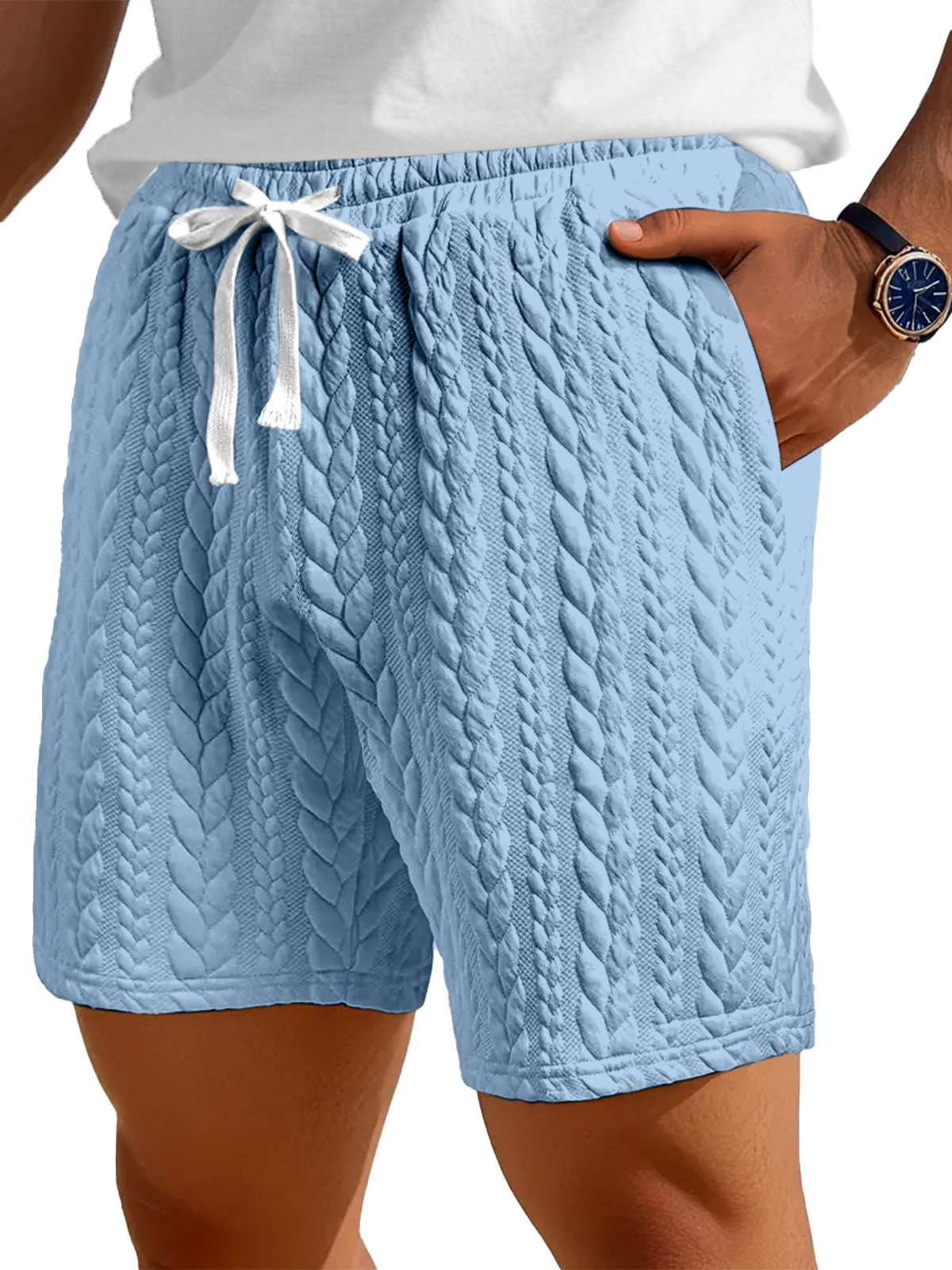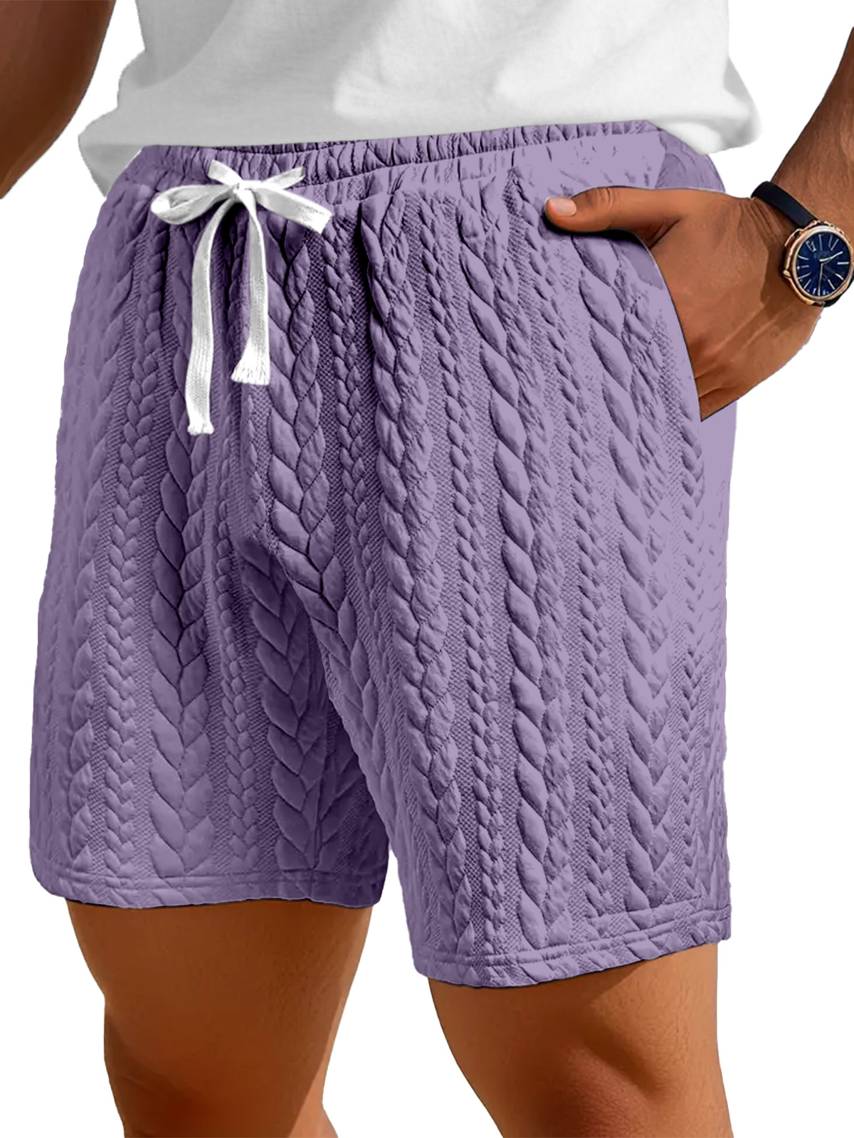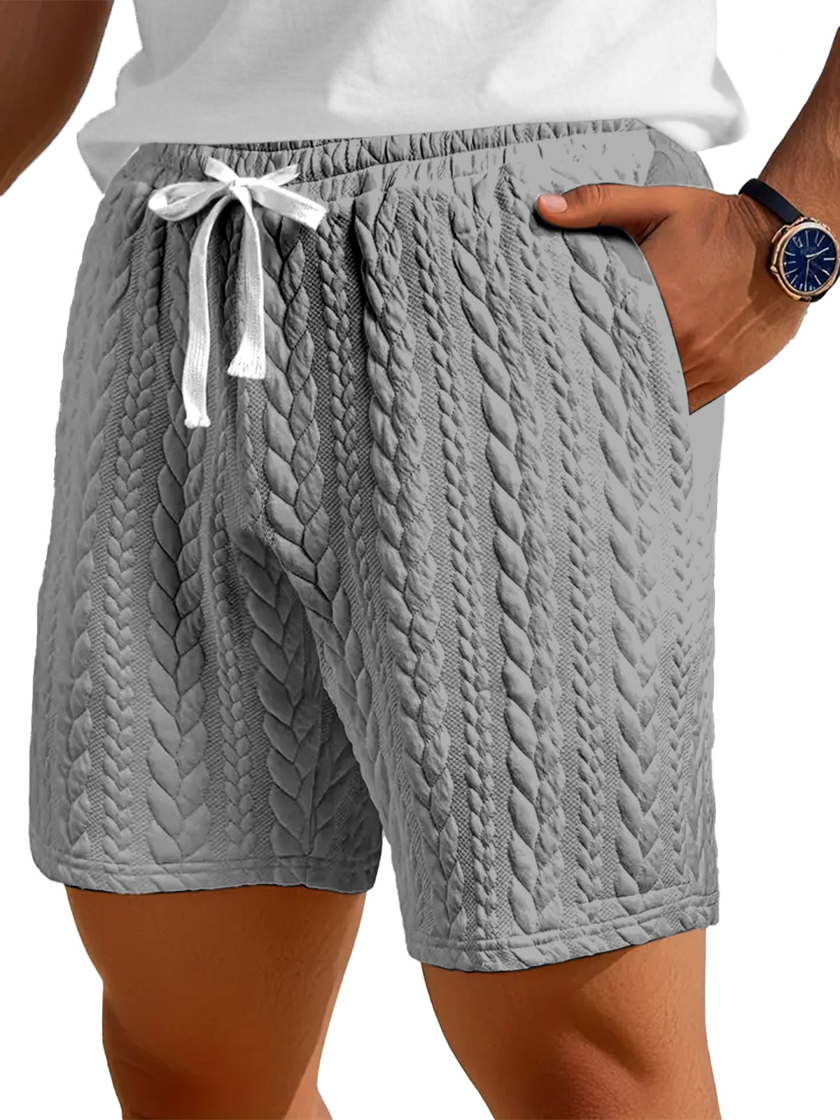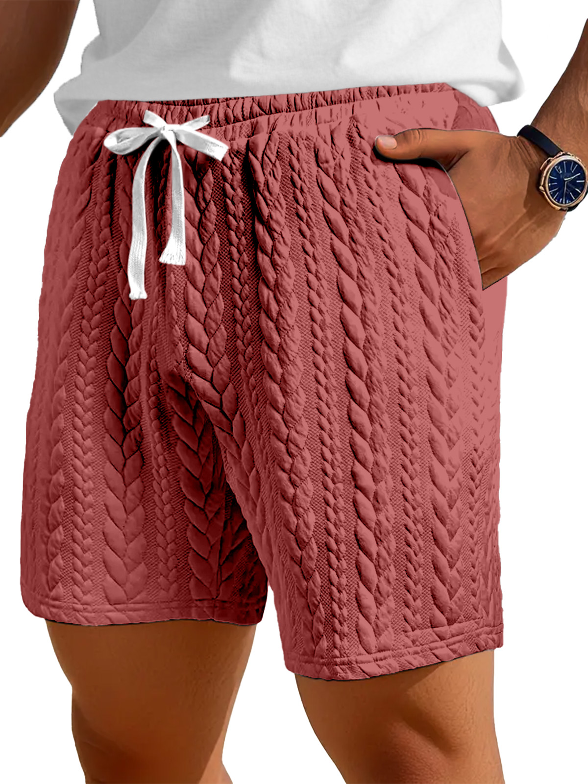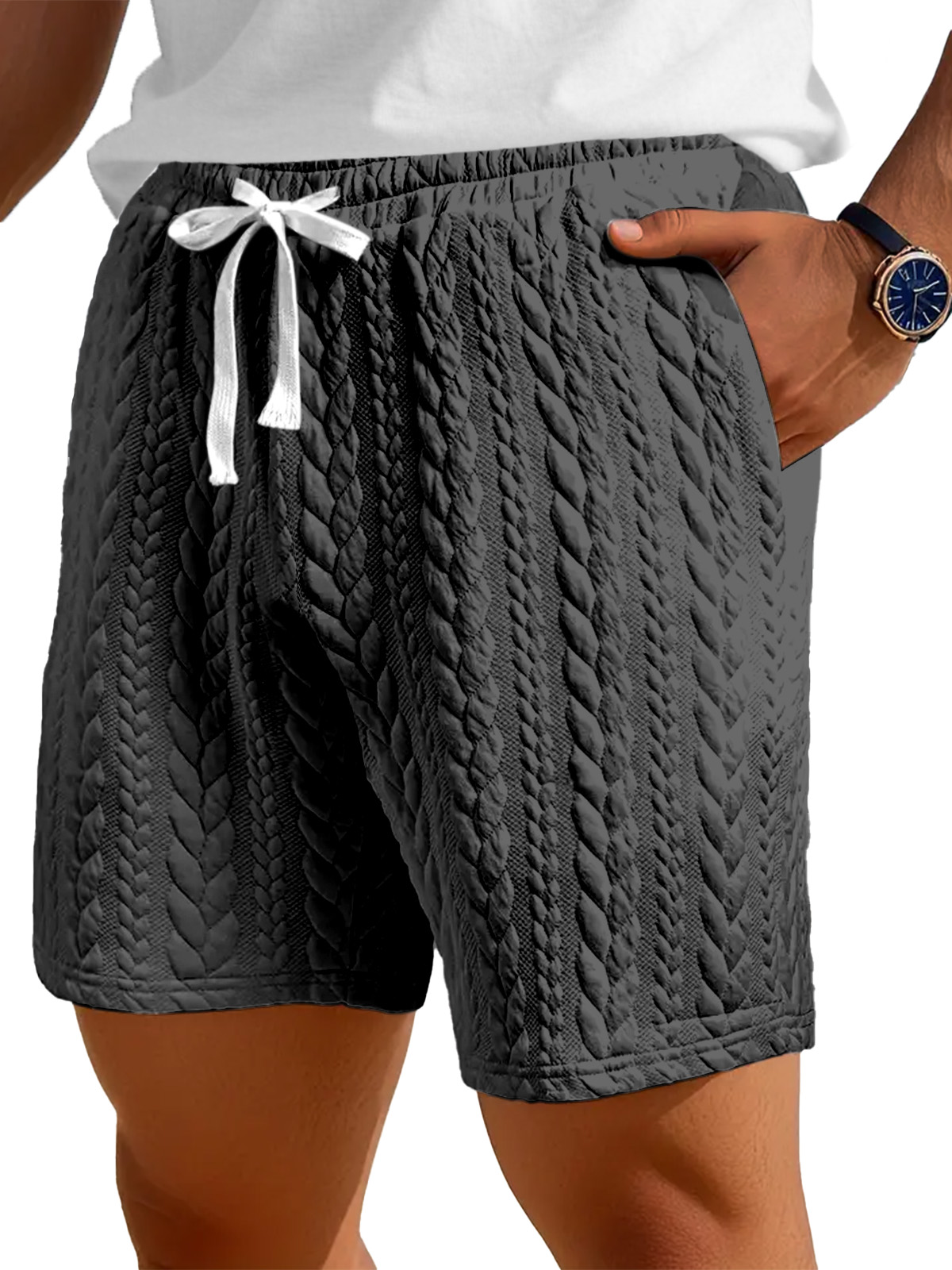 Men's Casual Solid Color Twist Texture Loose Shorts