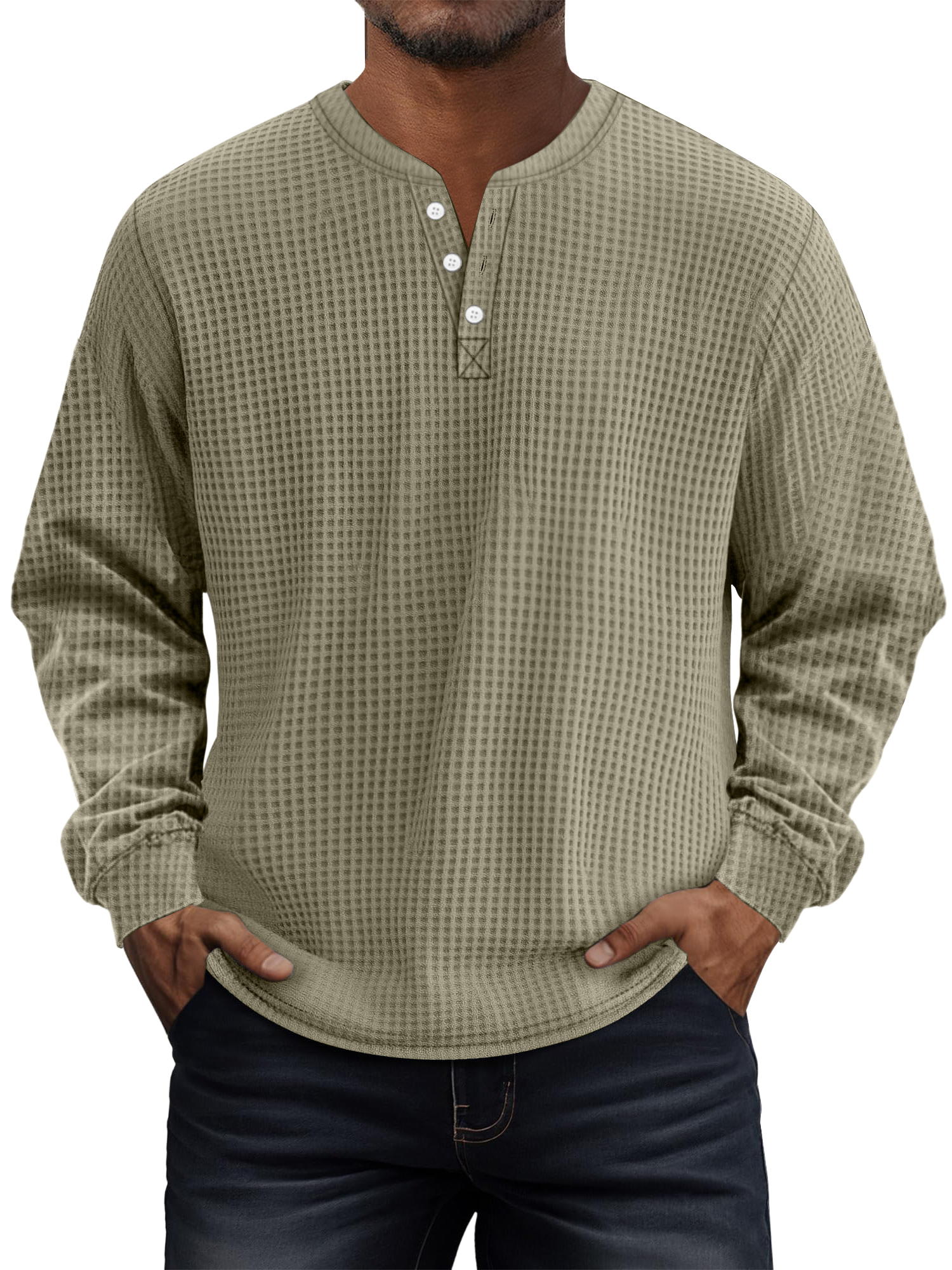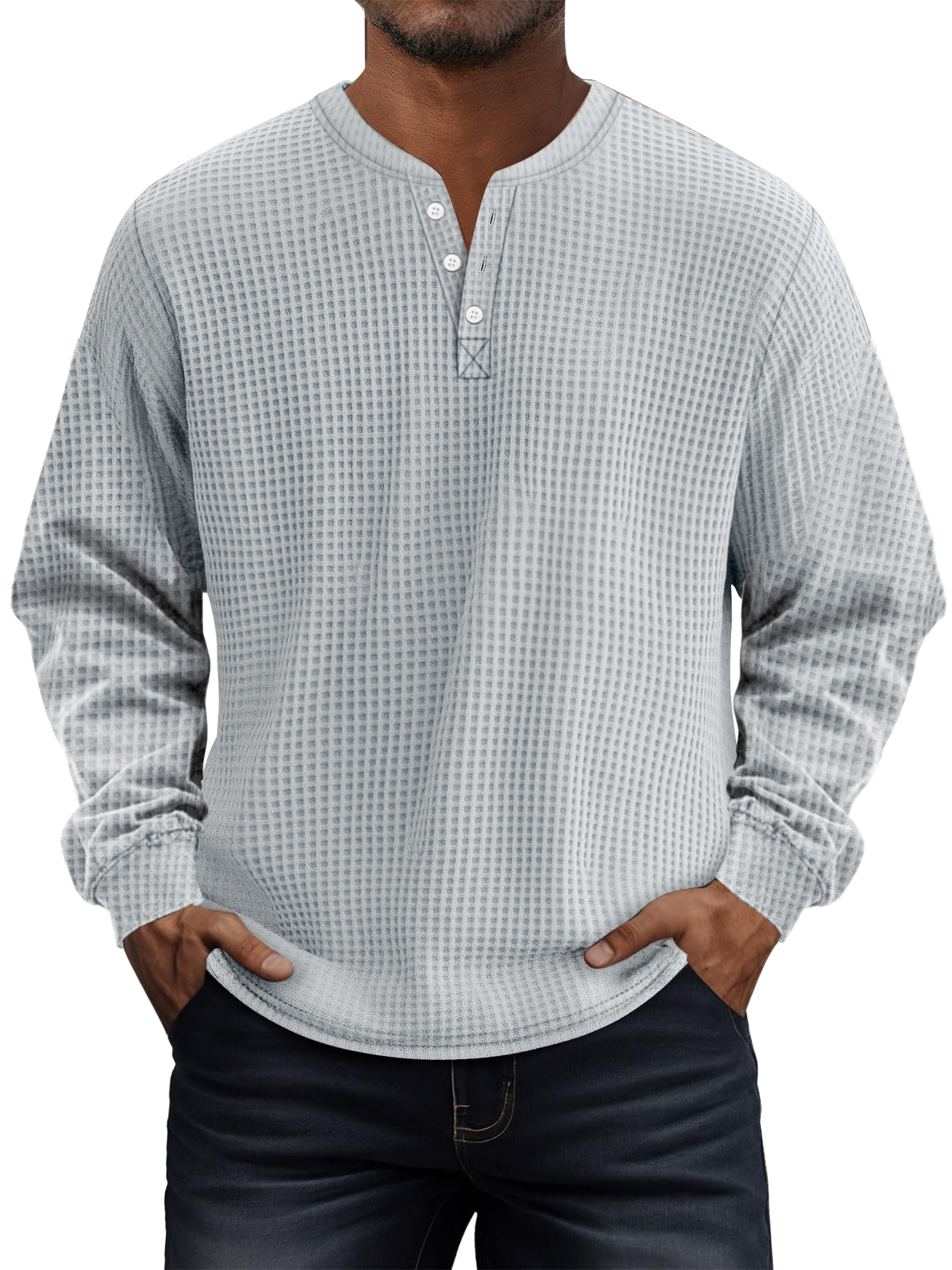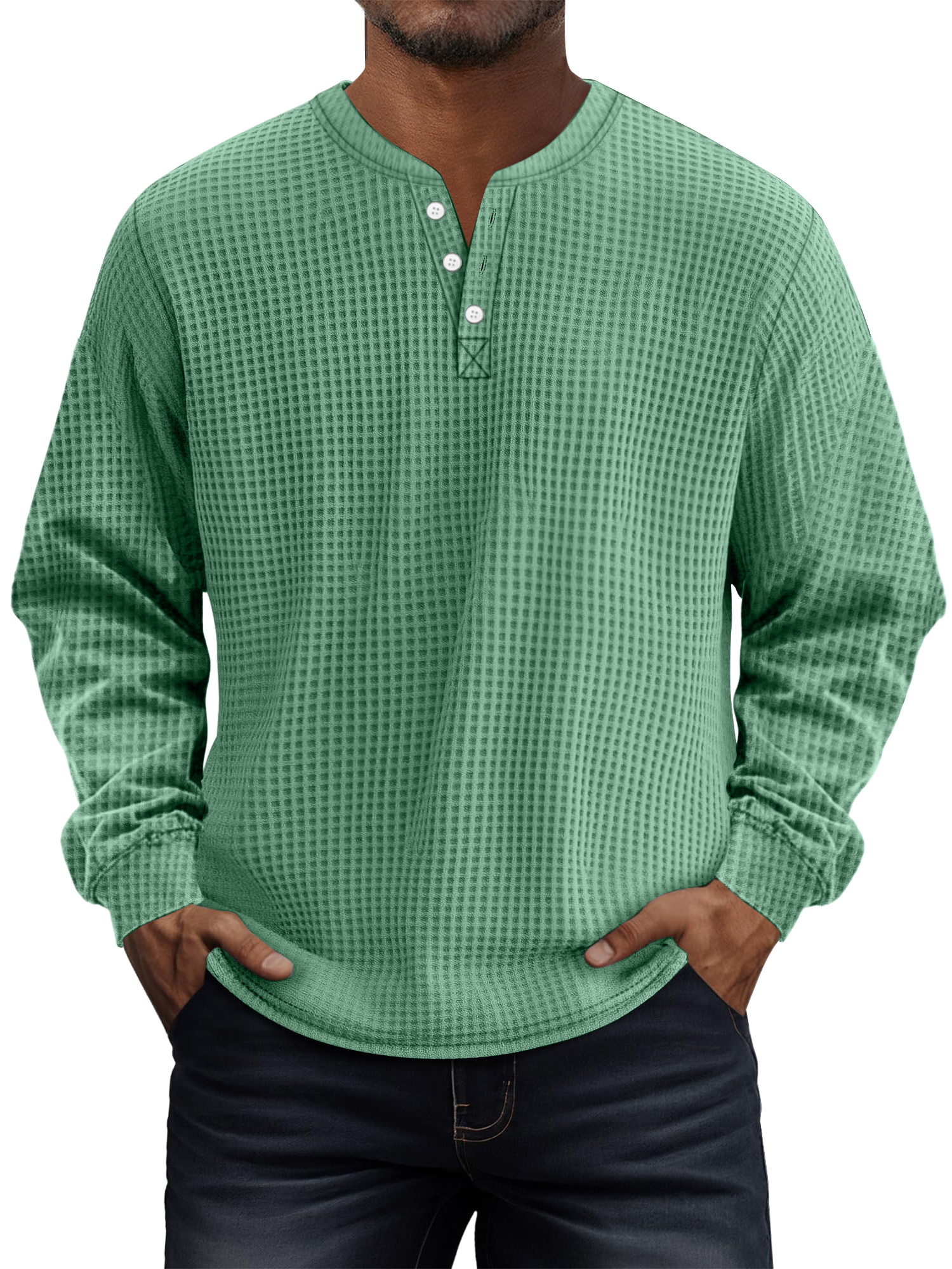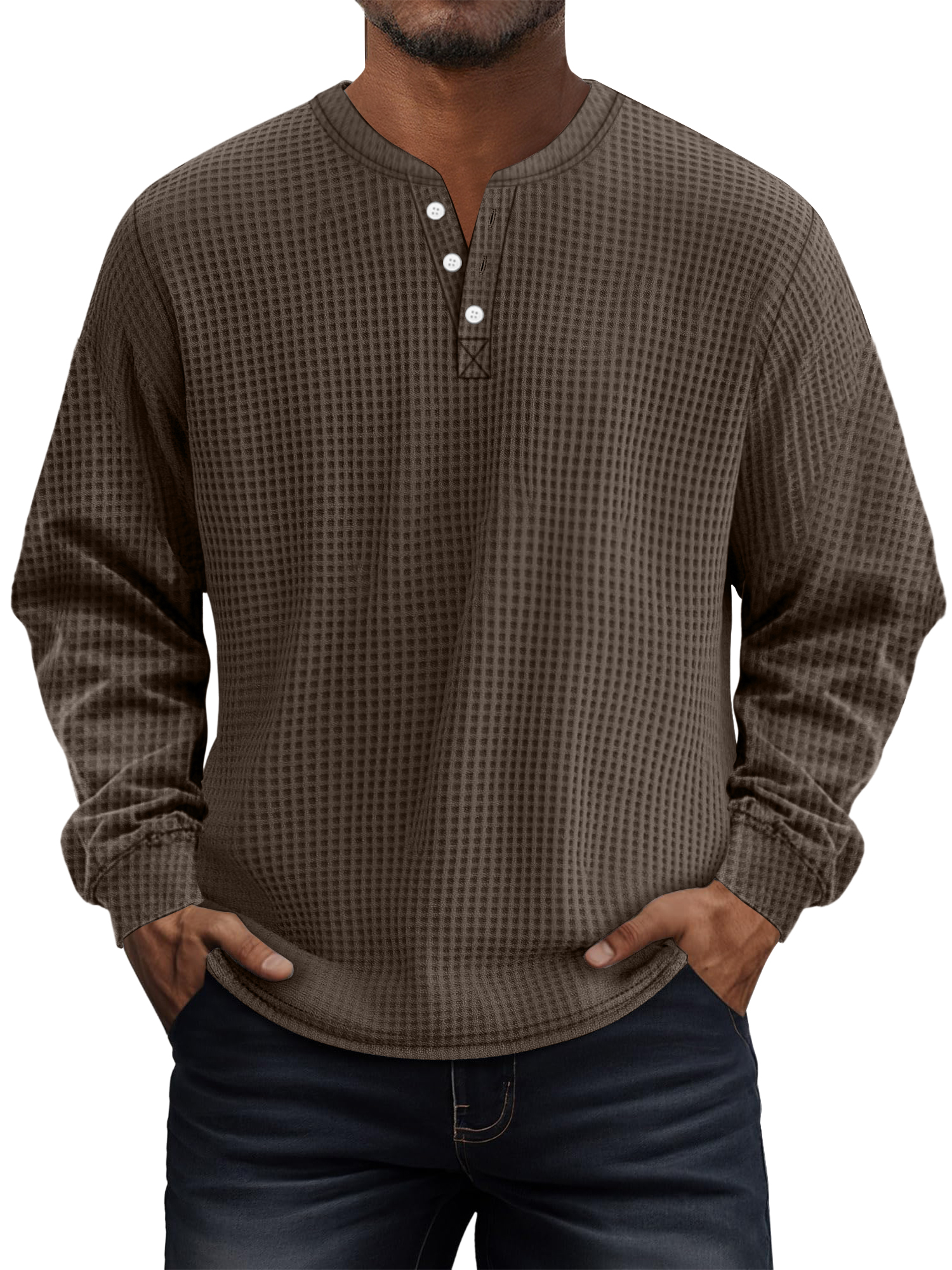 Men's Casual Solid Waffle Long-sleeved Henley Shirt