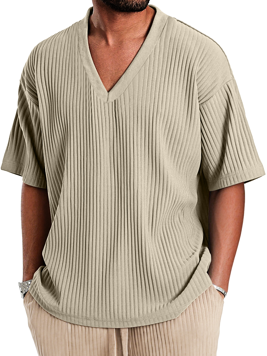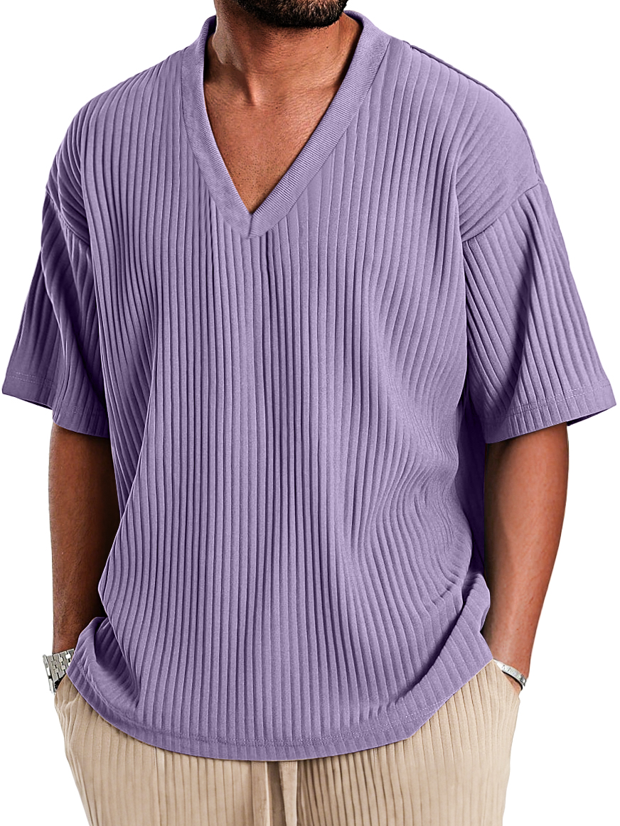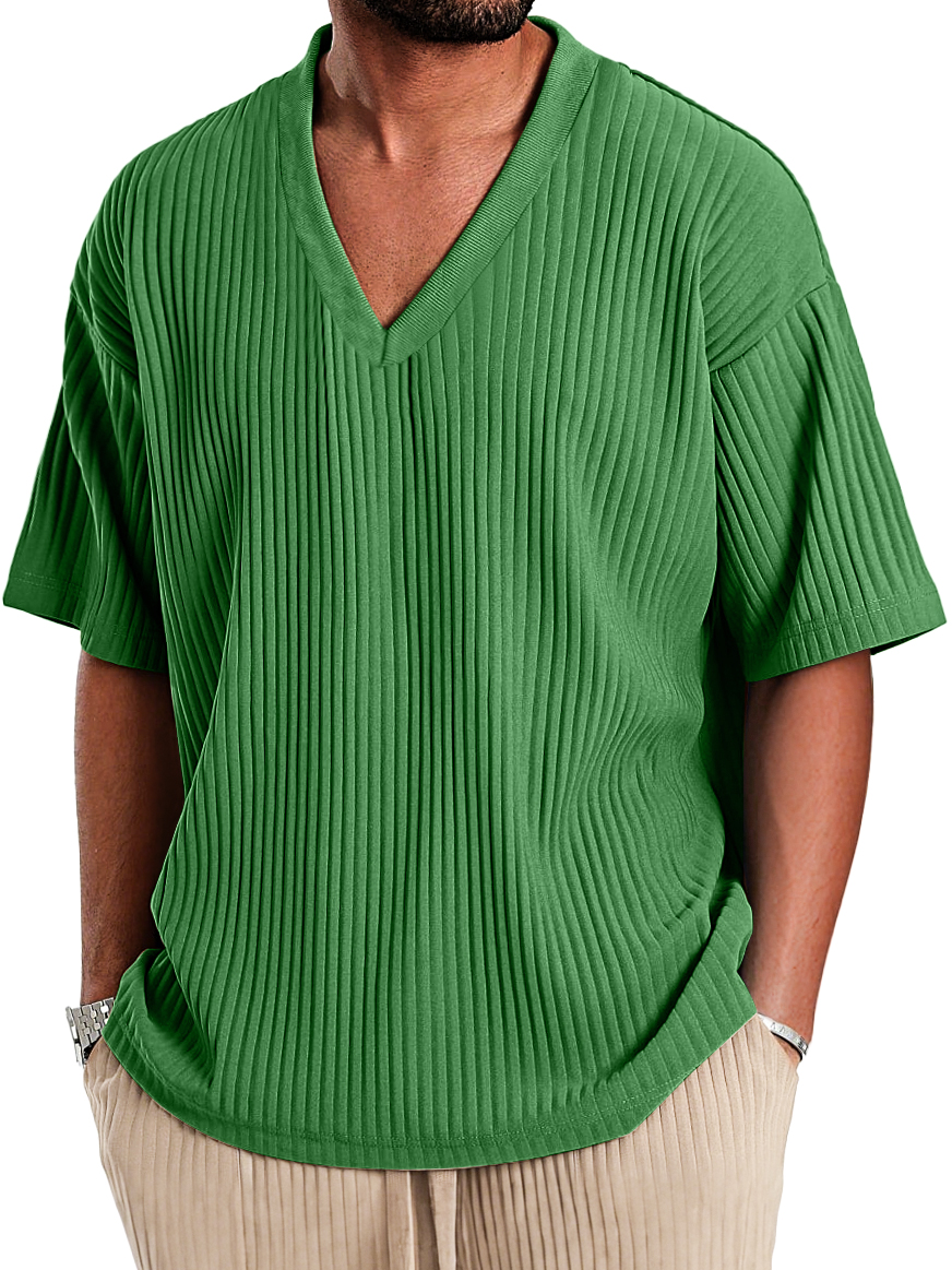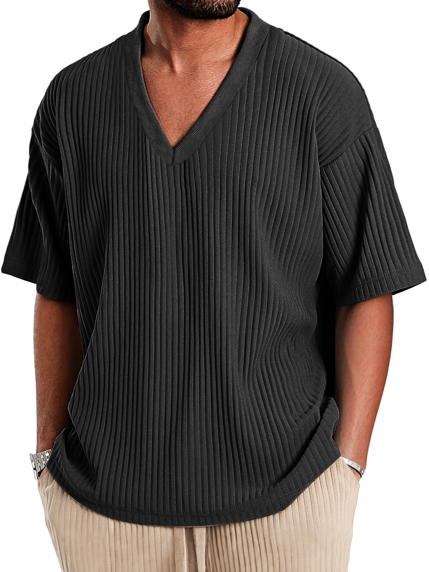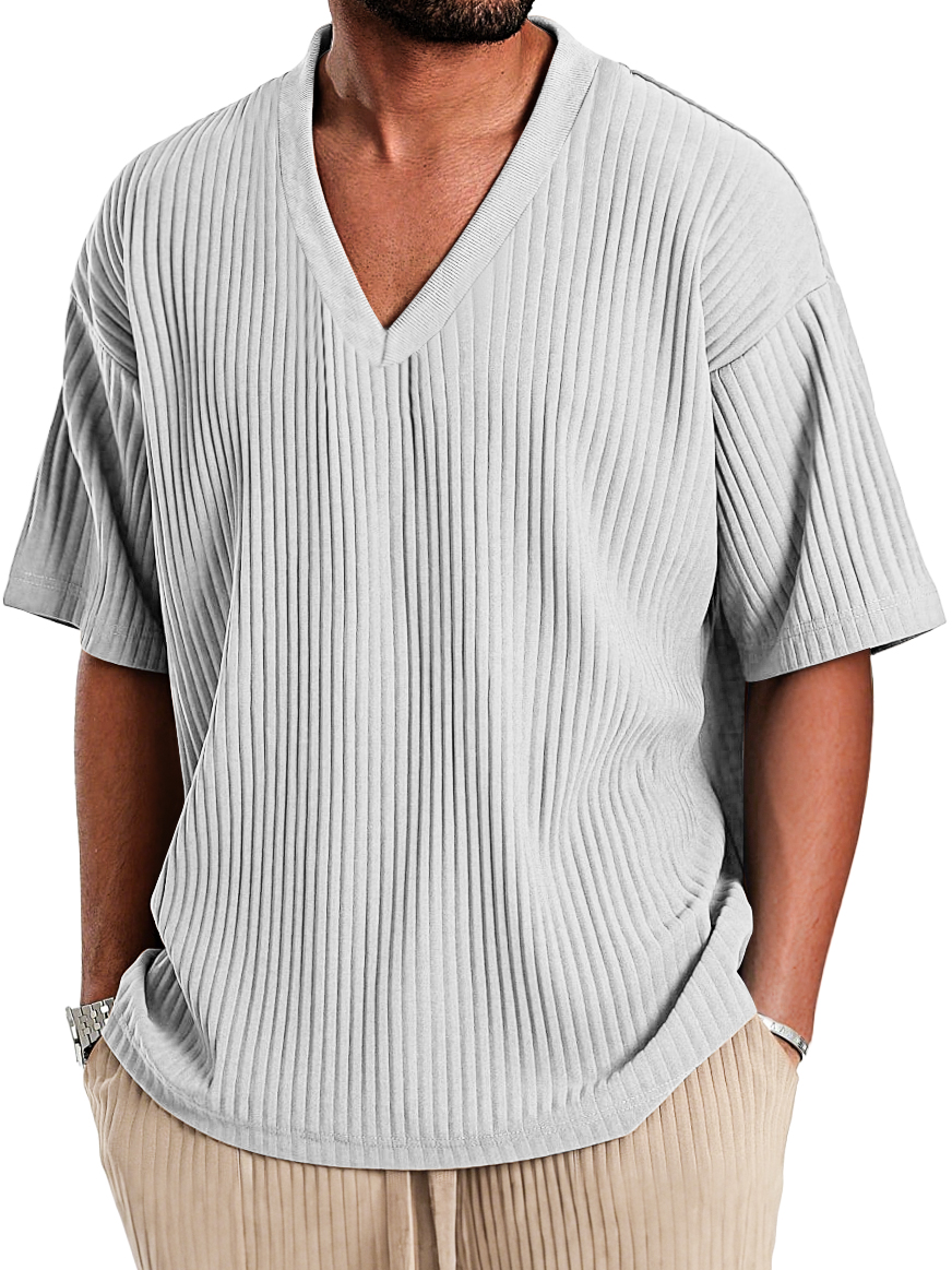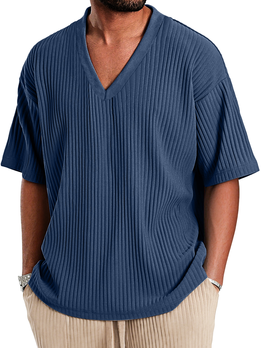 Men's Casual V-neck Ribbed Comfortable Short-sleeved T-shirt