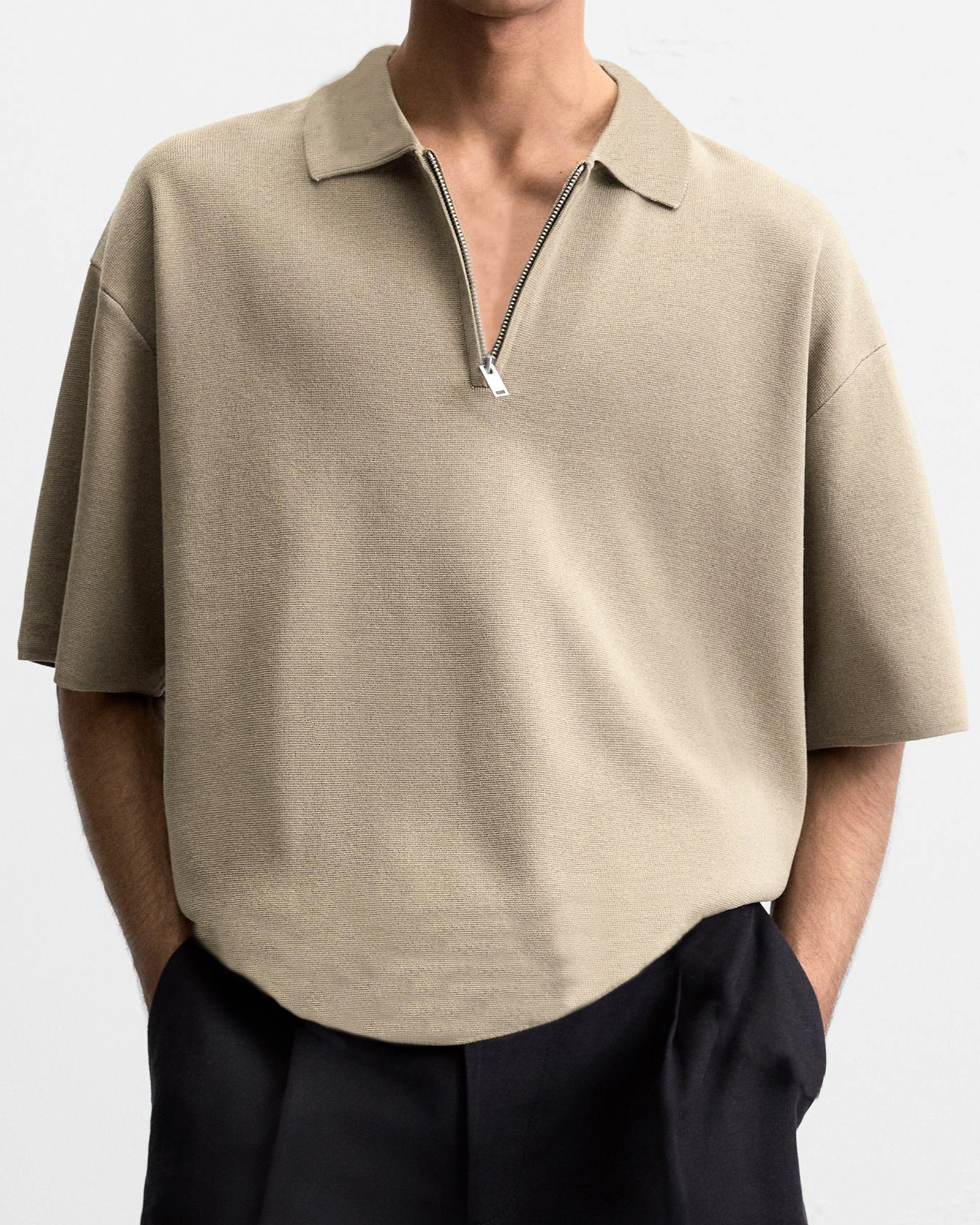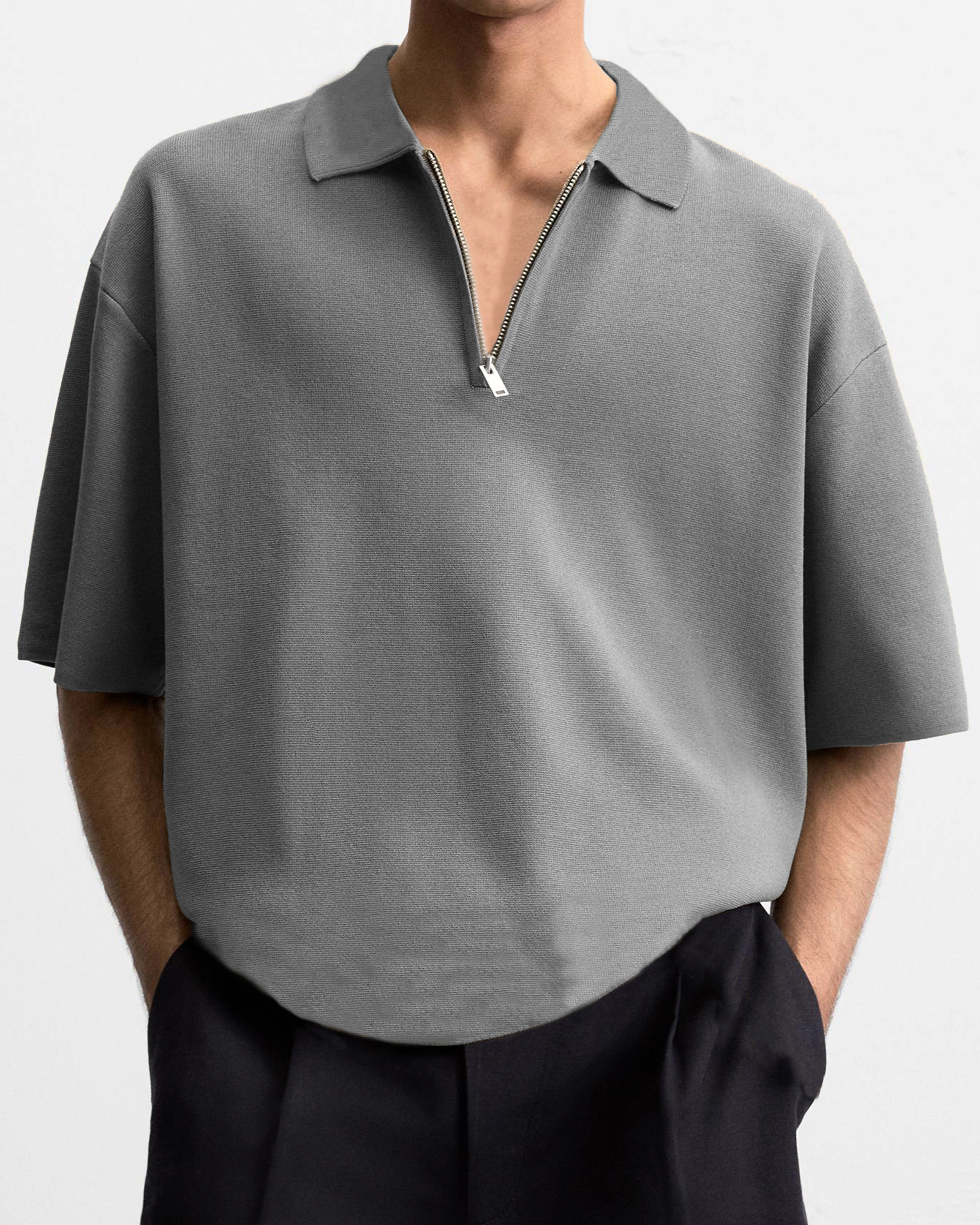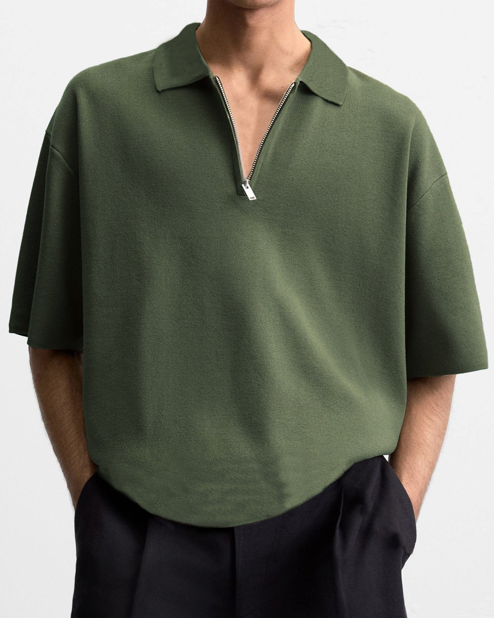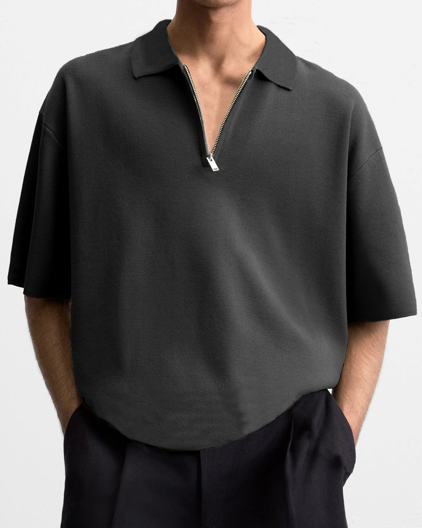 Men's Comfortable Quarter Zip Everyday Textured Lapel Polo Shirt