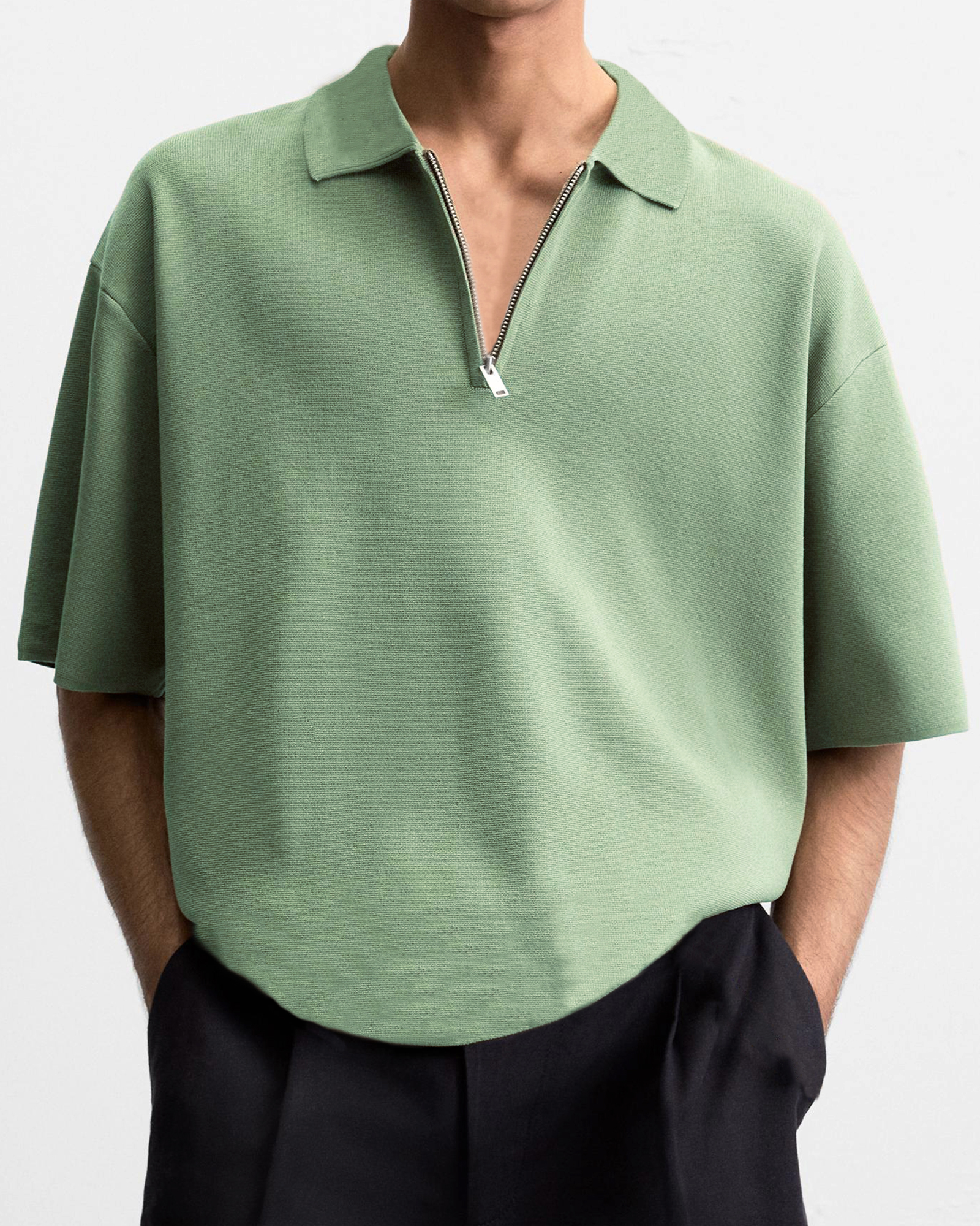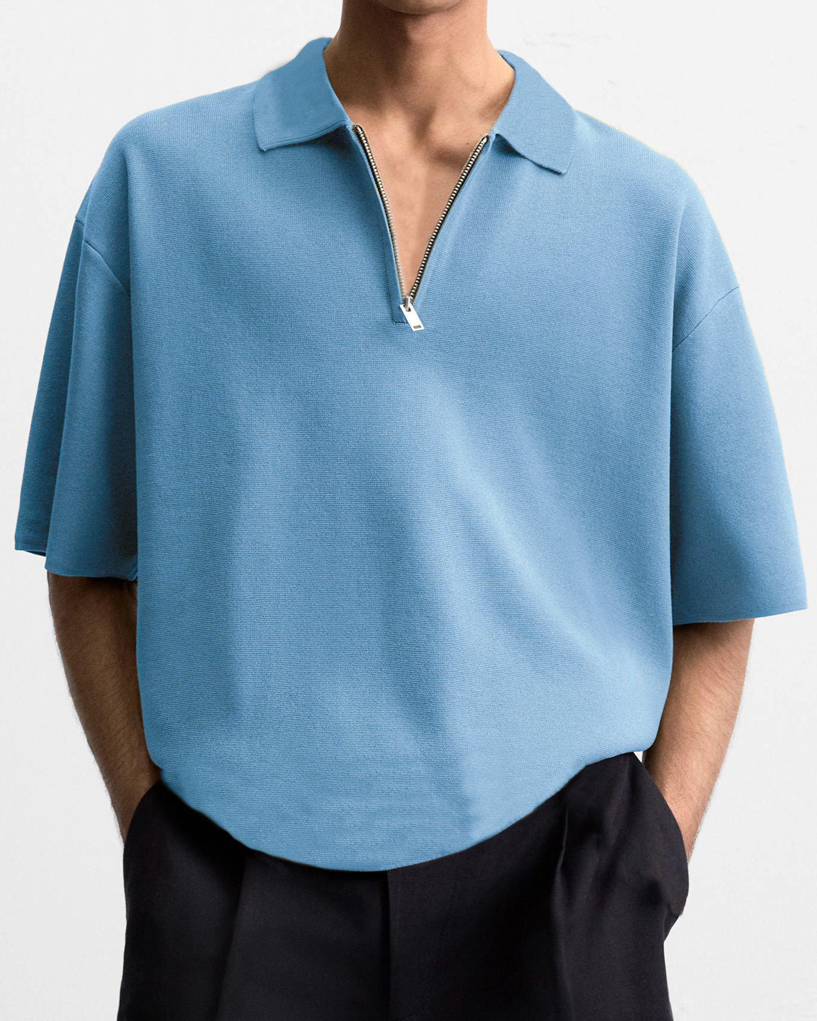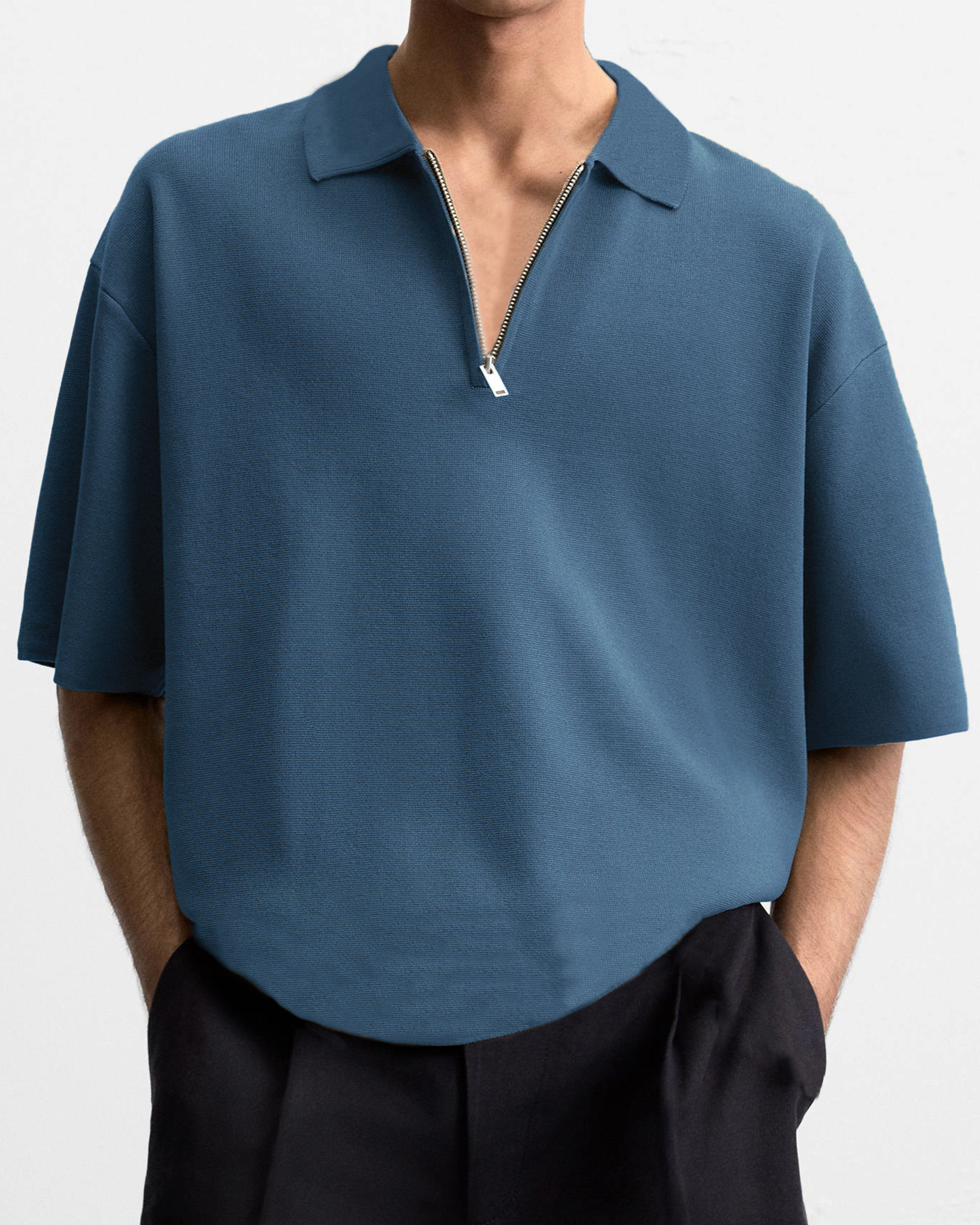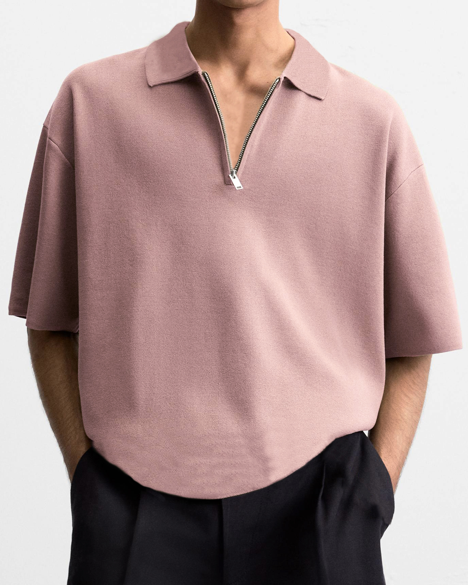 Men's Comfortable Quarter Zip Everyday Textured Lapel Polo Shirt
