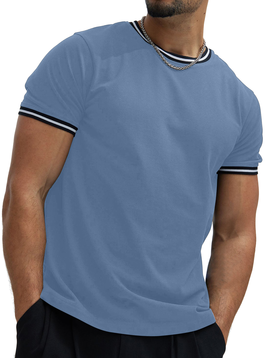 Men's Contrast Color Simple Trendy Fashion Short-sleeved T-shirt