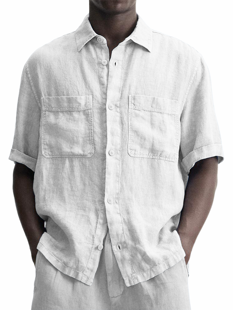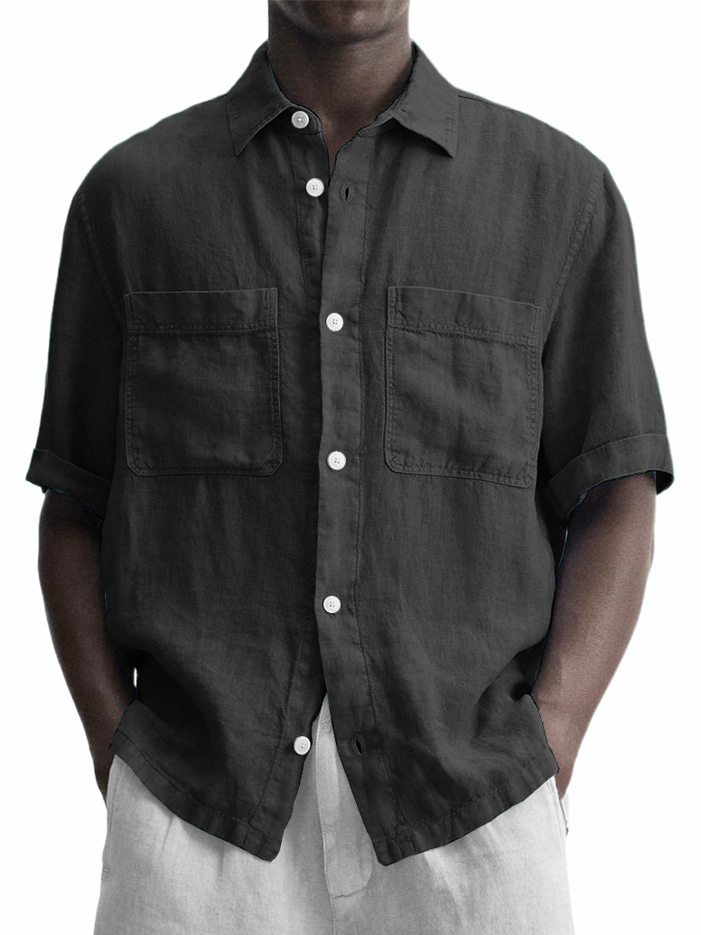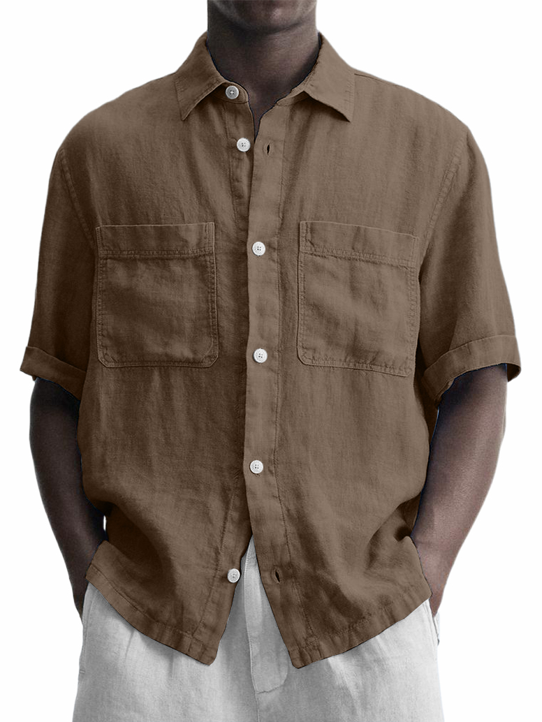 Men's Cotton And Linen Double Pocket Classic Casual Versatile Short-sleeved Shirt