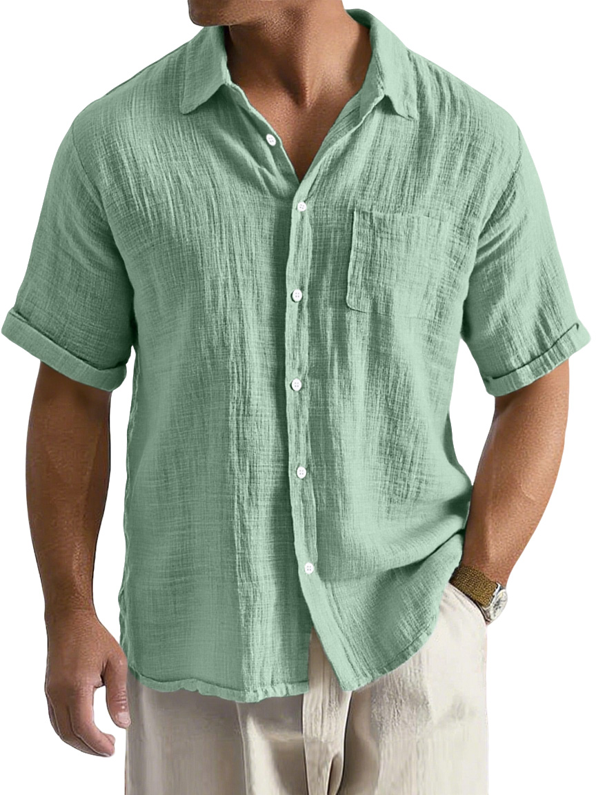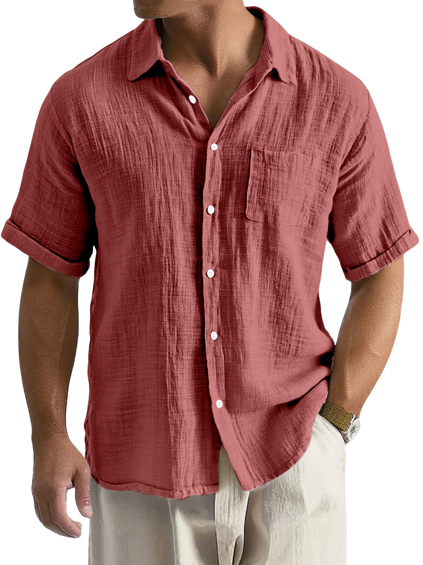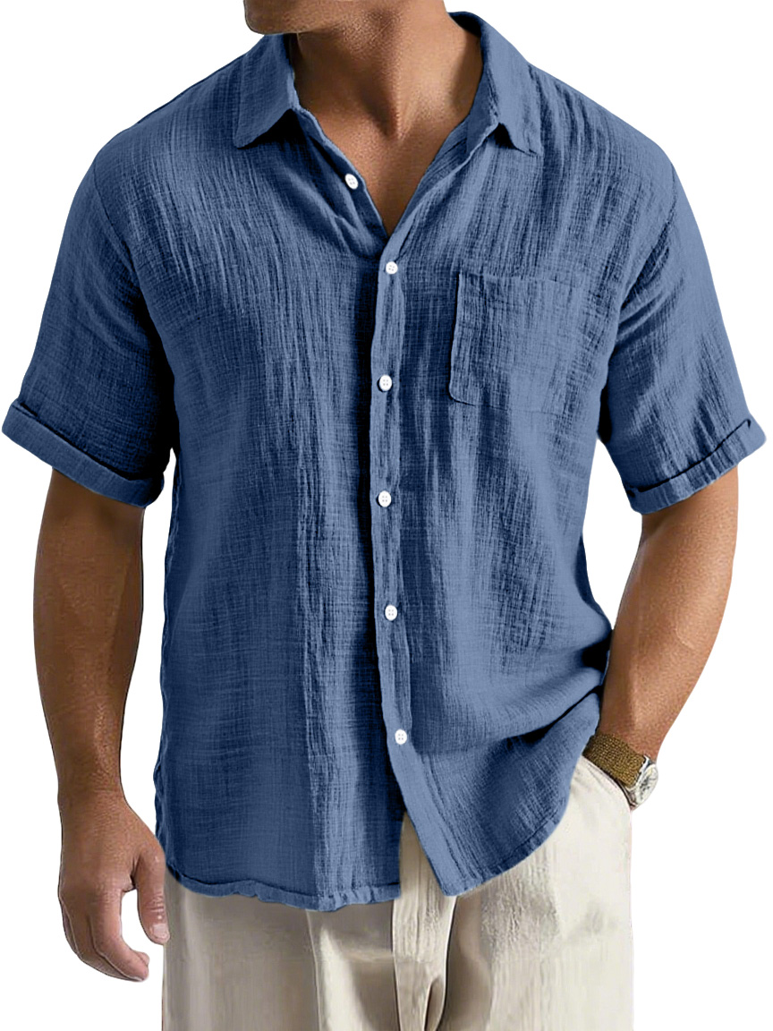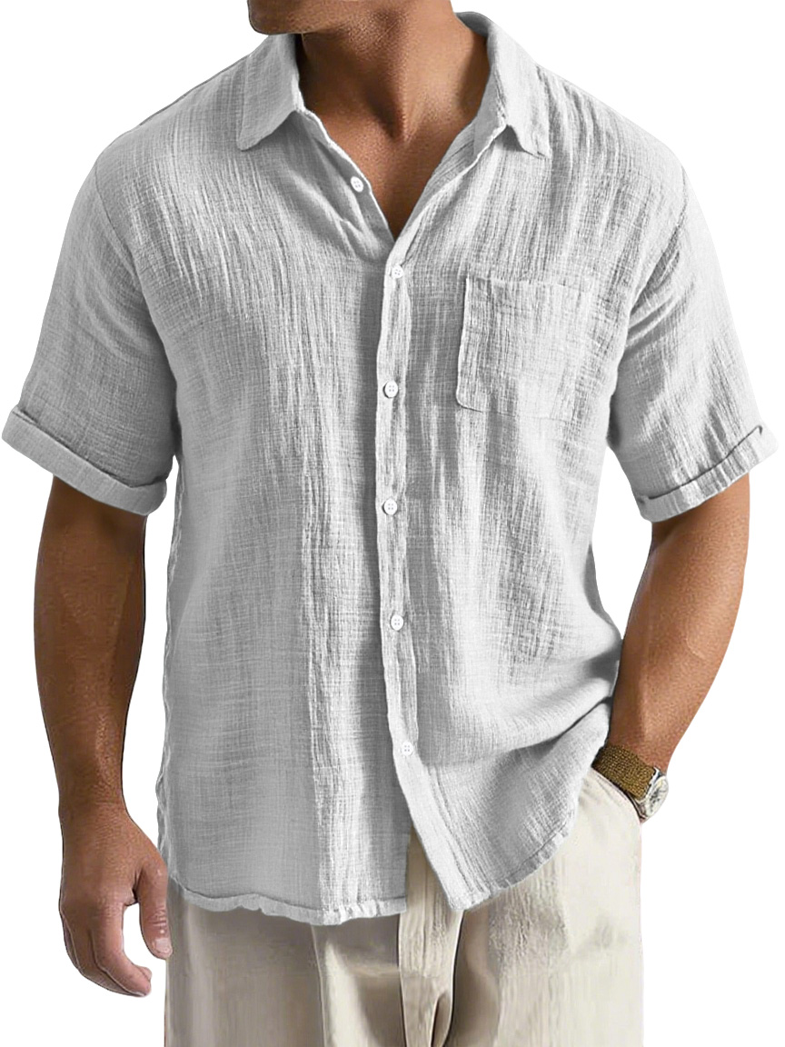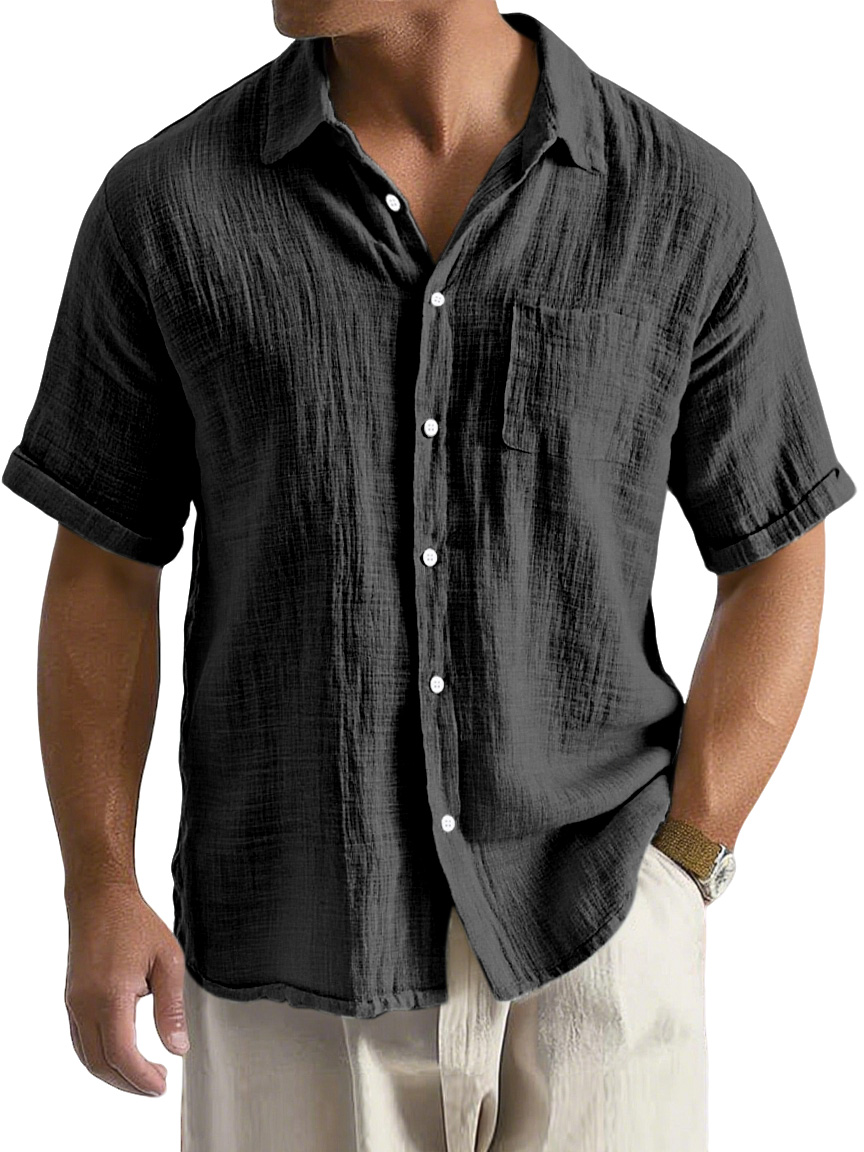 Men's Daily Casual Loose And Comfortable Imitation Linen Lapel Short-sleeved Button-down Shirt