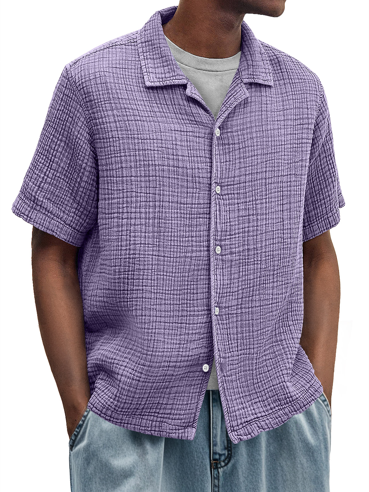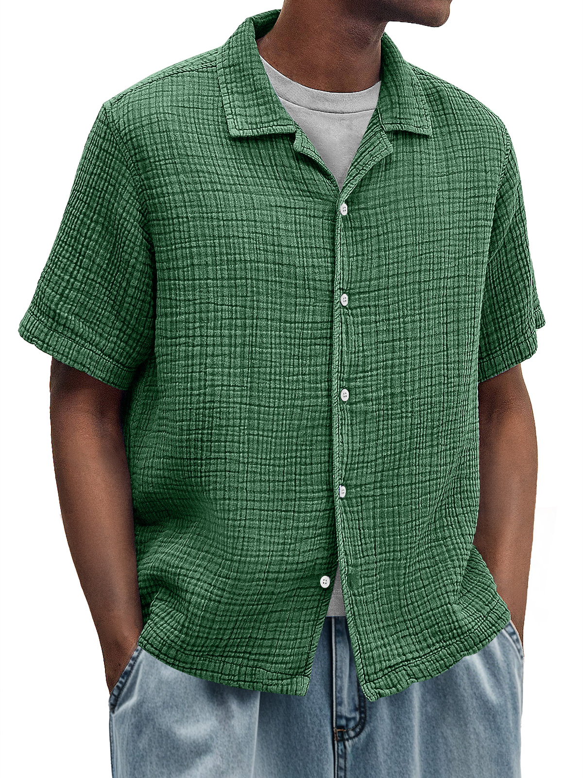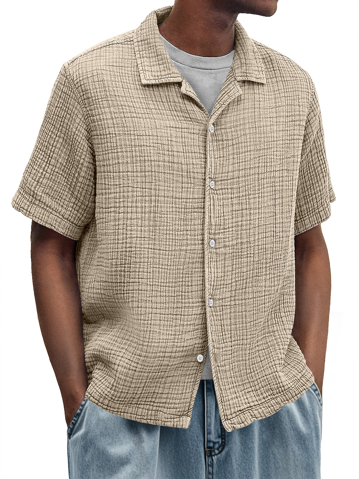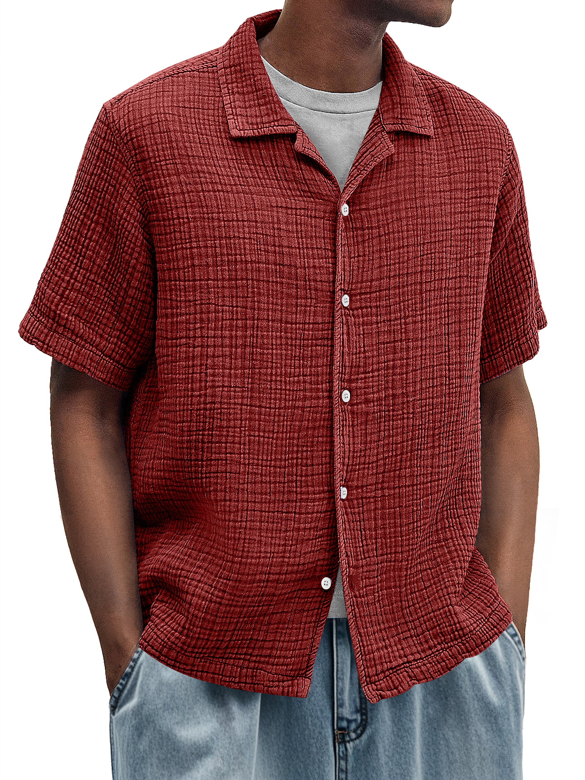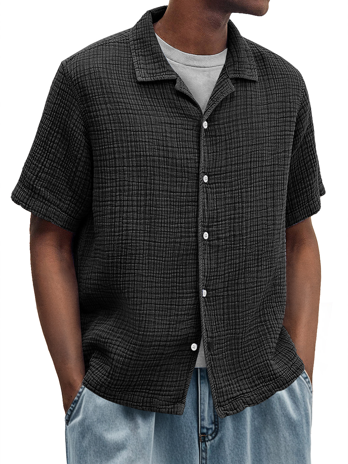 Men's Daily Casual Pleated Texture Solid Color Short-sleeved Shirt