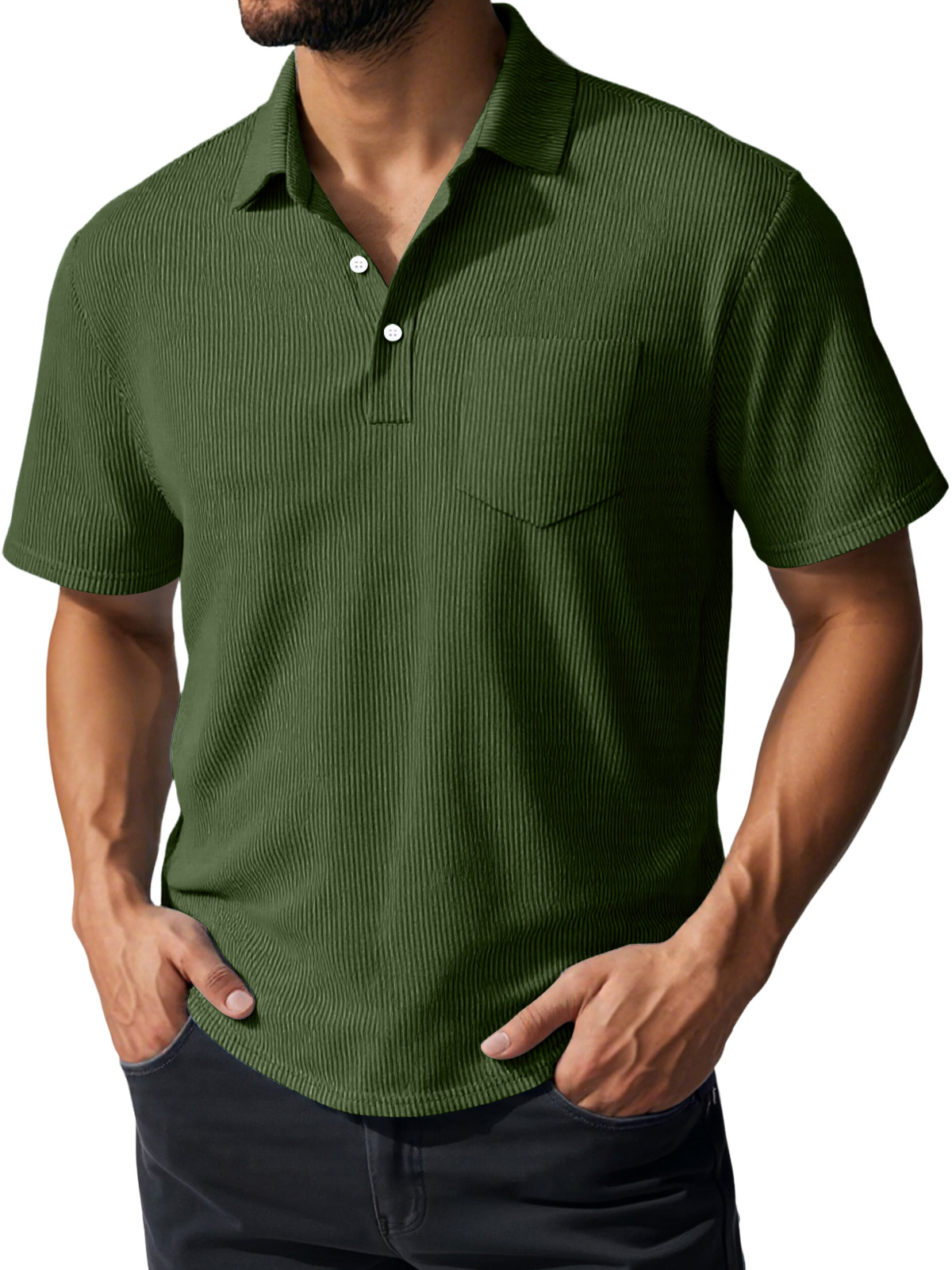 Men's Daily Casual Ribbed Lapel Button Pocket Short-sleeved Polo Shirt