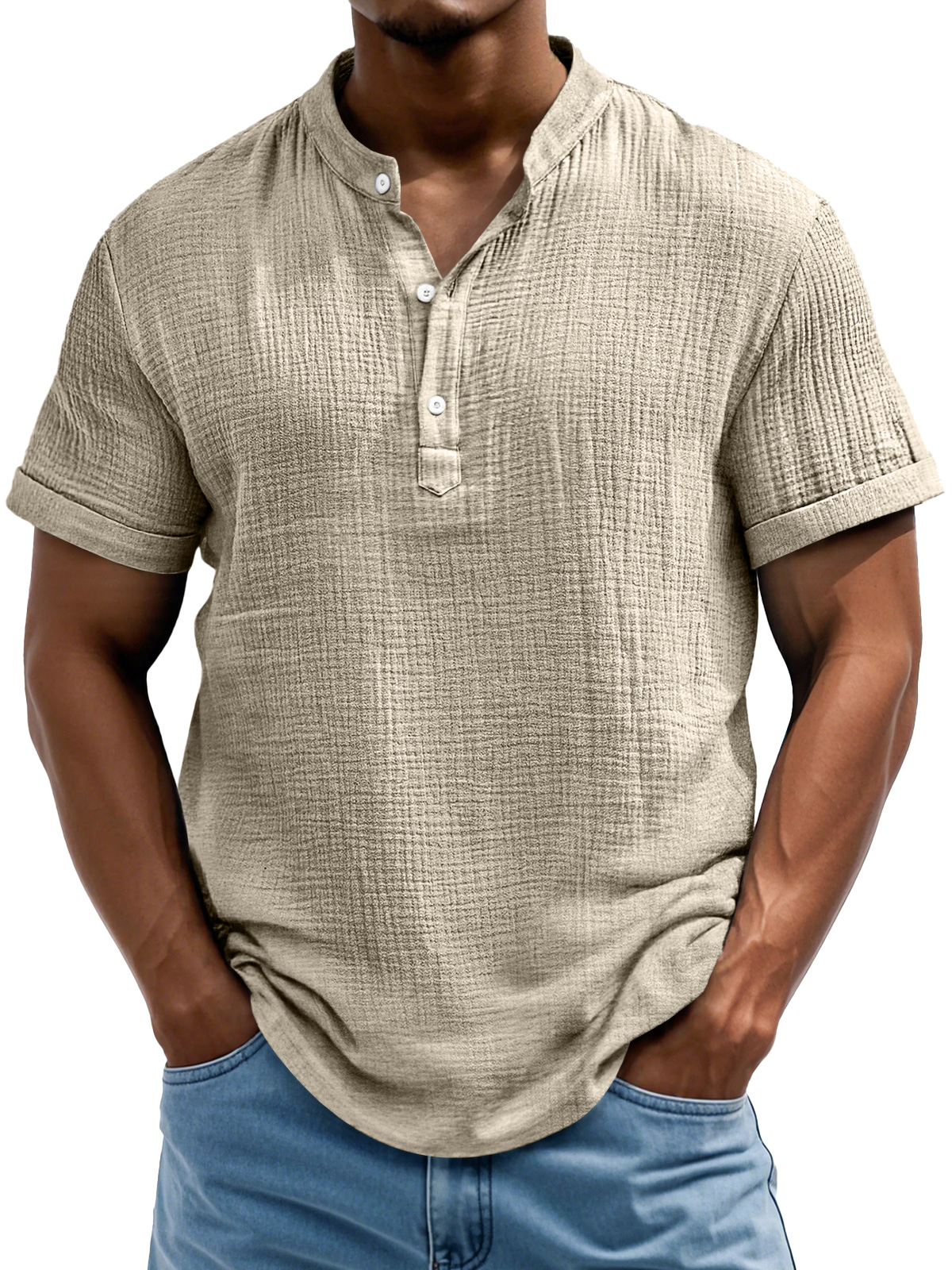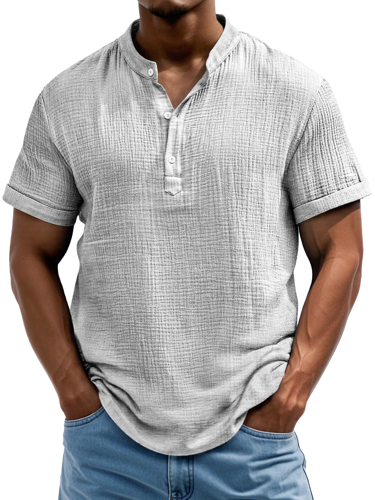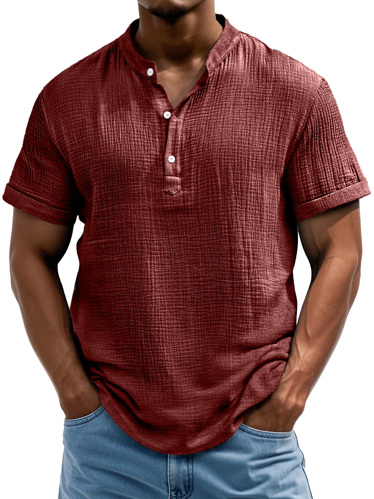 Men's Daily Casual Textured Half-Placket Henley Short Sleeve Shirt