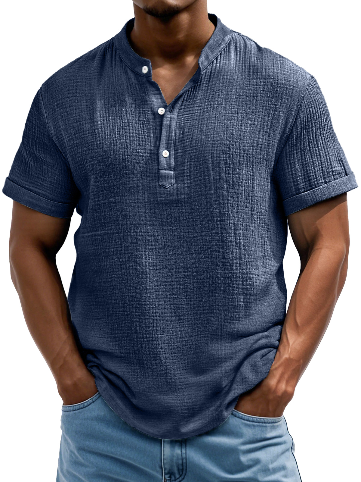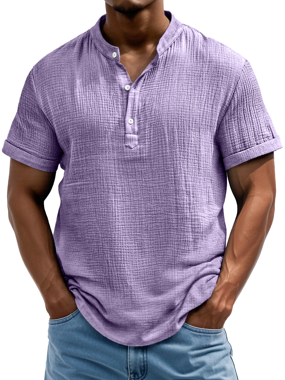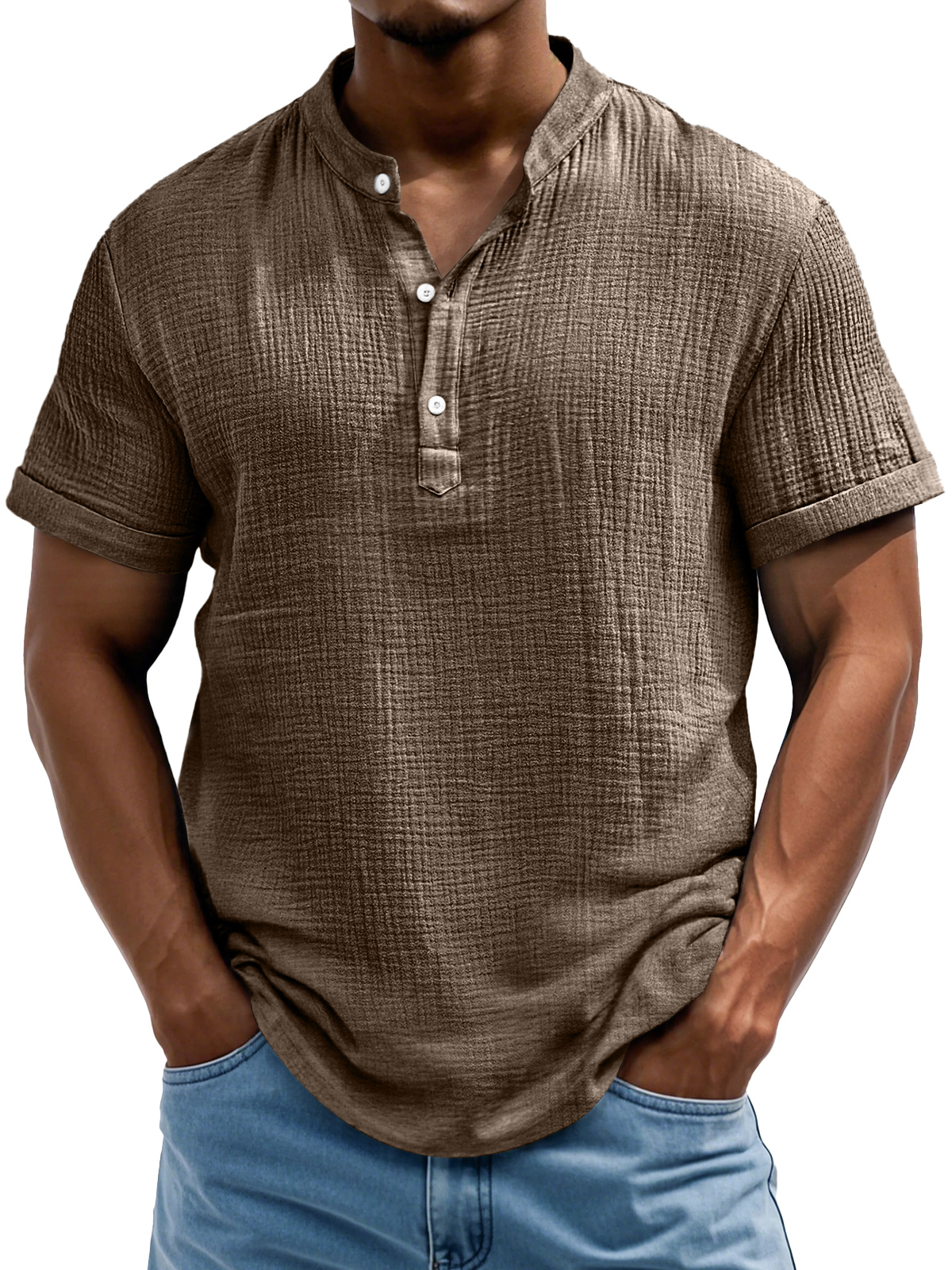 Men's Daily Casual Textured Half-Placket Henley Short Sleeve Shirt