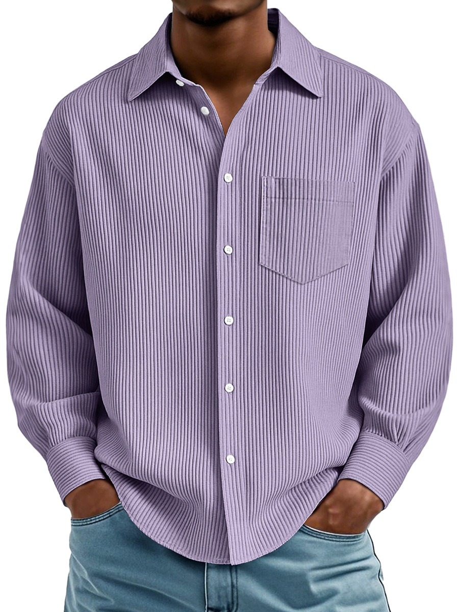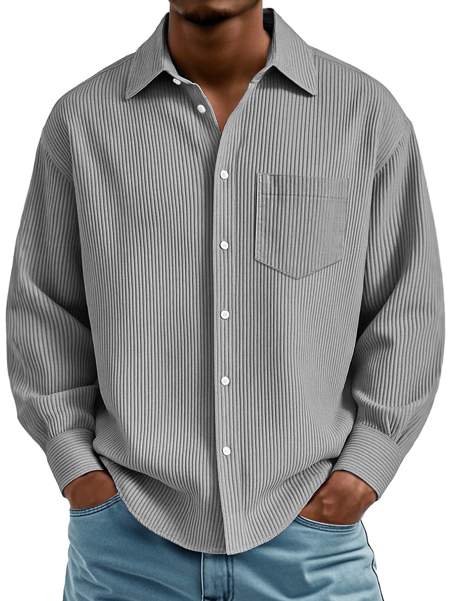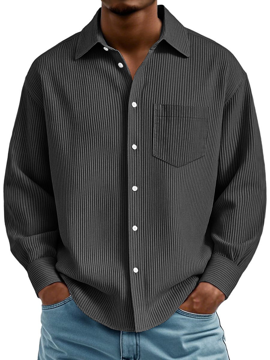 Men's Daily Ribbed Texture Casual Pocket Comfortable Long-sleeved Shirt