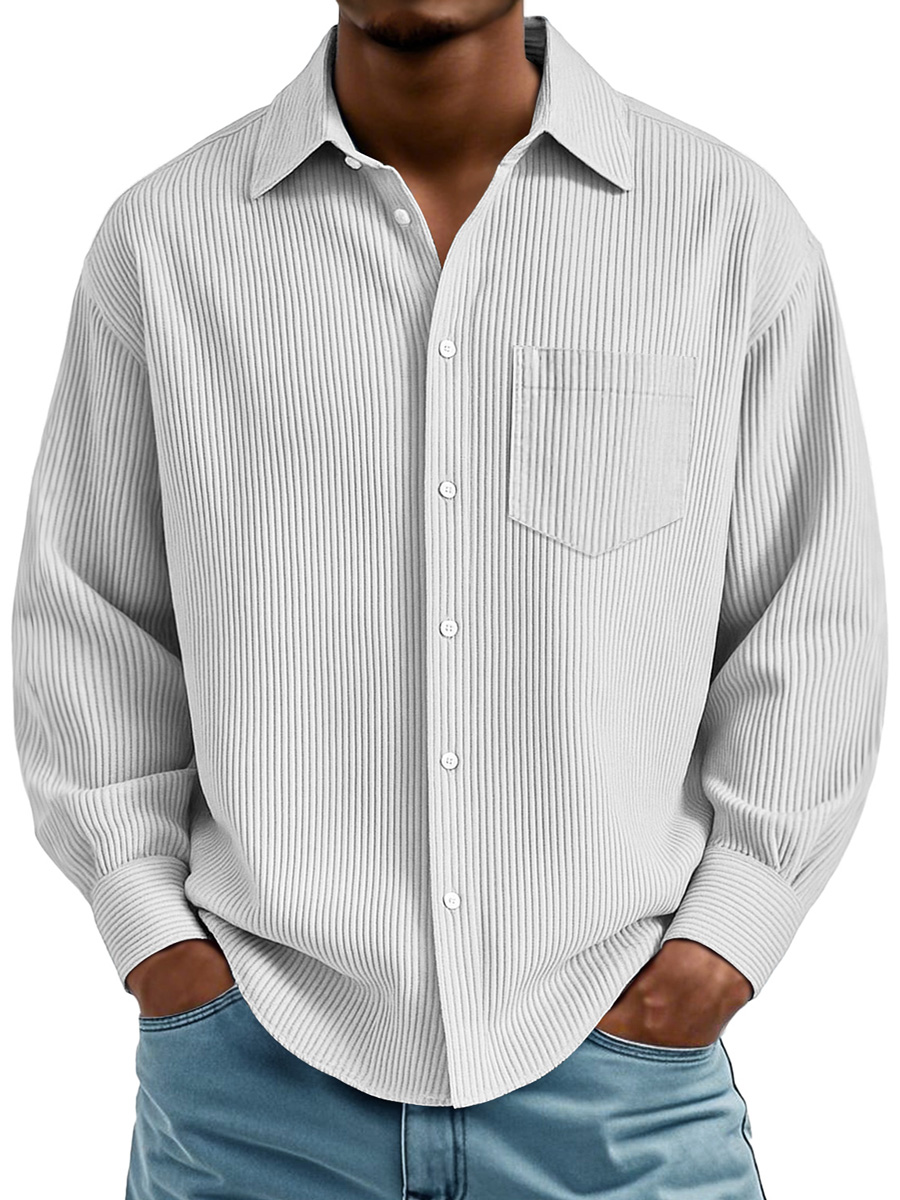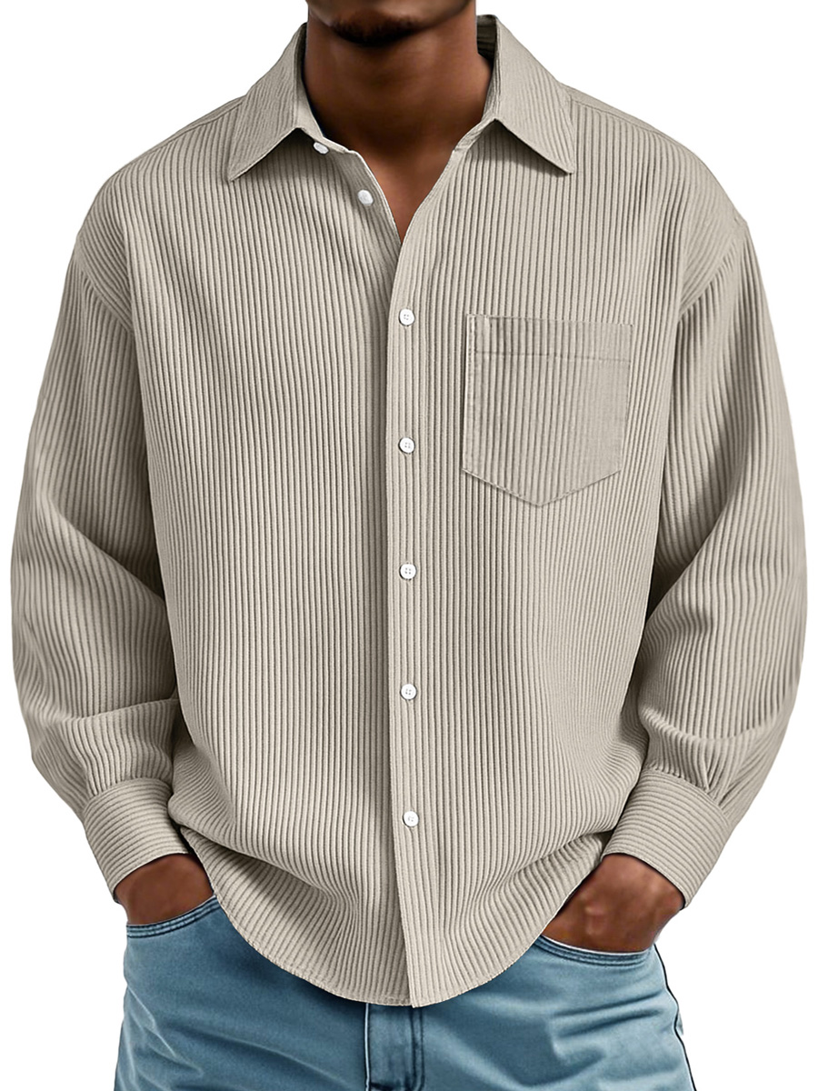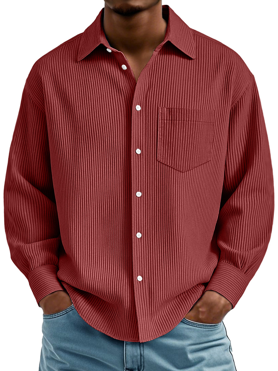 Men's Daily Ribbed Texture Casual Pocket Comfortable Long-sleeved Shirt
