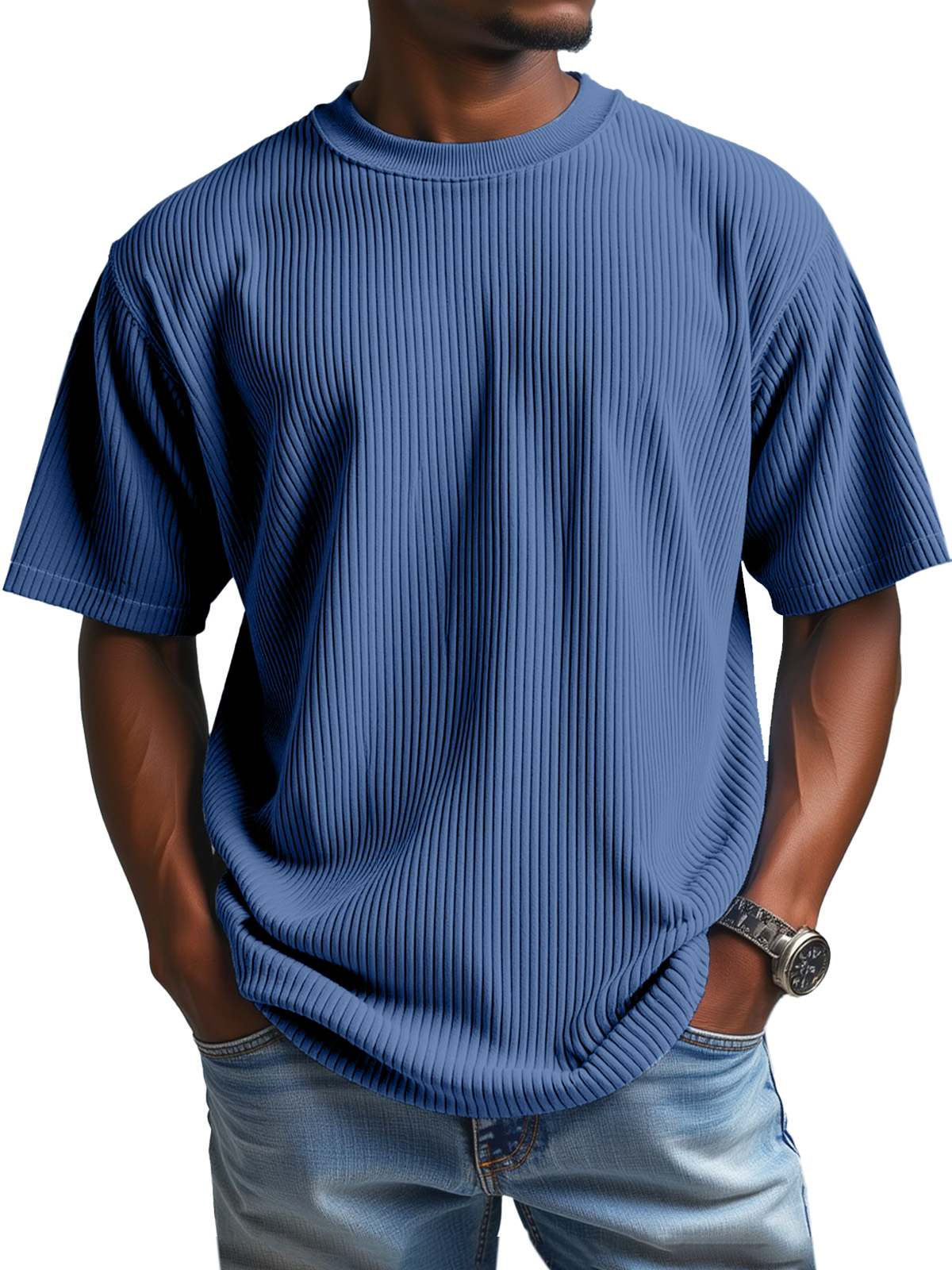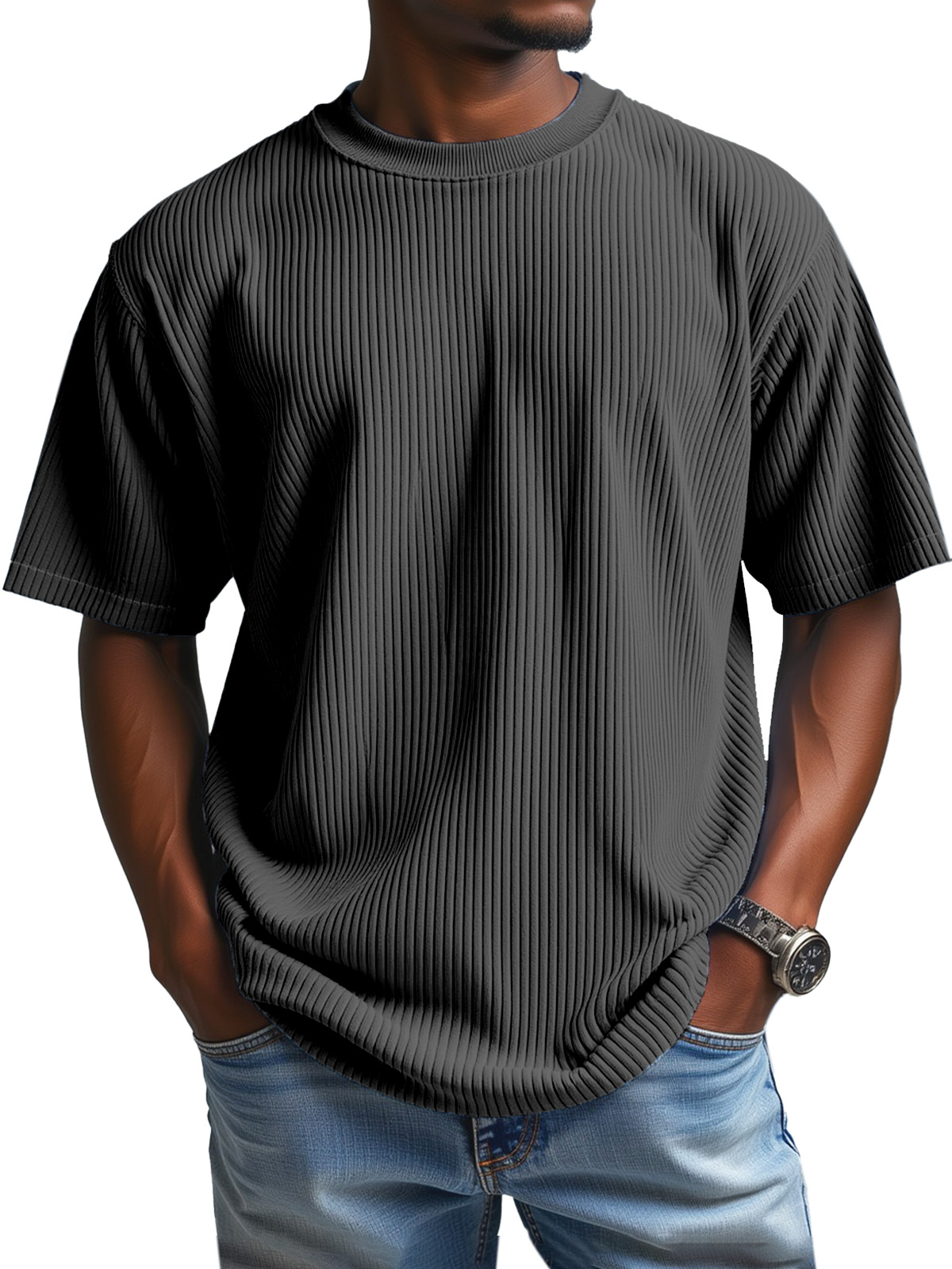 Men's Daily Solid Color Vertical Pit Round Neck Short-sleeved T-shirt