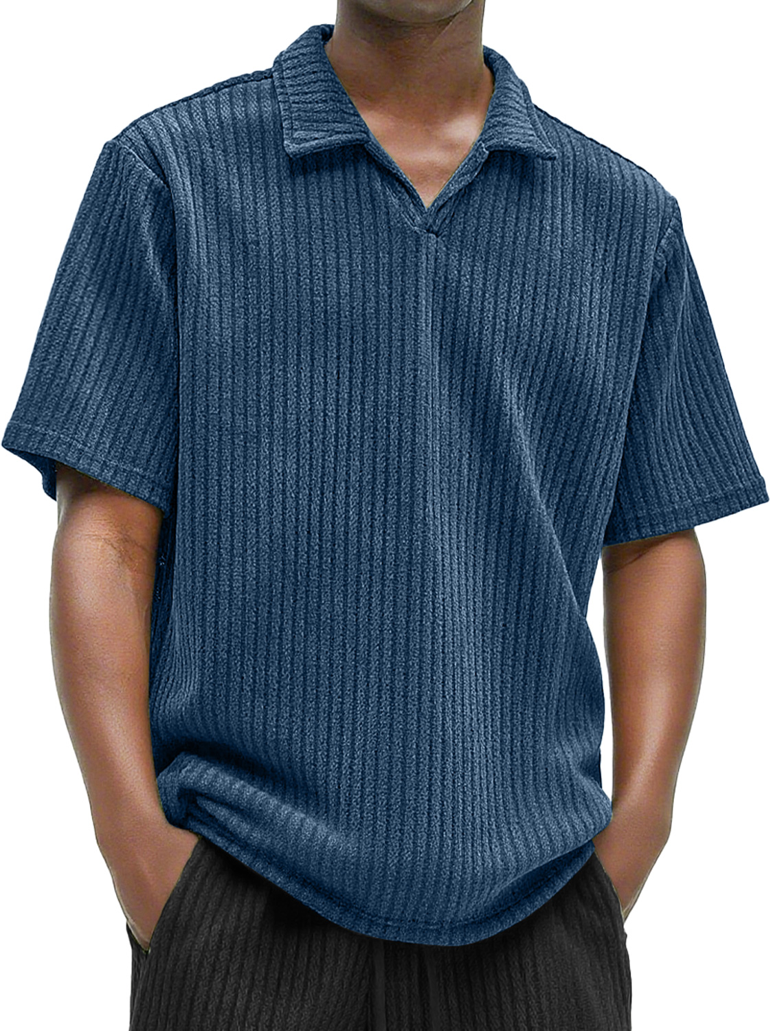 Men's Daily Texture Casual V-neck Solid Color Comfortable Short-sleeved Polo Shirt