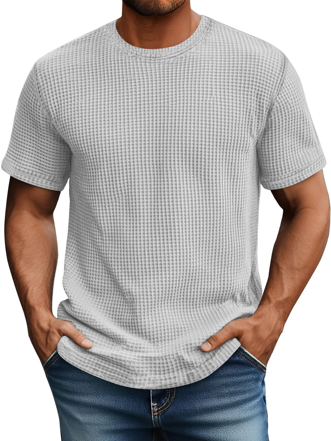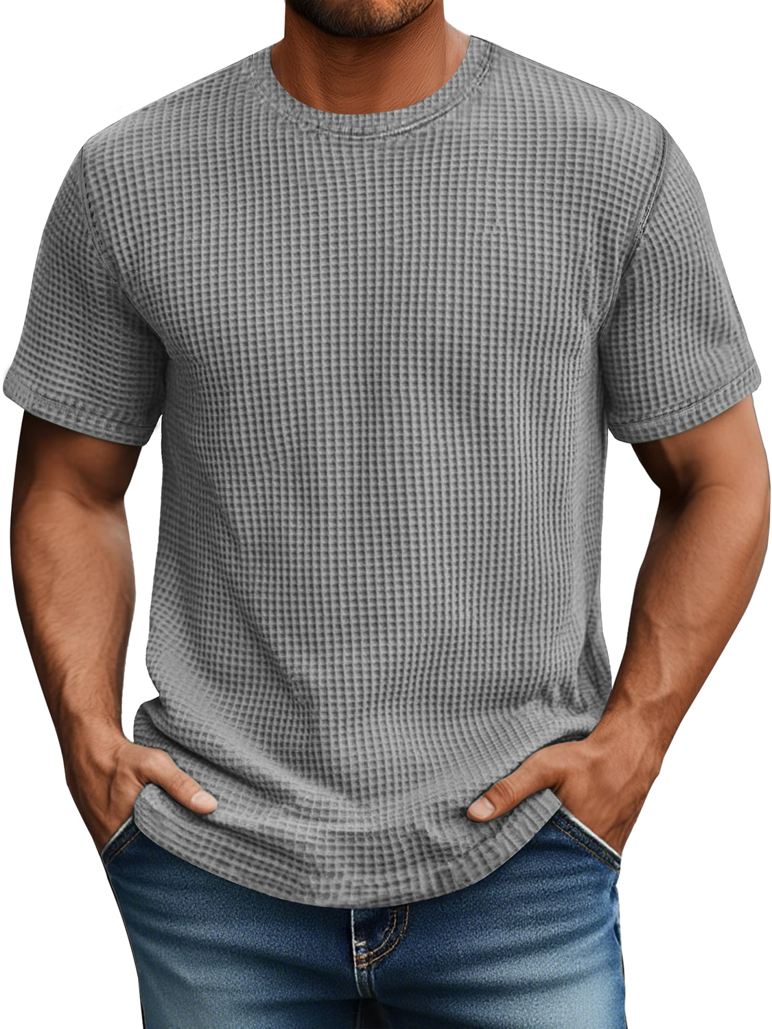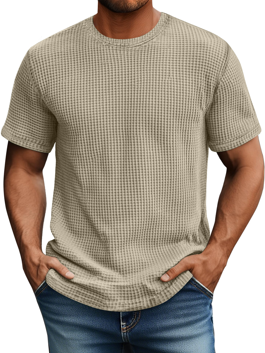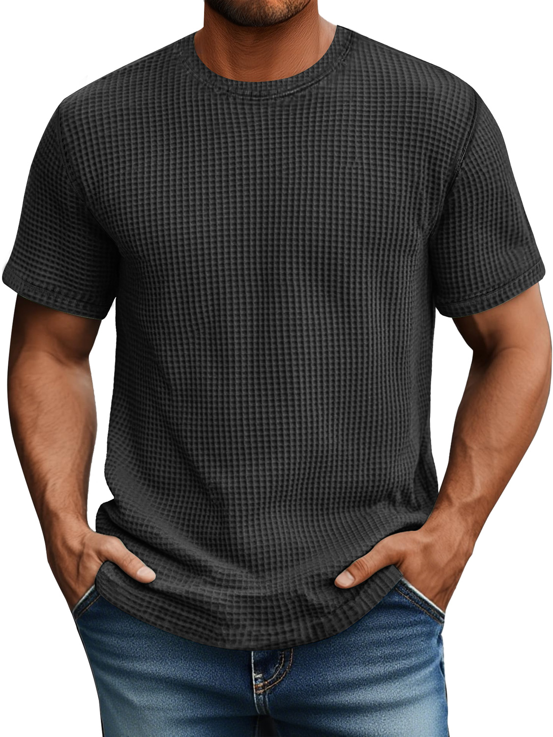 Men's Daily Waffle Casual Round Neck Comfortable Short Sleeve T-Shirt