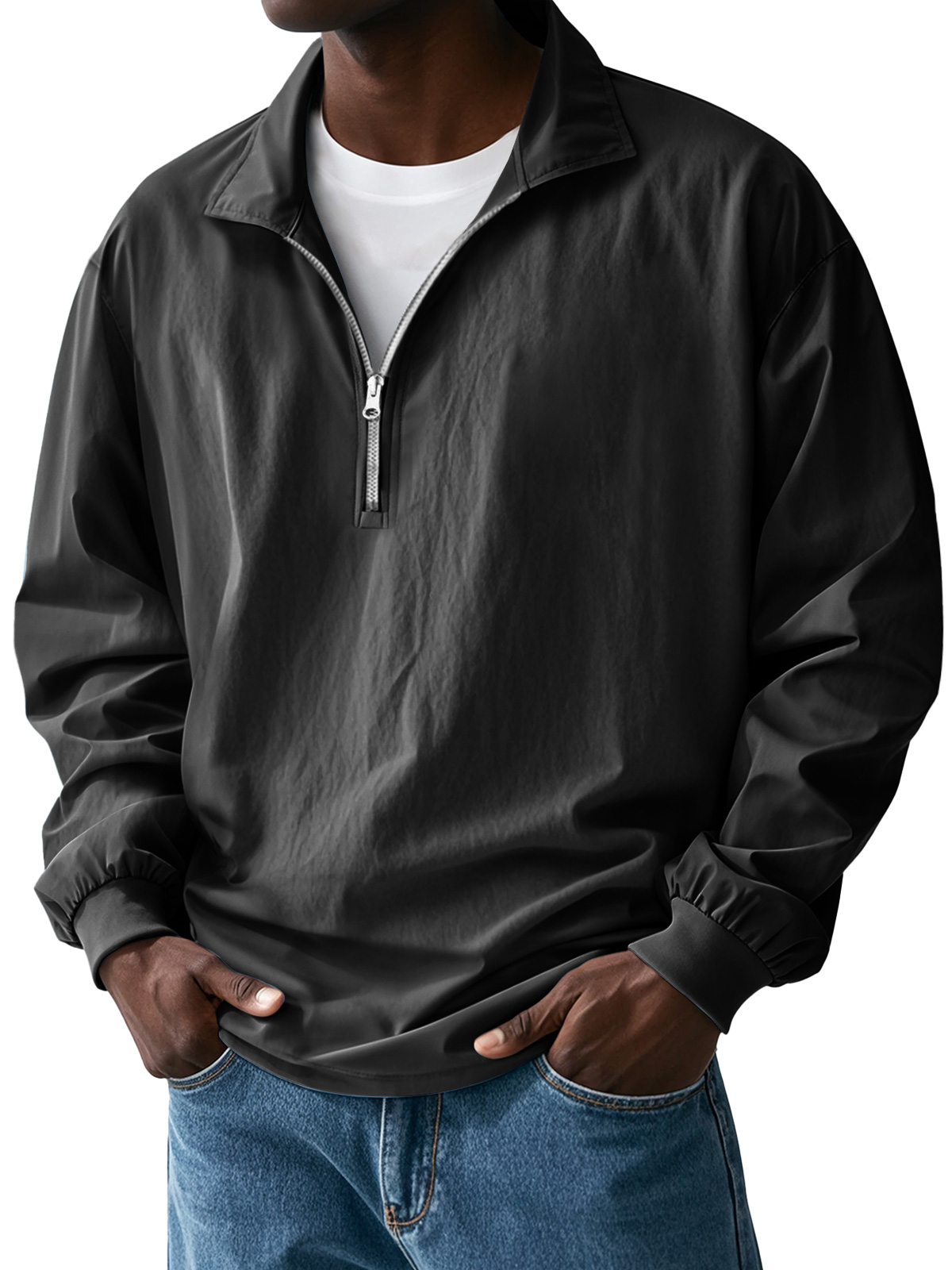 Men's Everyday Lapel Zipper Casual Long Sleeve T-Shirt
