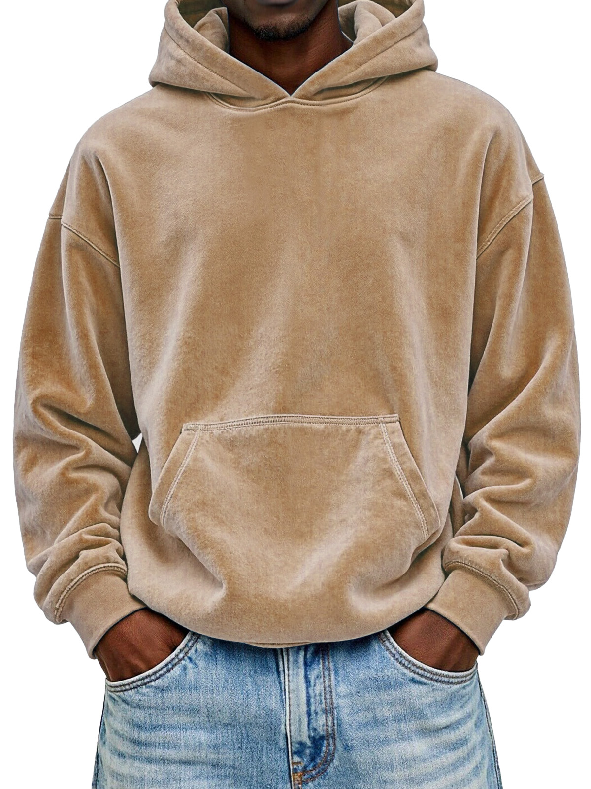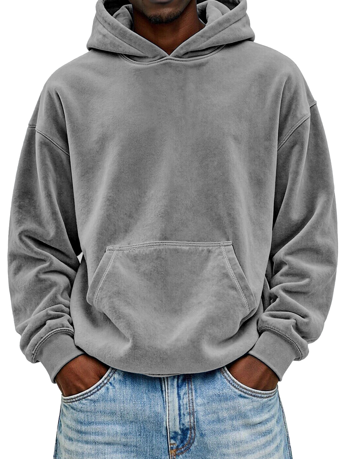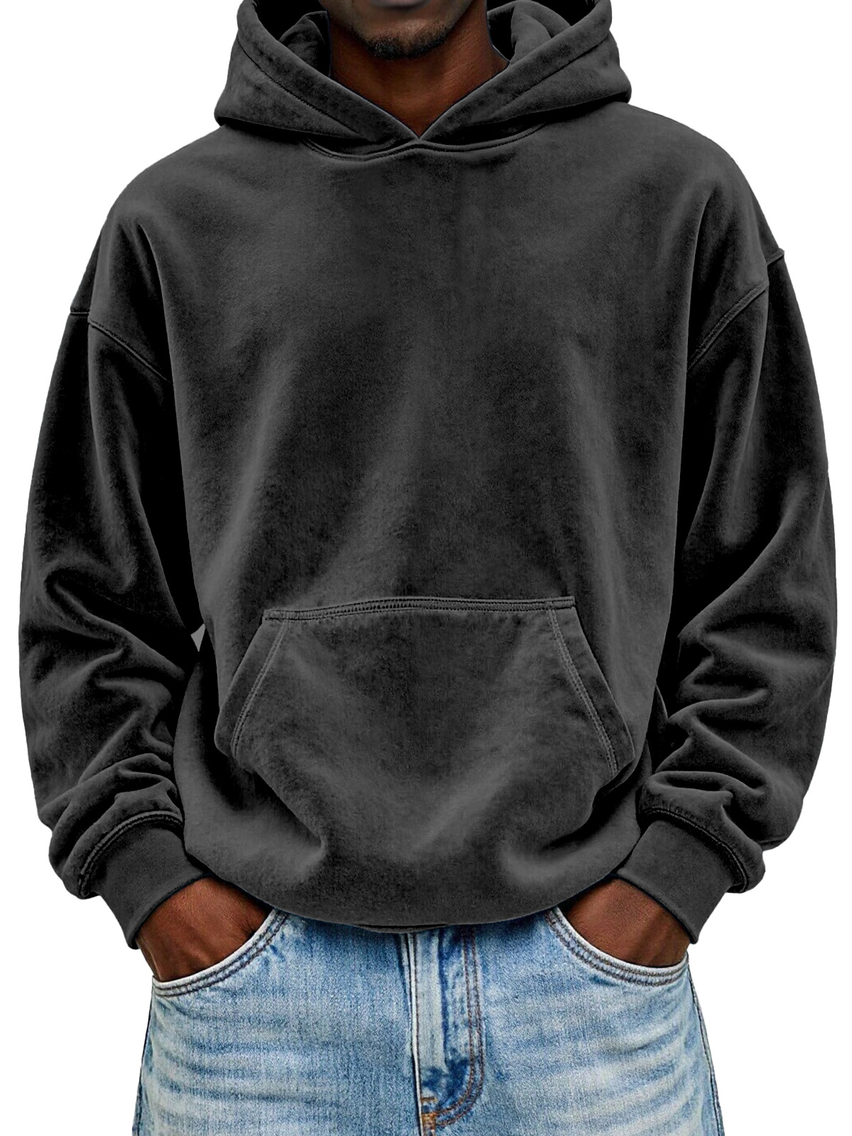 Men's Everyday Solid Color Comfortable Suede Long-sleeved Hooded Sweatshirt