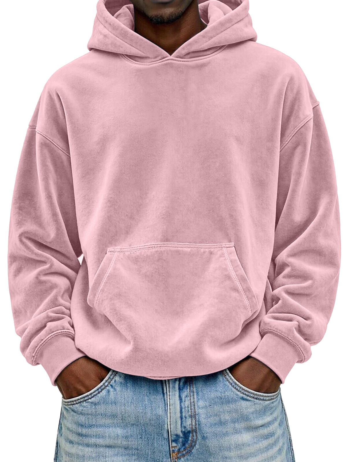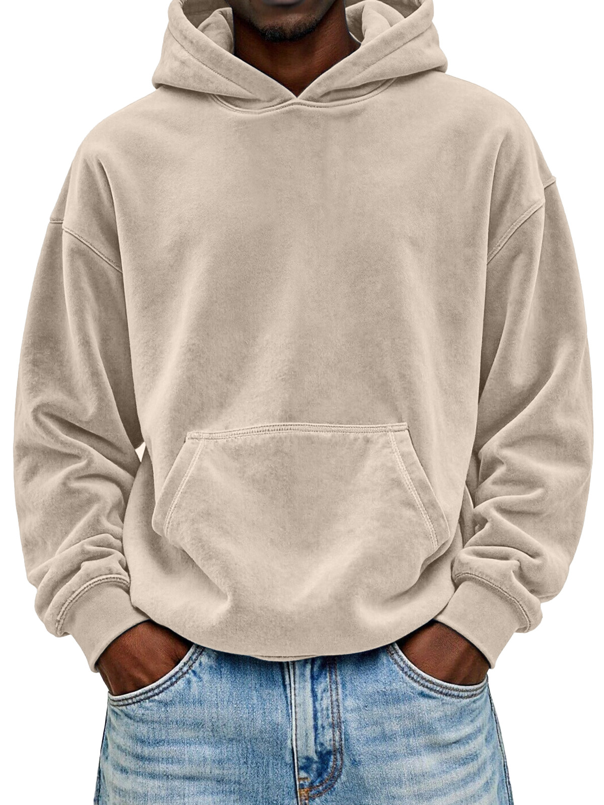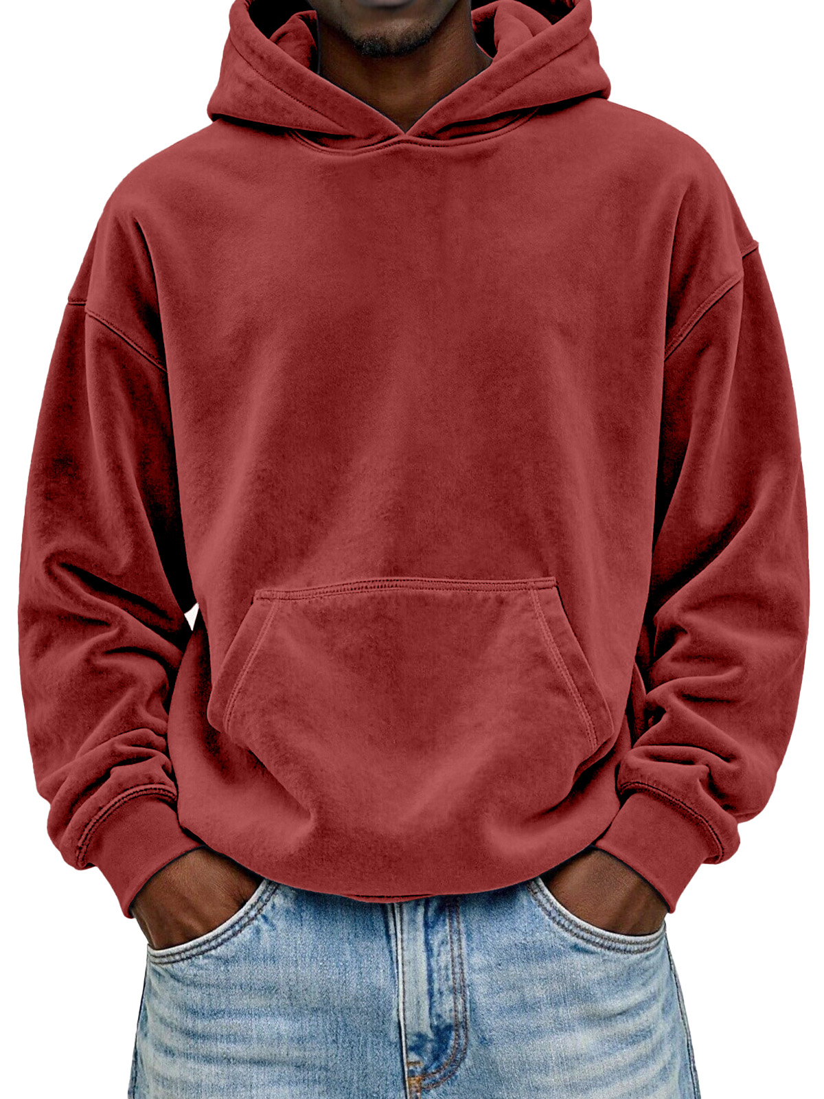 Men's Everyday Solid Color Comfortable Suede Long-sleeved Hooded Sweatshirt
