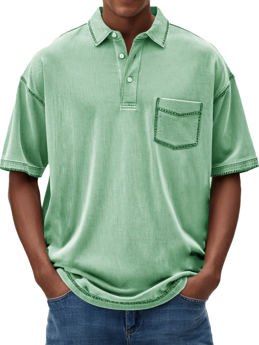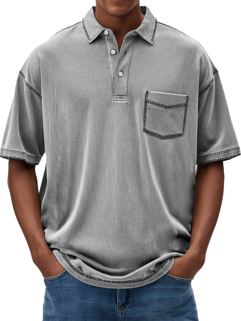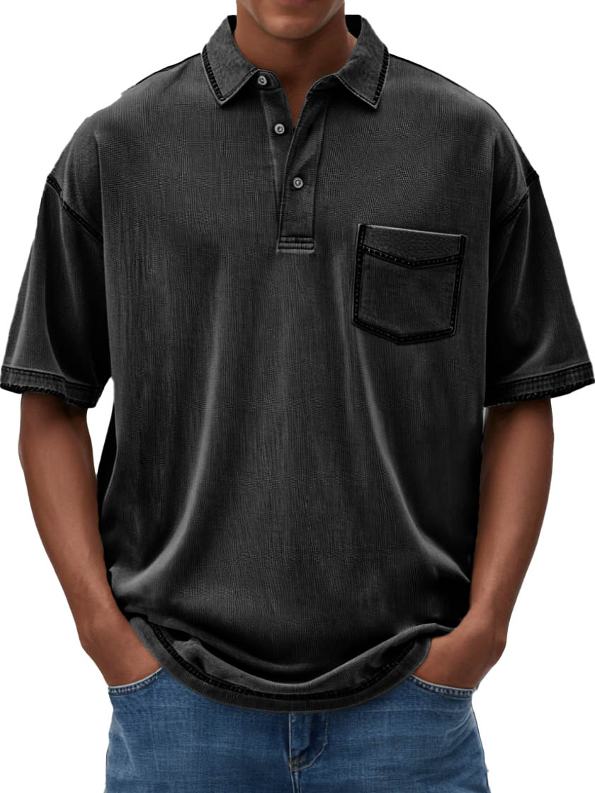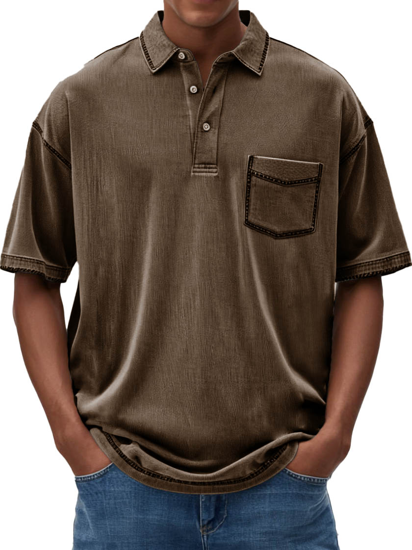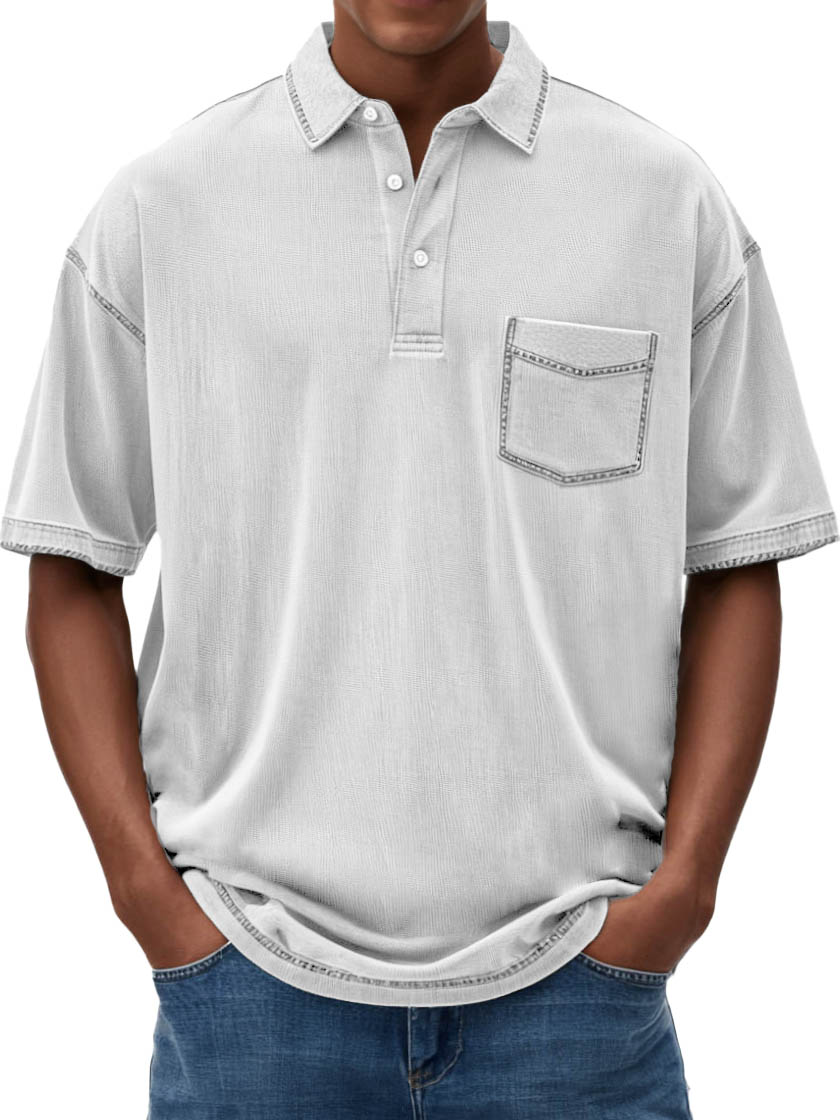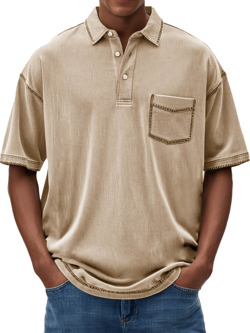 Men's Fashion Casual Hemp Fabric Lapel Short-sleeved Polo Shirt