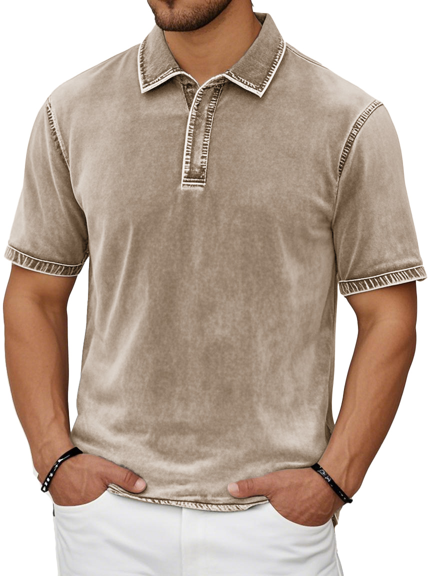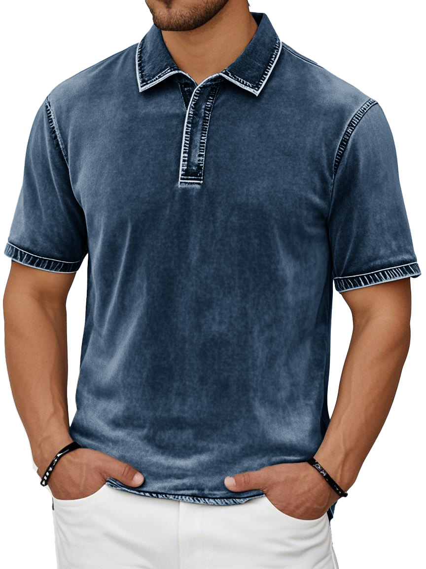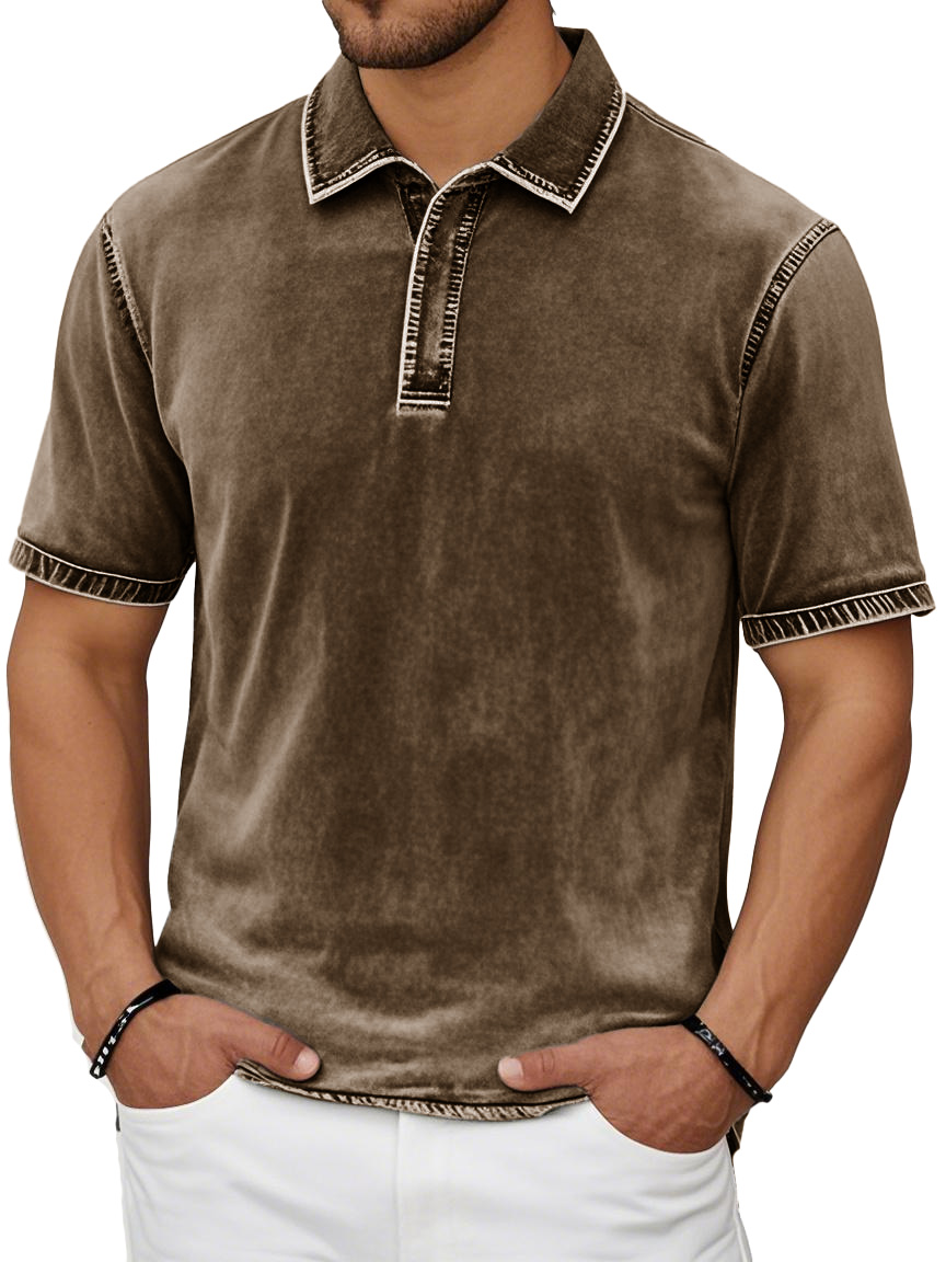 Men's Fashion Casual Retro Distressed Lapel Short-sleeved Polo Shirt