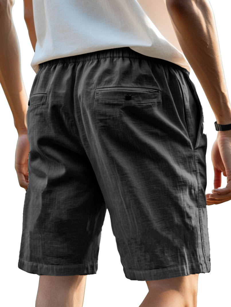 Men's Fashion Casual Retro Hemp Fabric Pocket Shorts