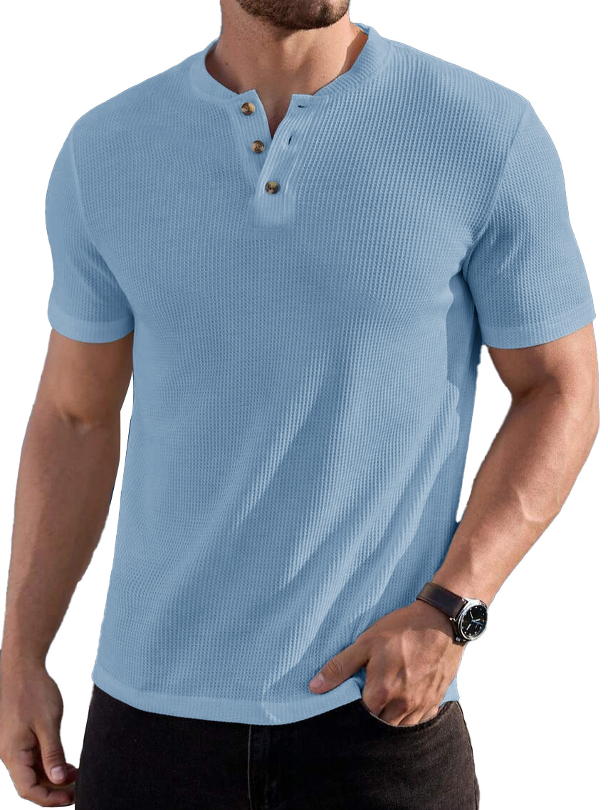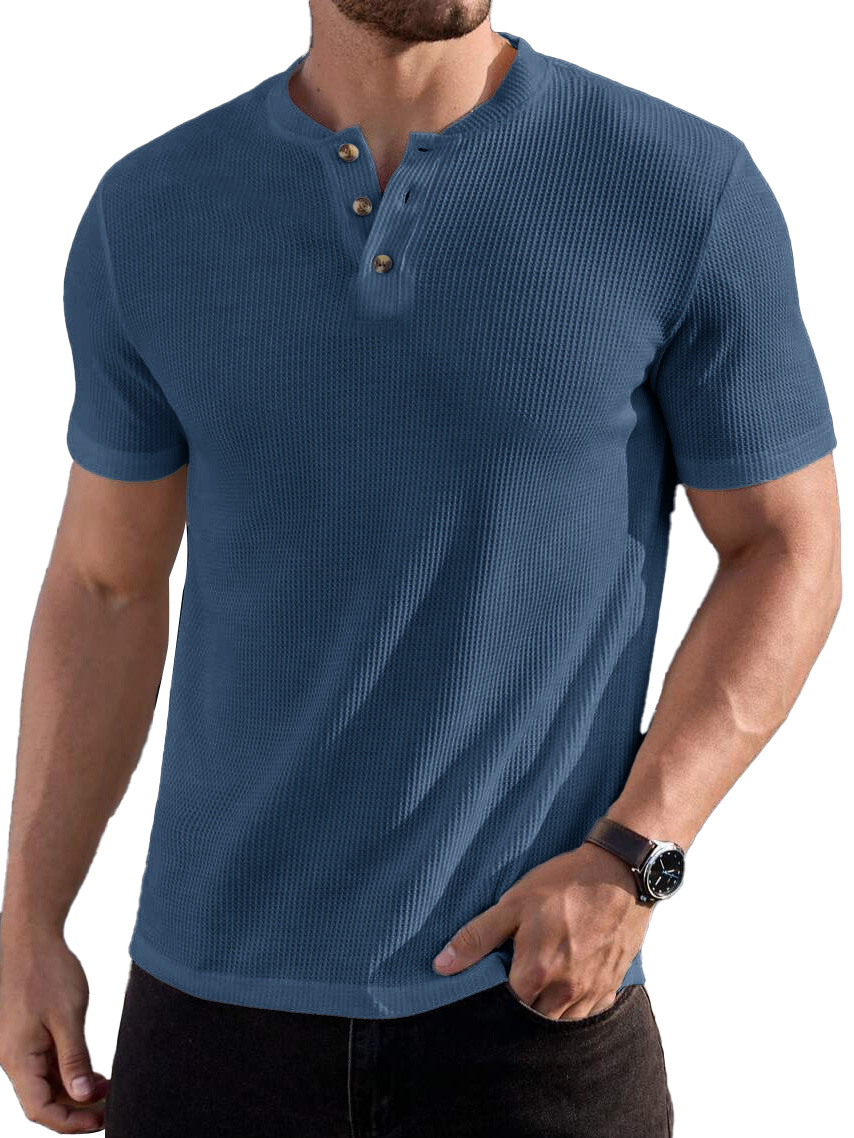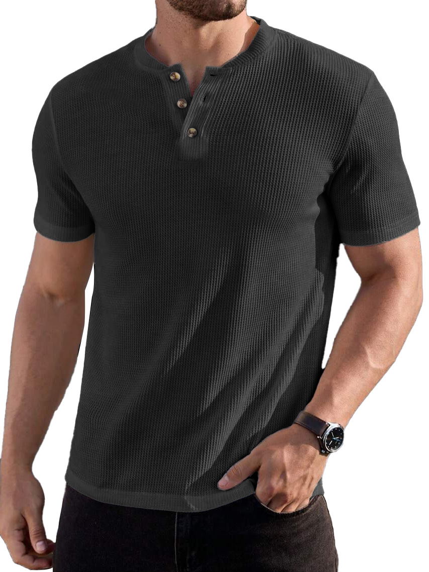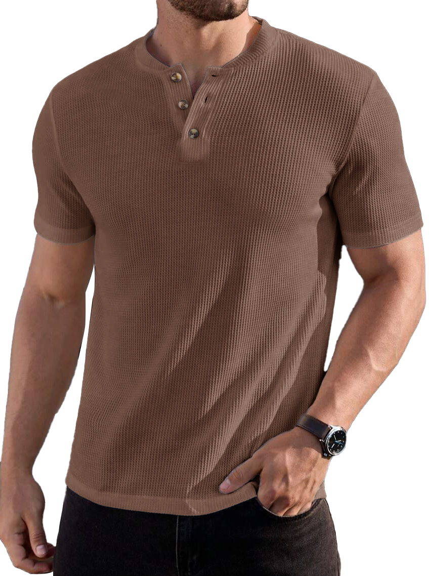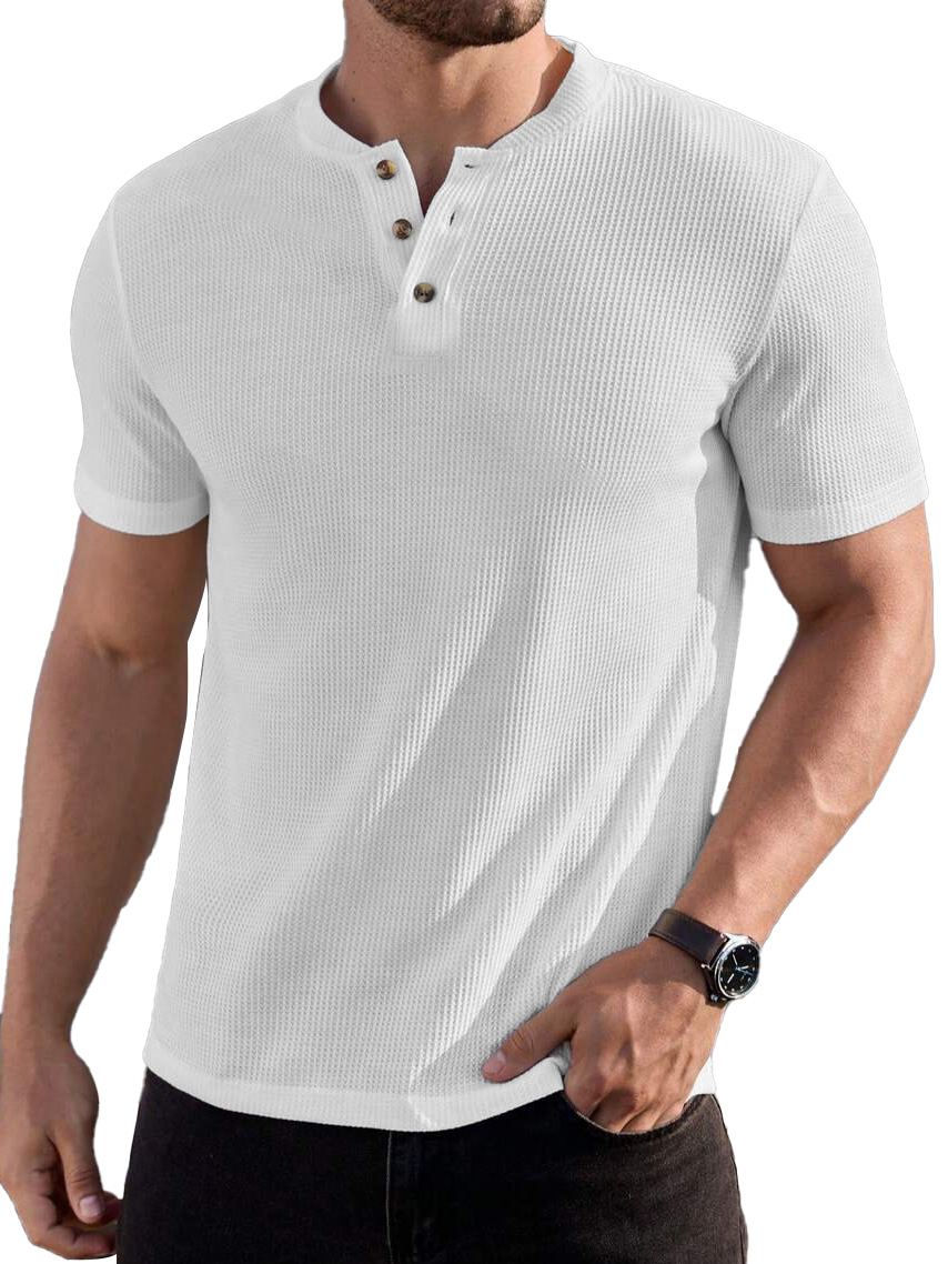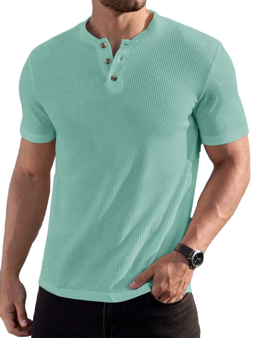Men's Fashion Casual Waffle Fabric Short Sleeve Henley Shirt