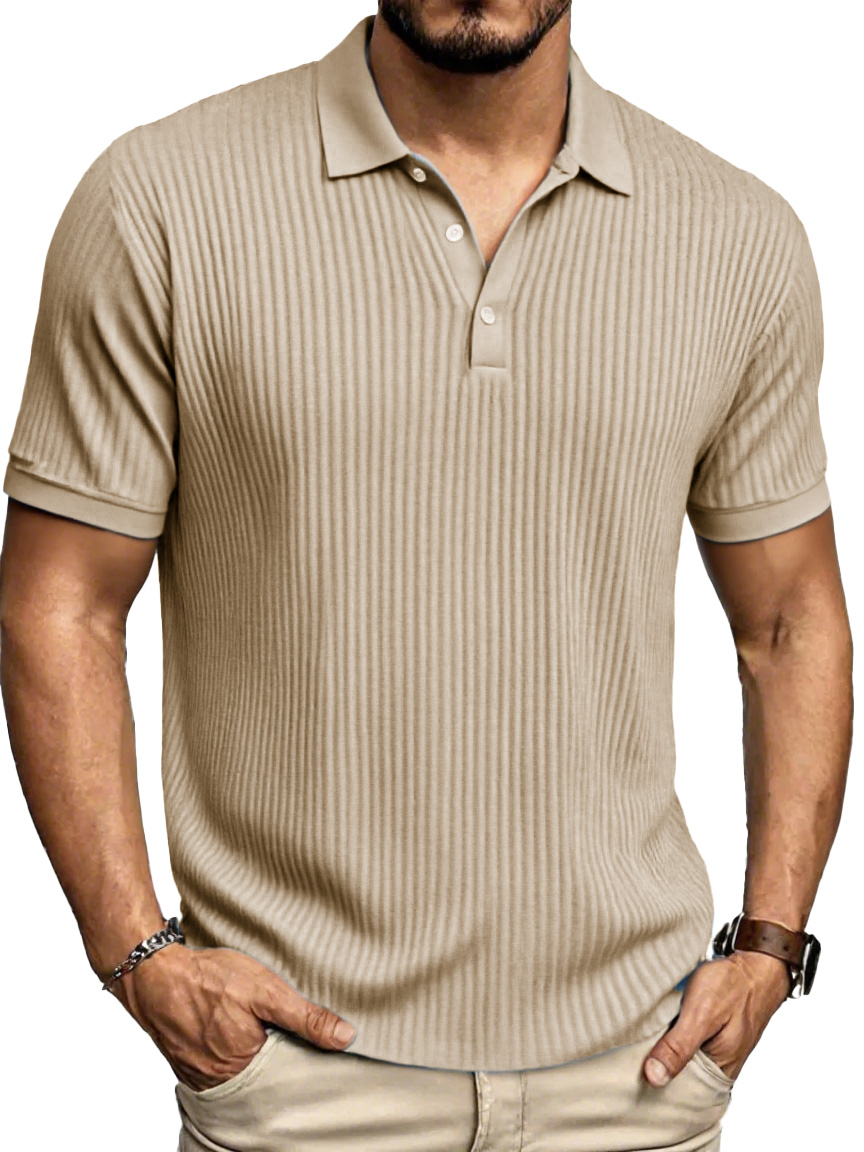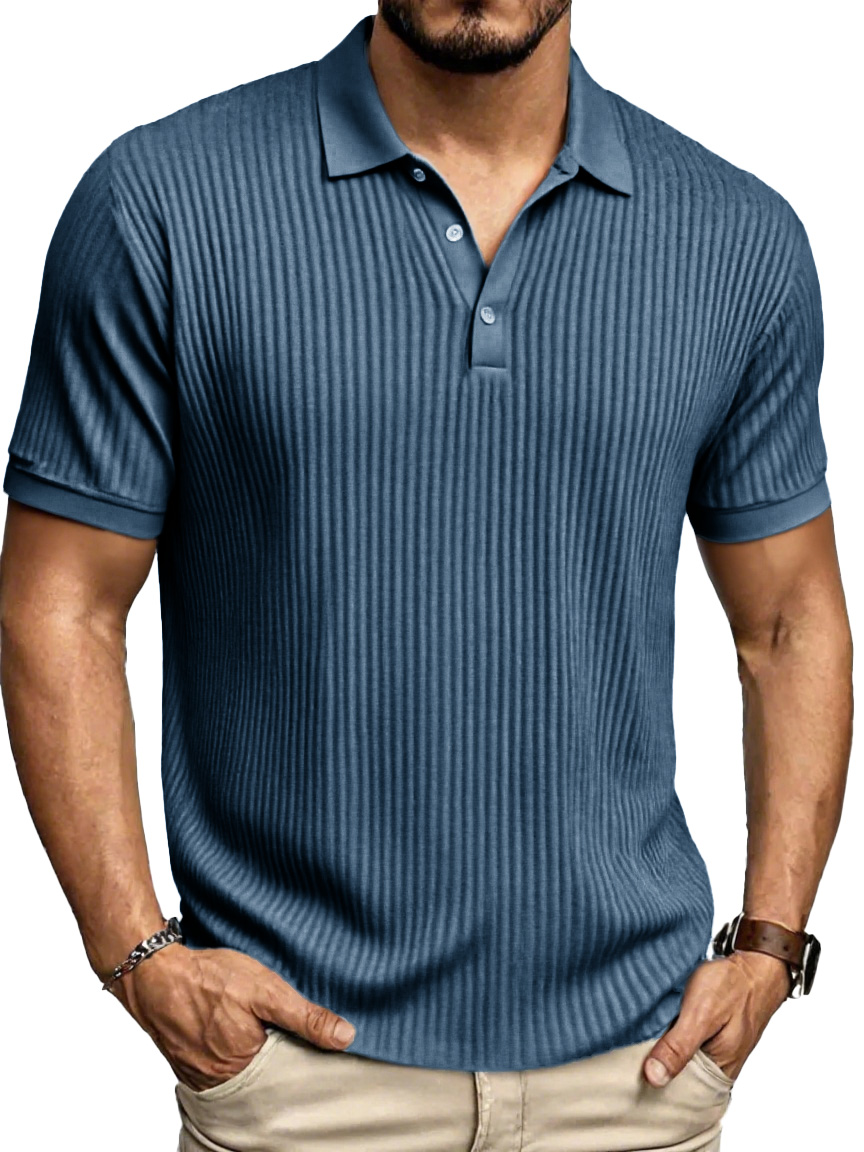 Men's Fashion Daily Striped Fabric Pocket Lapel Polo Shirt