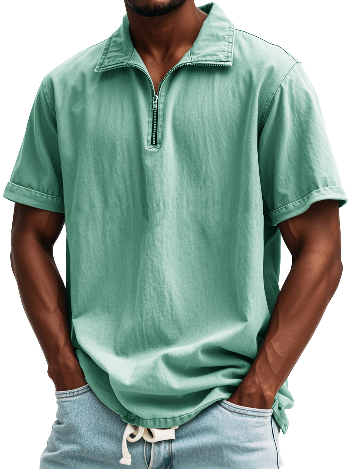 Men's Fashion Retro Zipper Stand Collar Short Sleeve Shirt