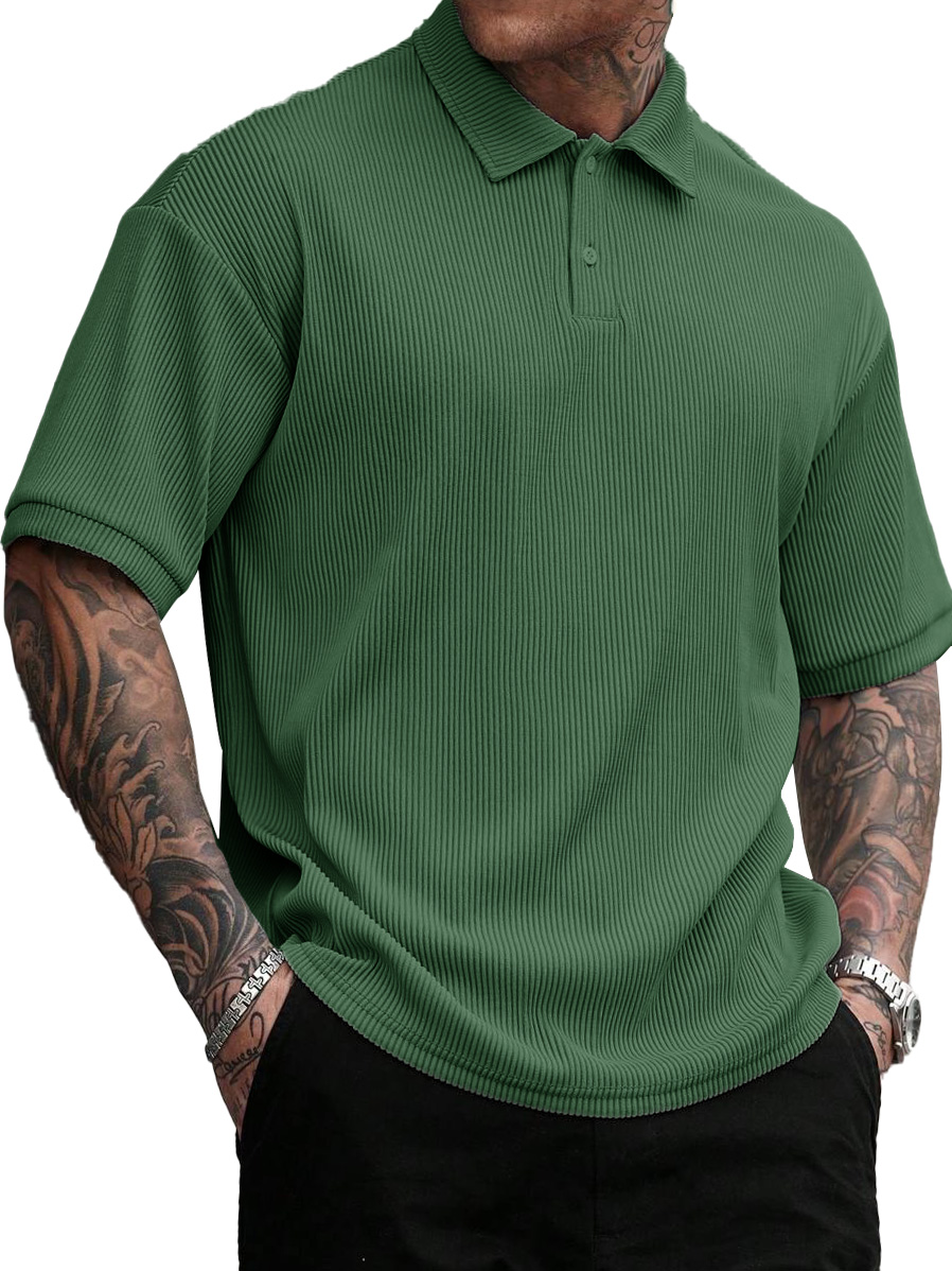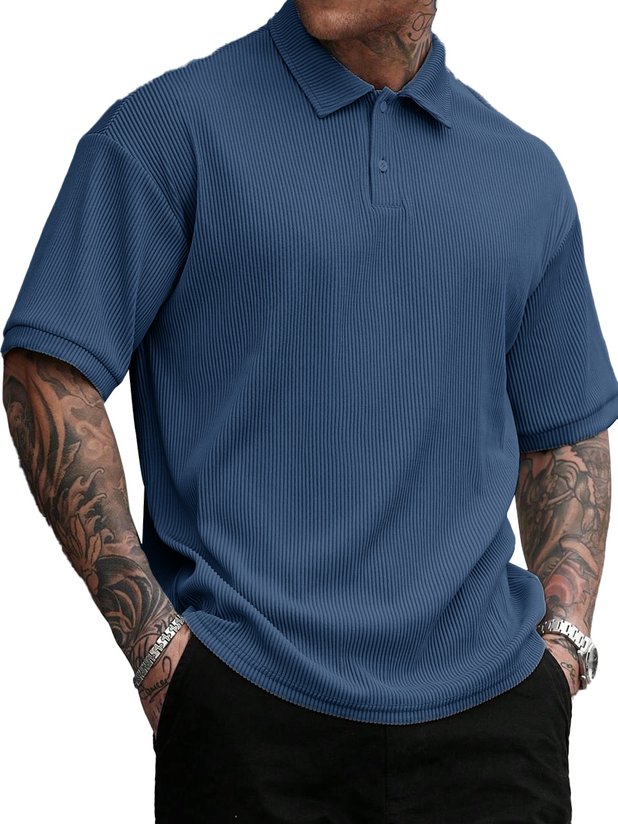 Men's Fashion Street Striped Lapel Short-sleeved Polo Shirt