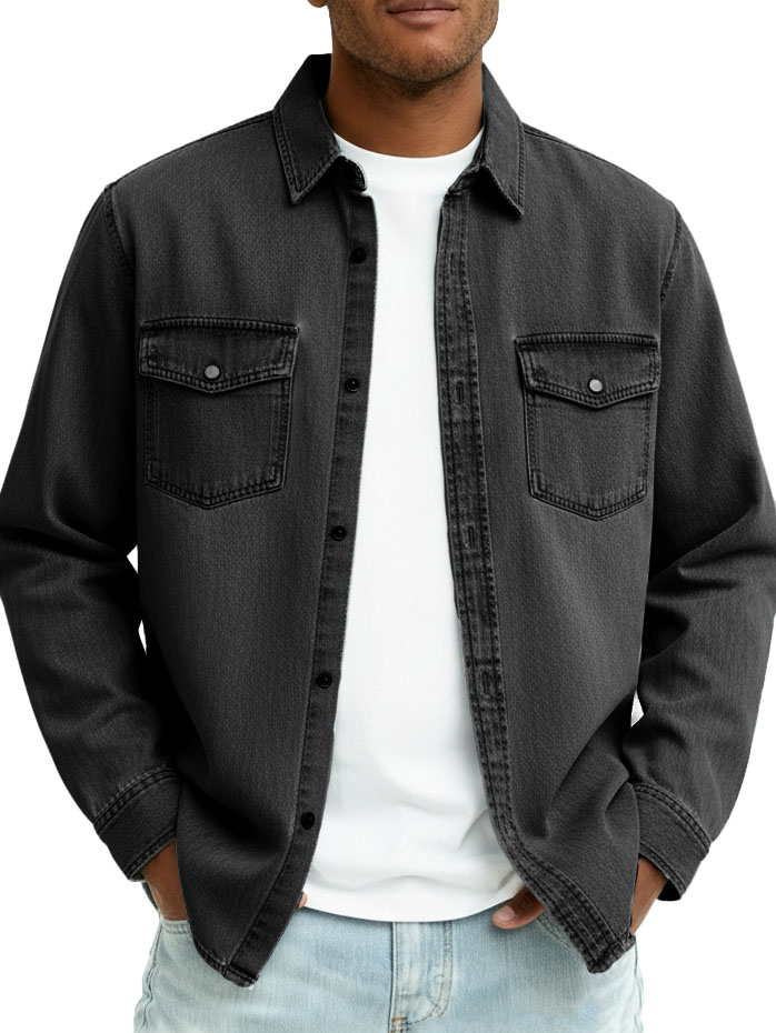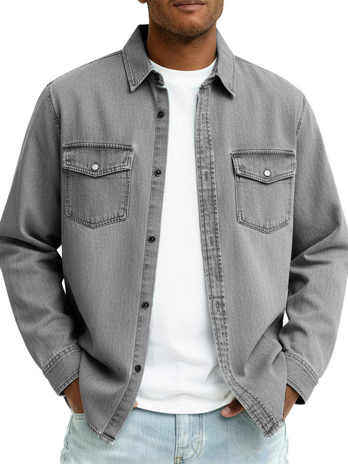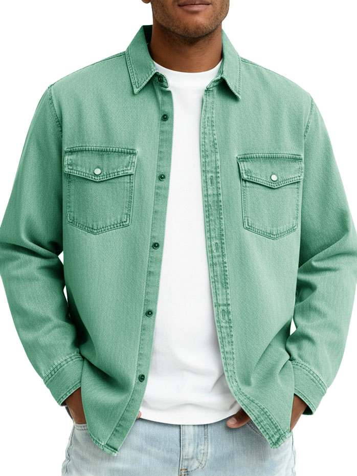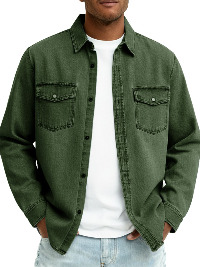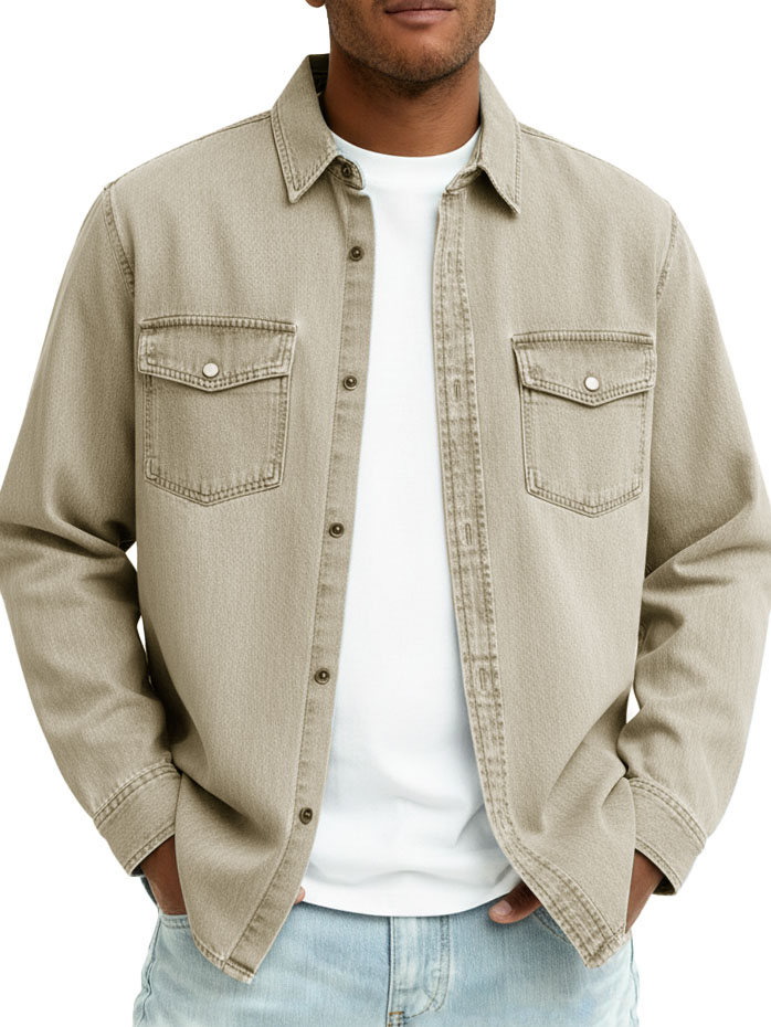 Men's Fashionable Casual Retro Double Pocket Long-Sleeved Shirt